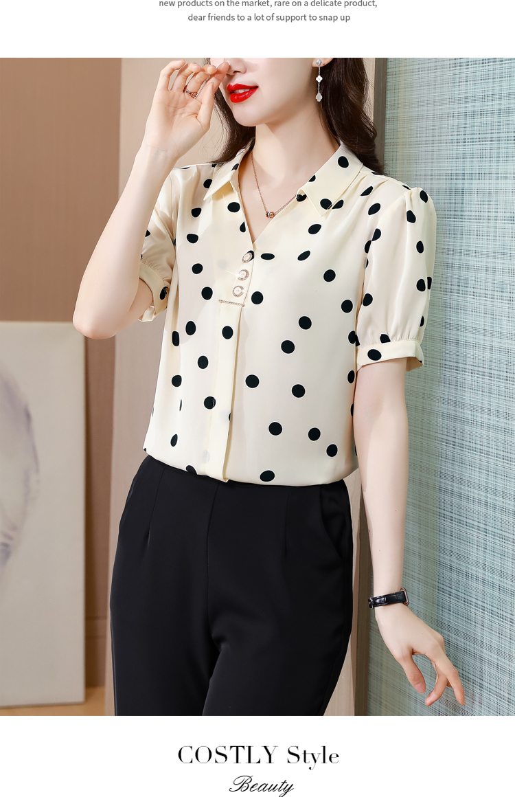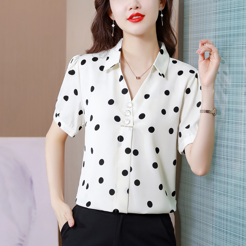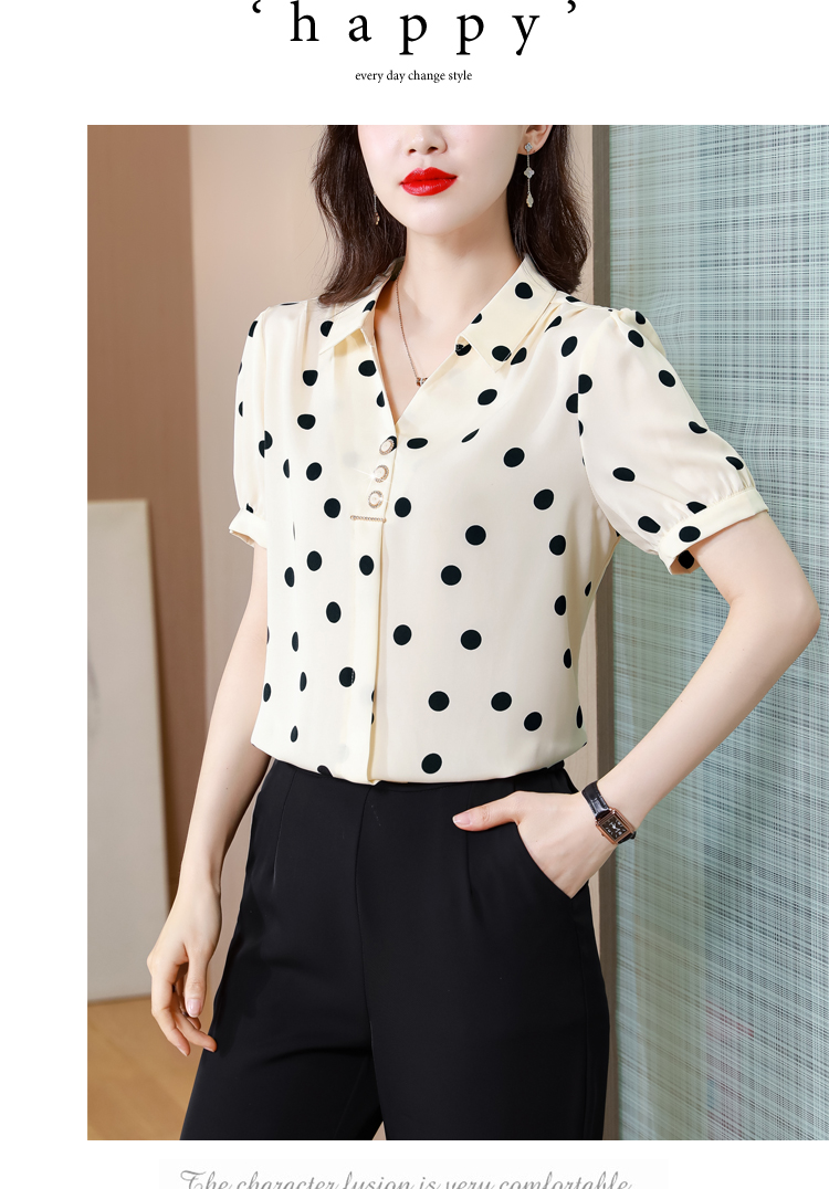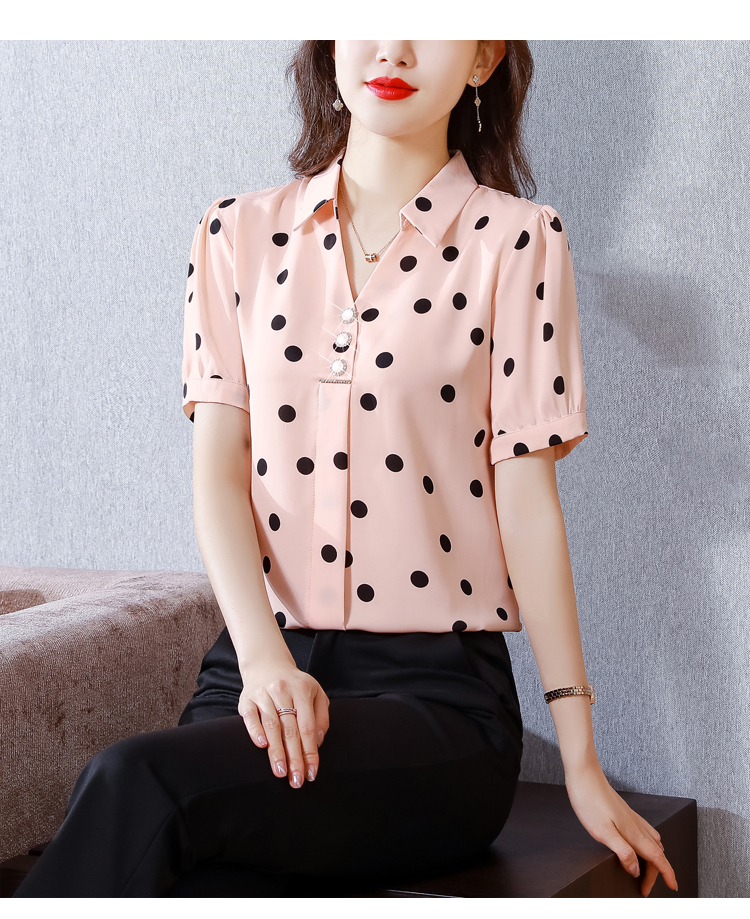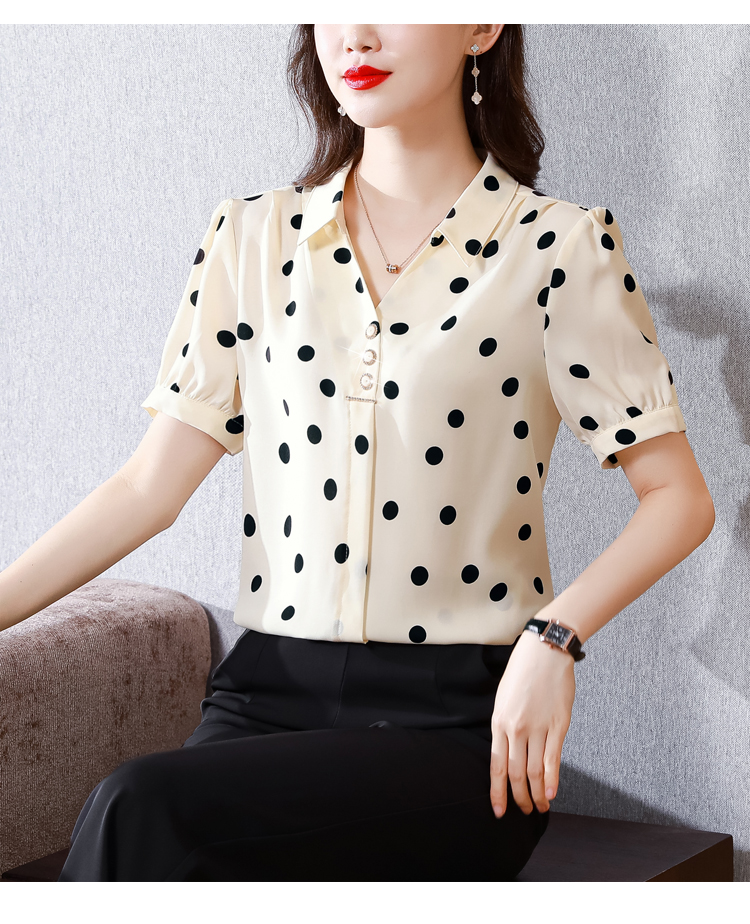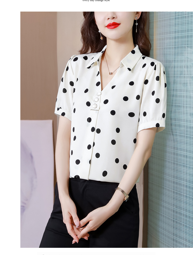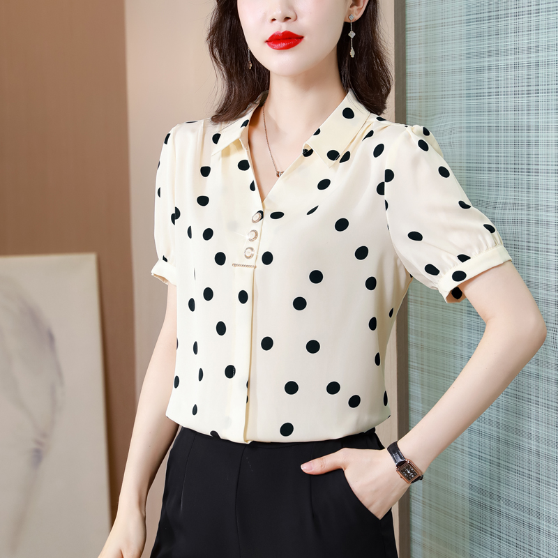 RY3682# 实拍2026春夏季新款衬衫短袖波点印花百搭气质上衣女