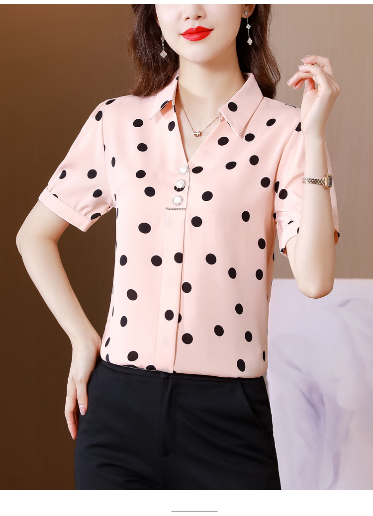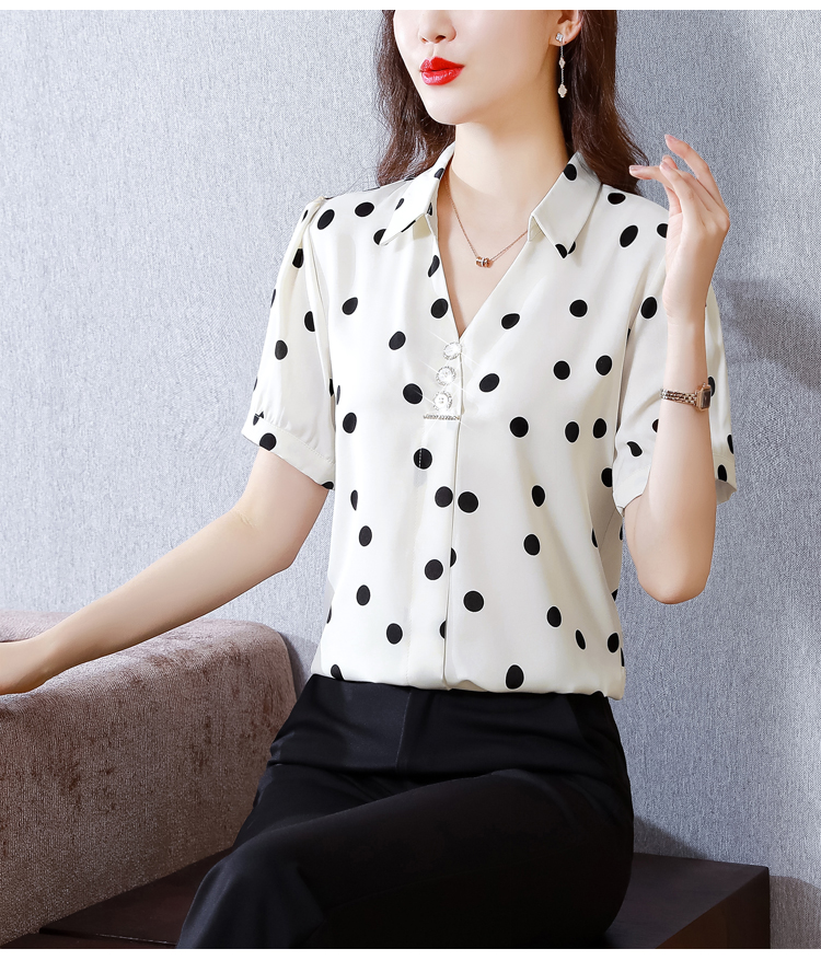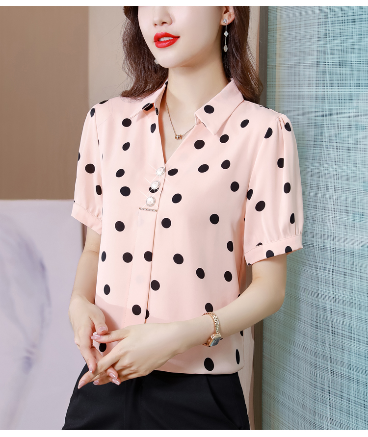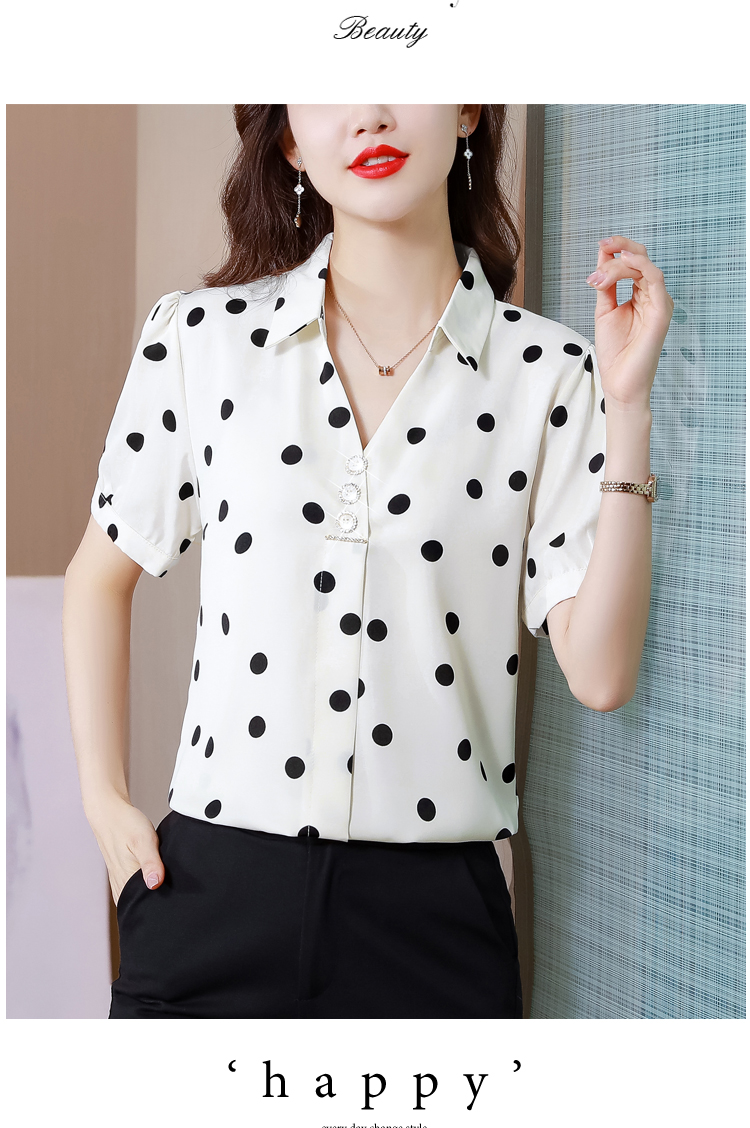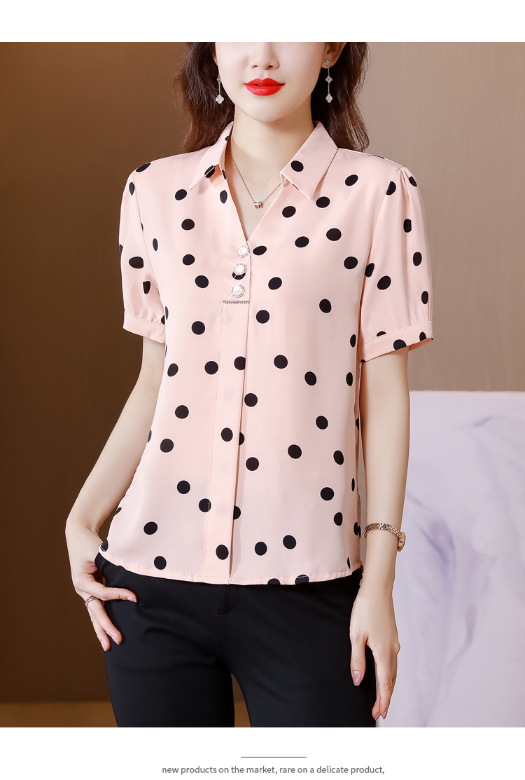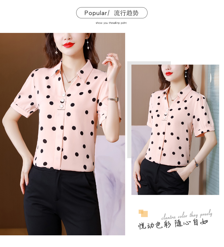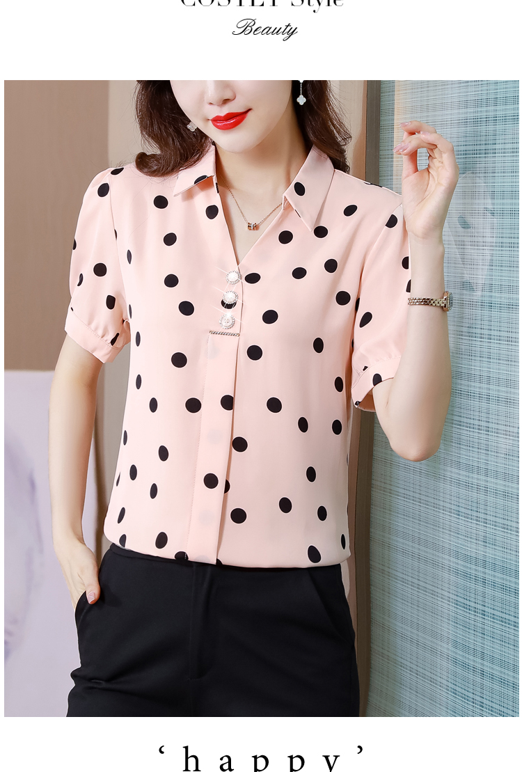 RY3682# 实拍2026春夏季新款衬衫短袖波点印花百搭气质上衣女