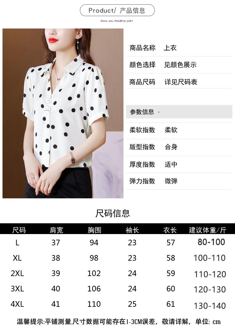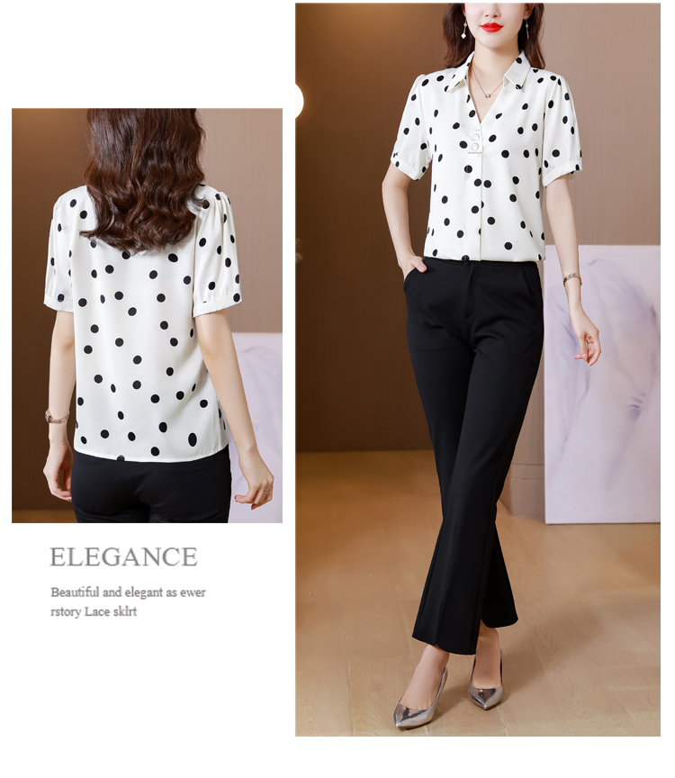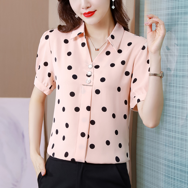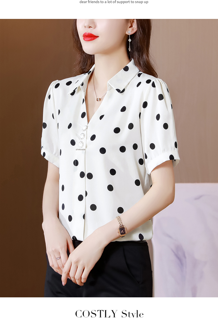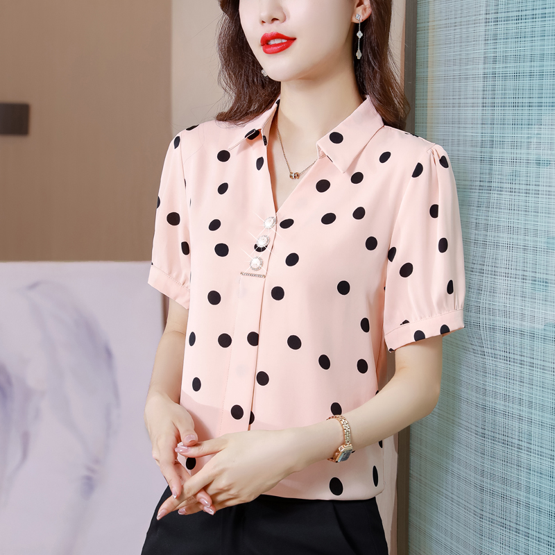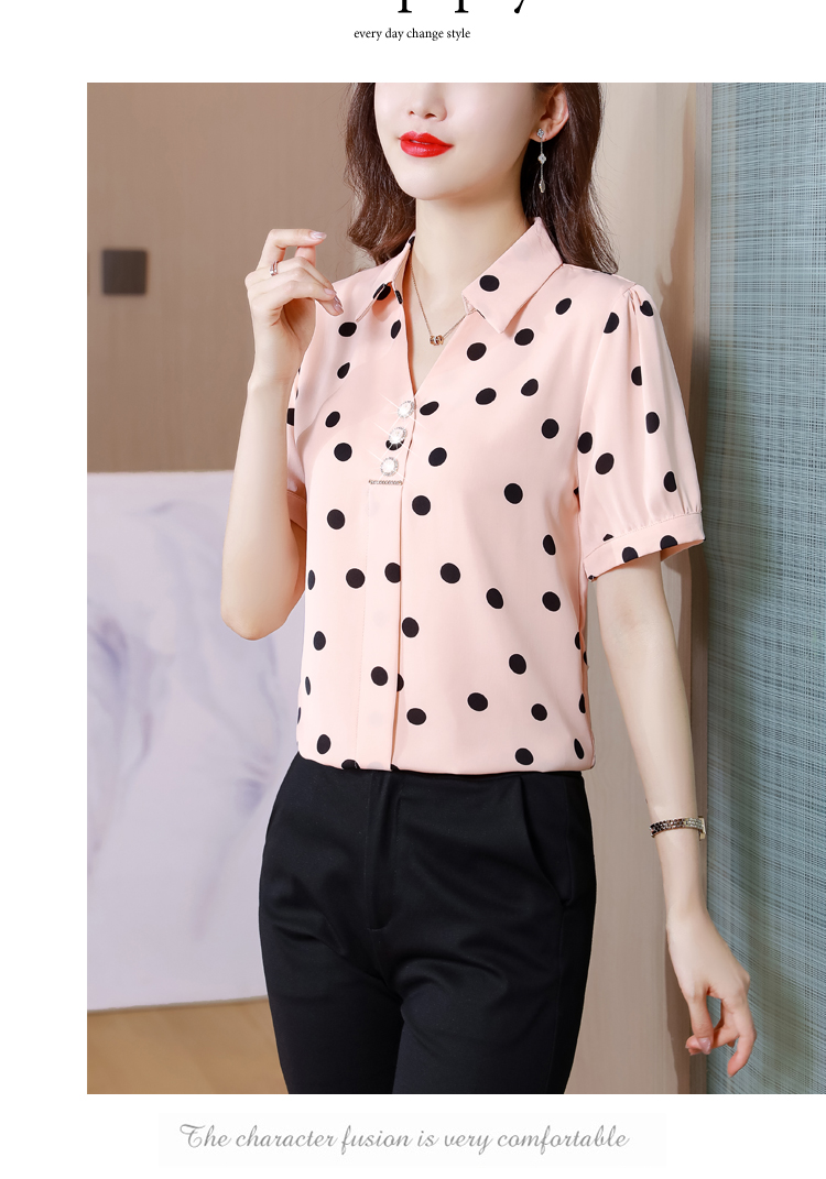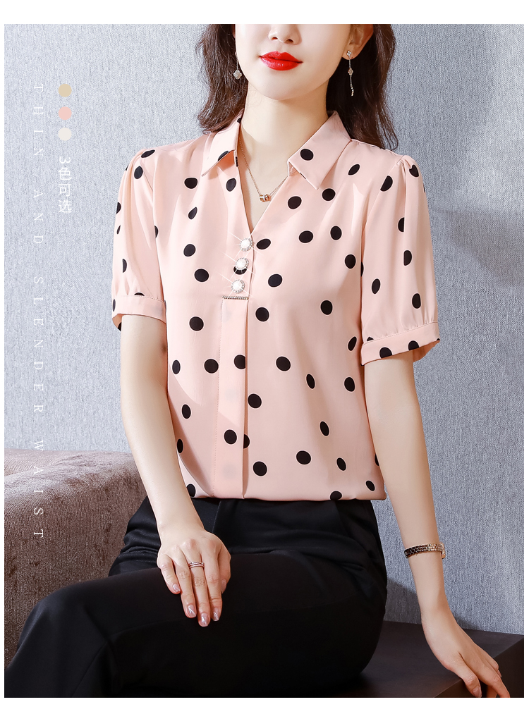 RY3682# 实拍2026春夏季新款衬衫短袖波点印花百搭气质上衣女