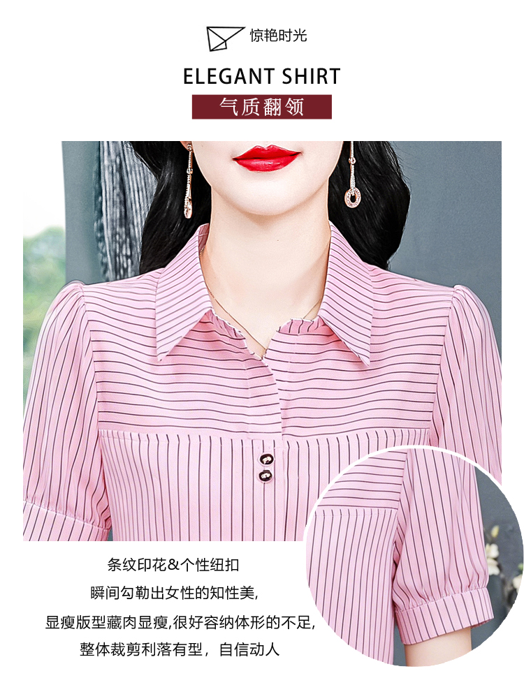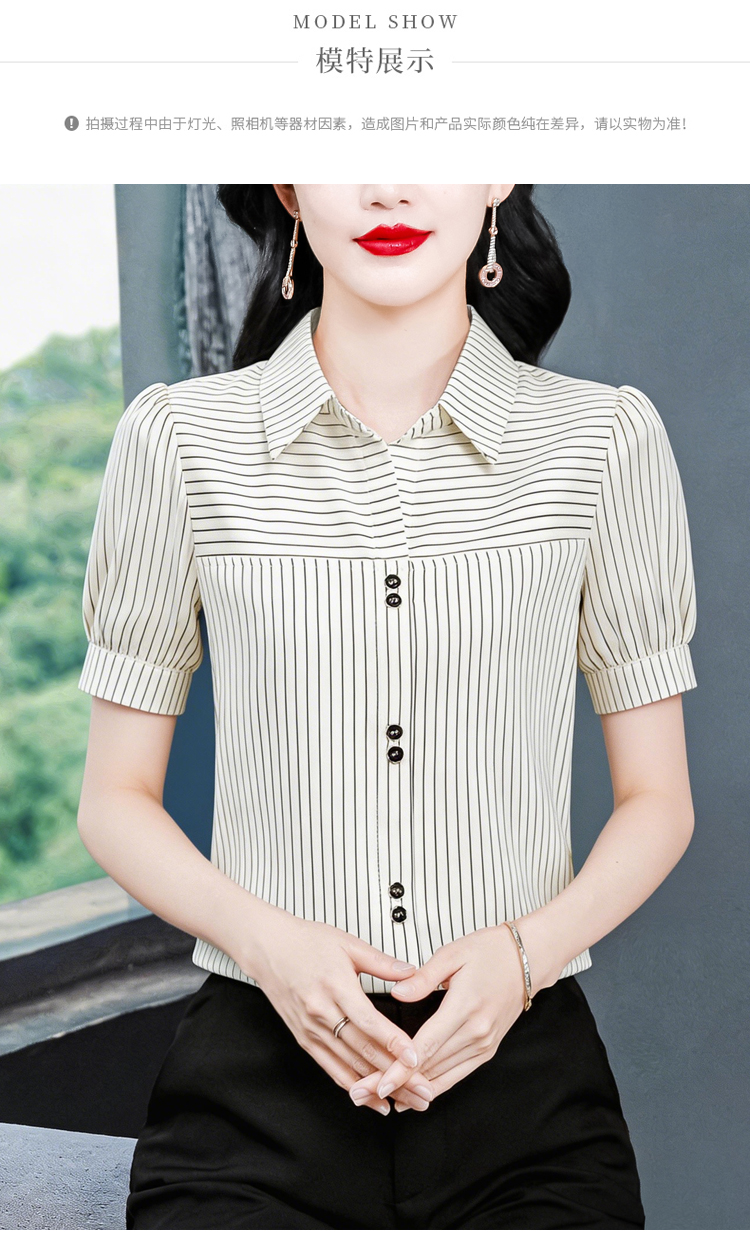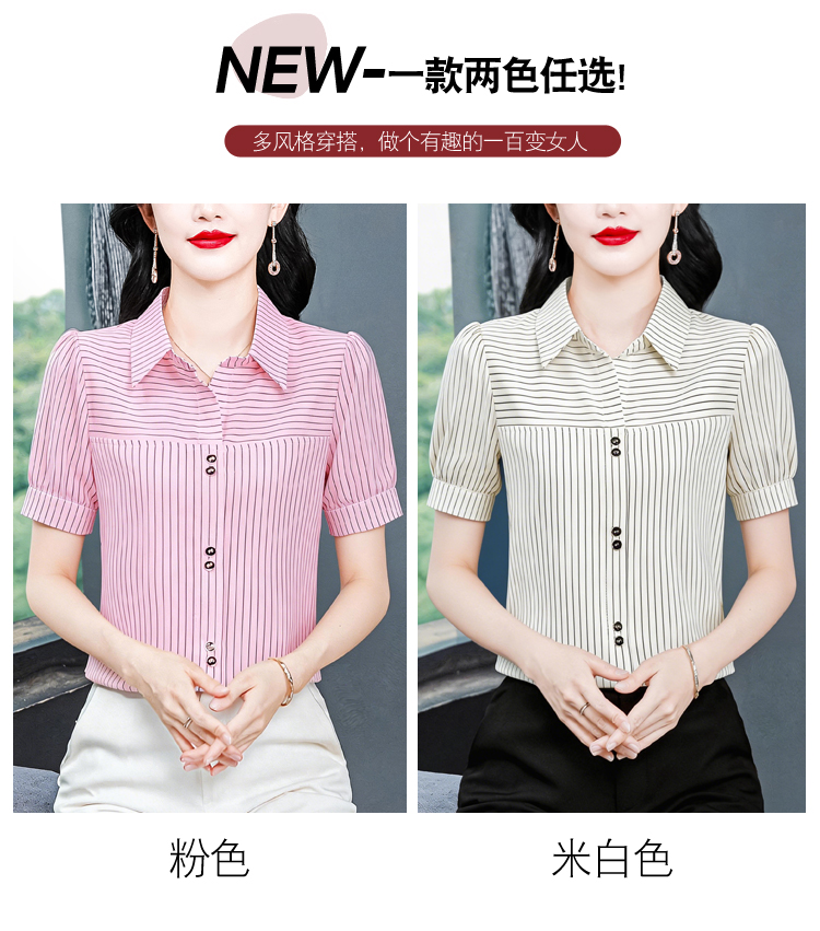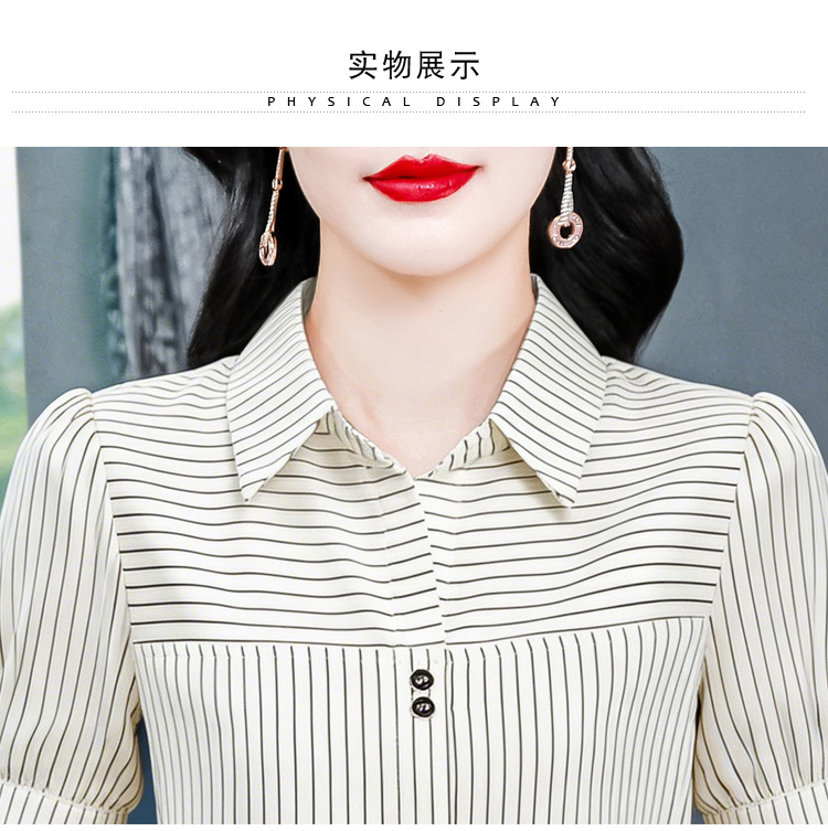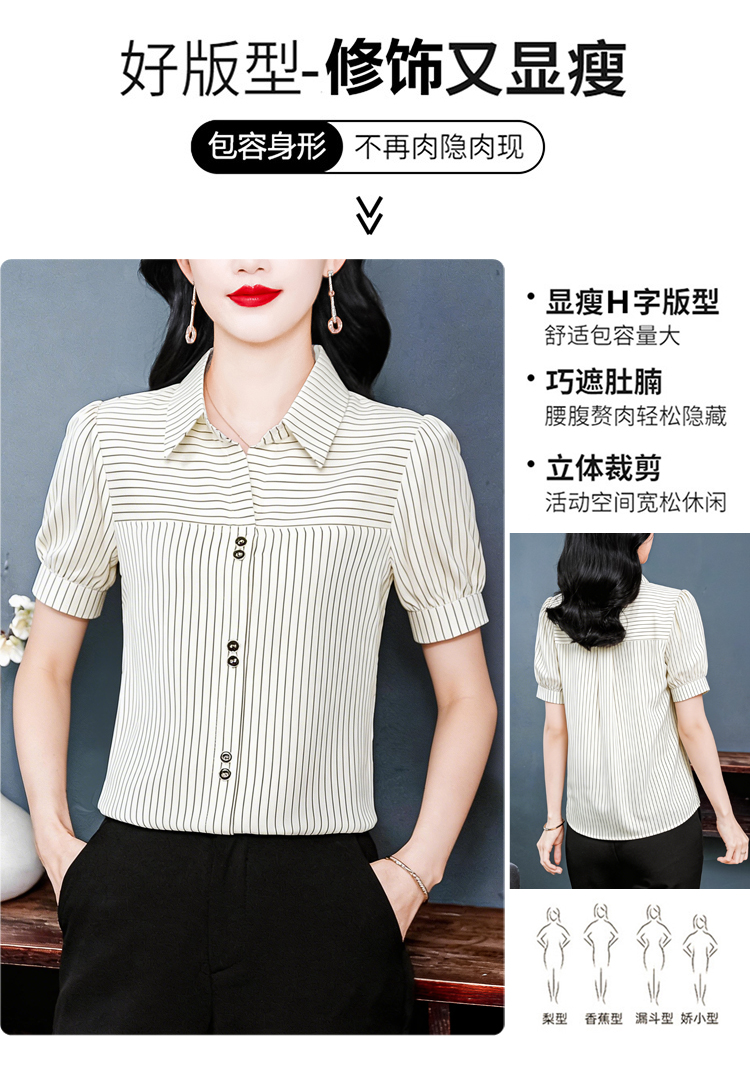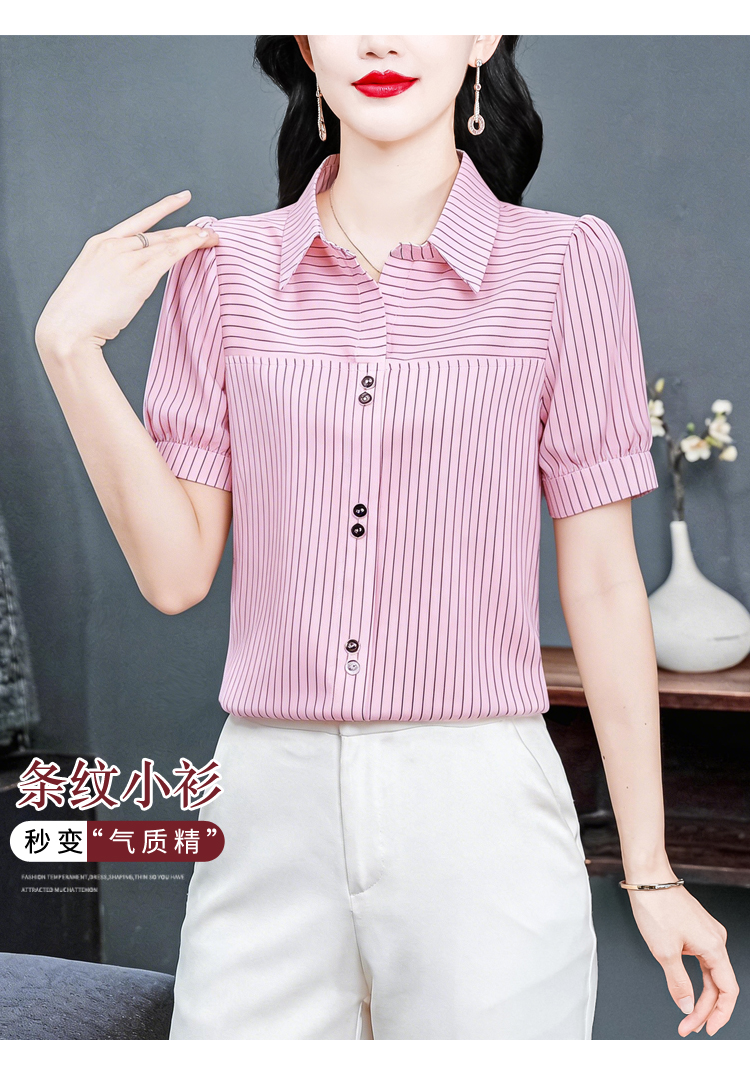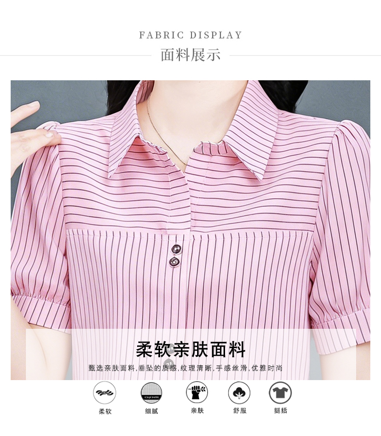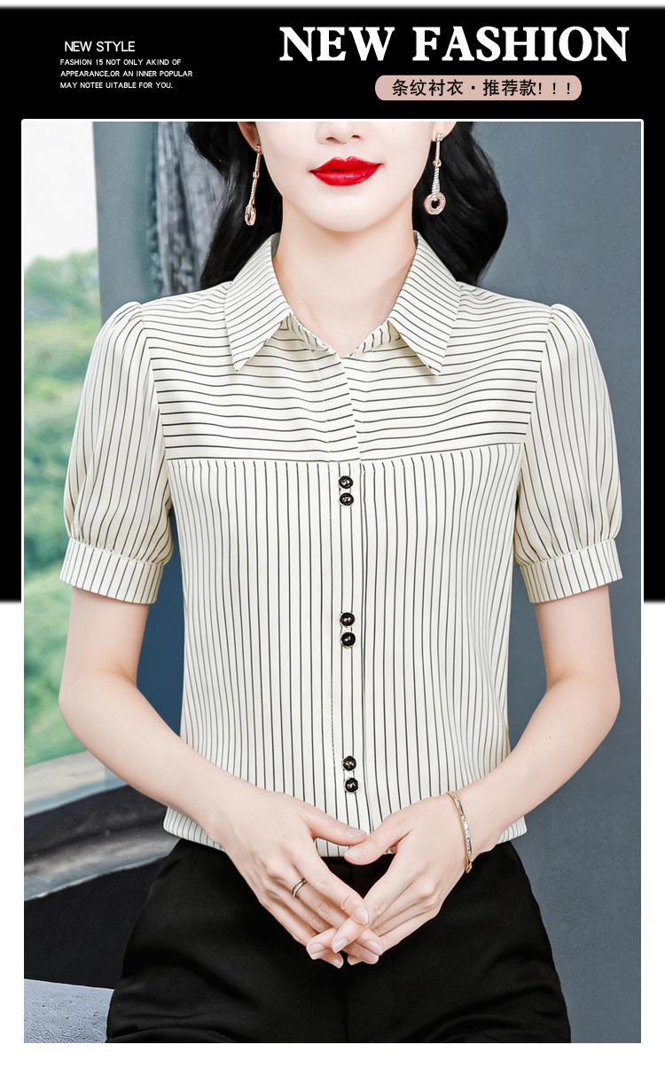 RY3686# 实拍 2026夏季新款时尚洋气条纹显瘦百搭高档套头短袖衬衣女