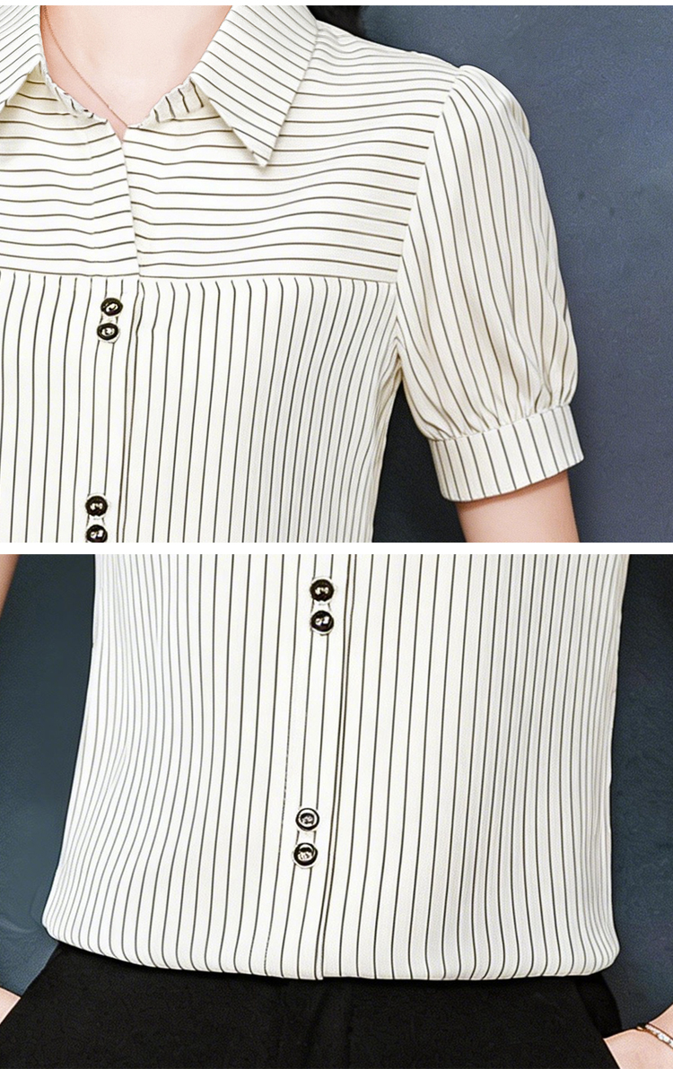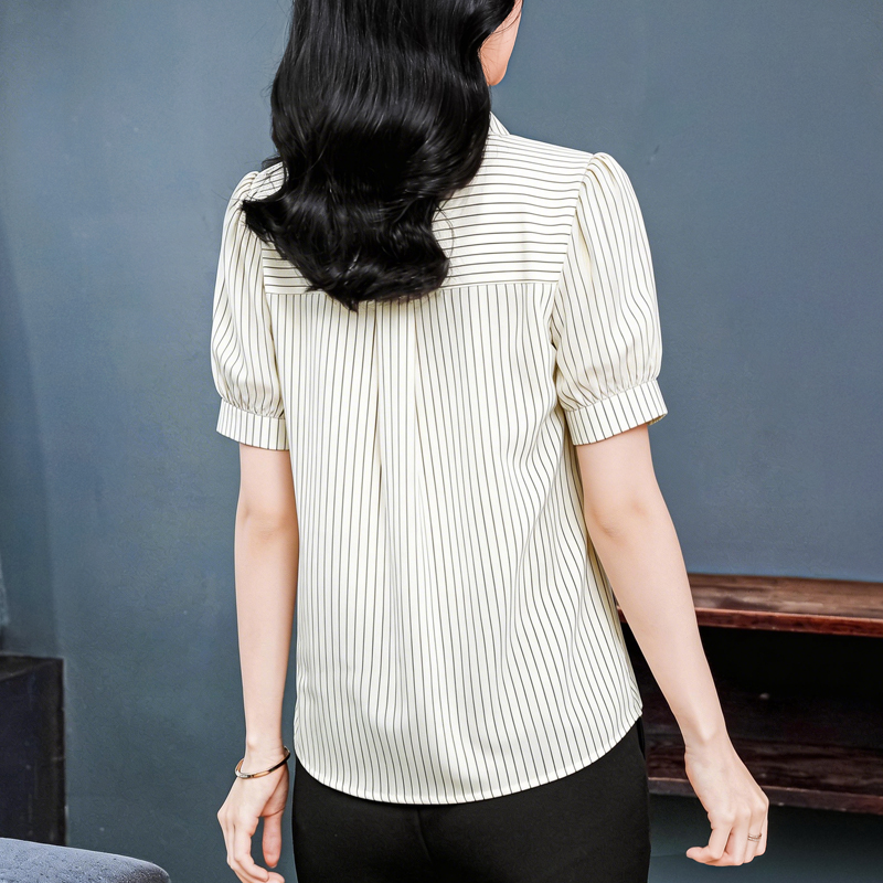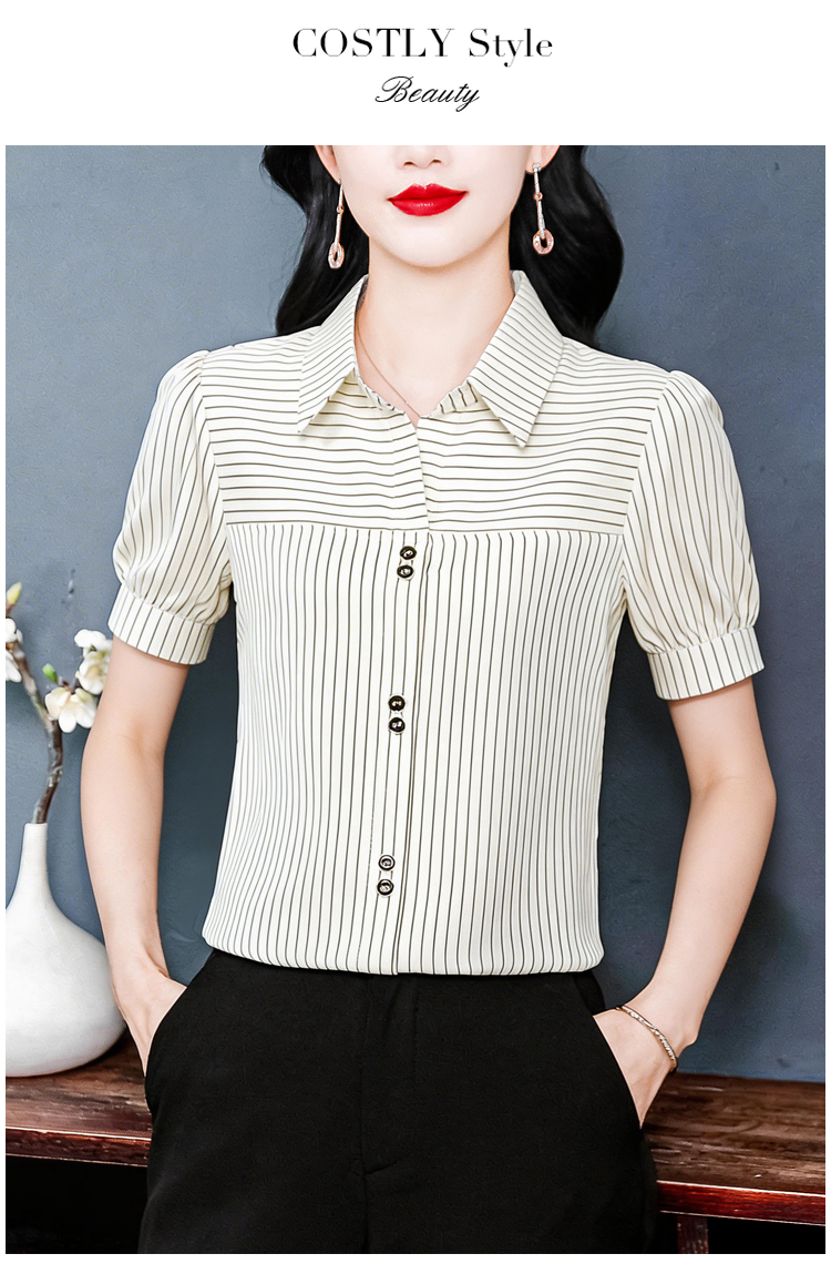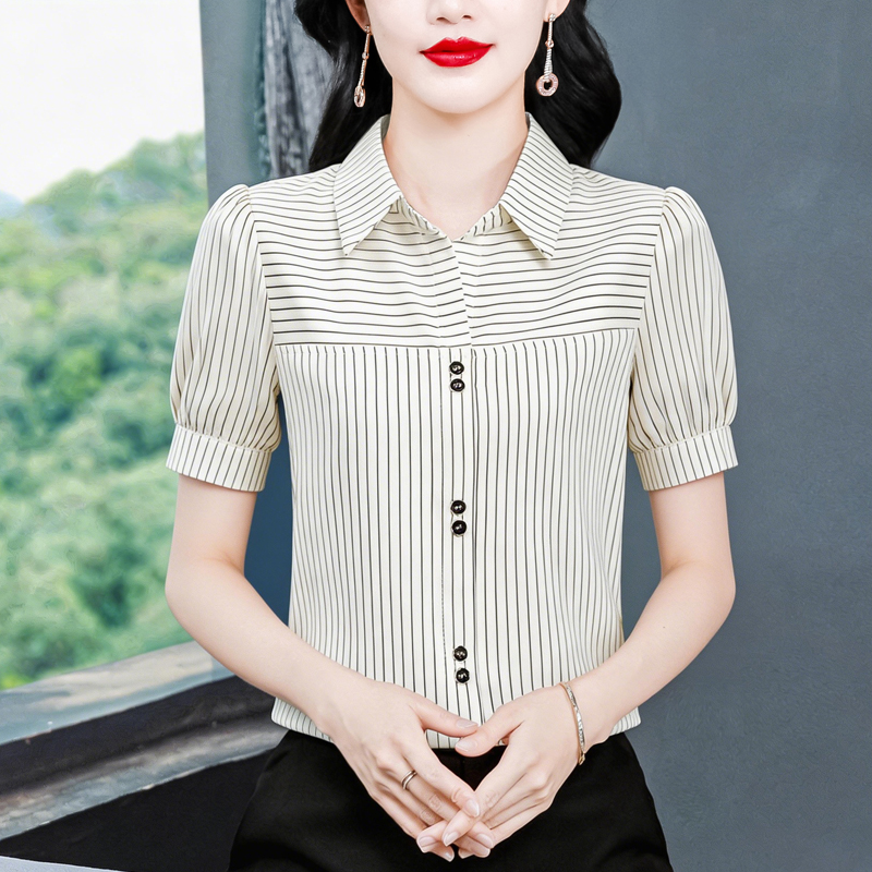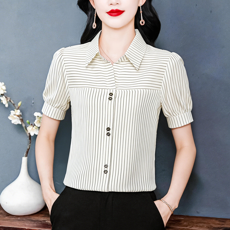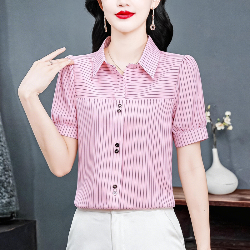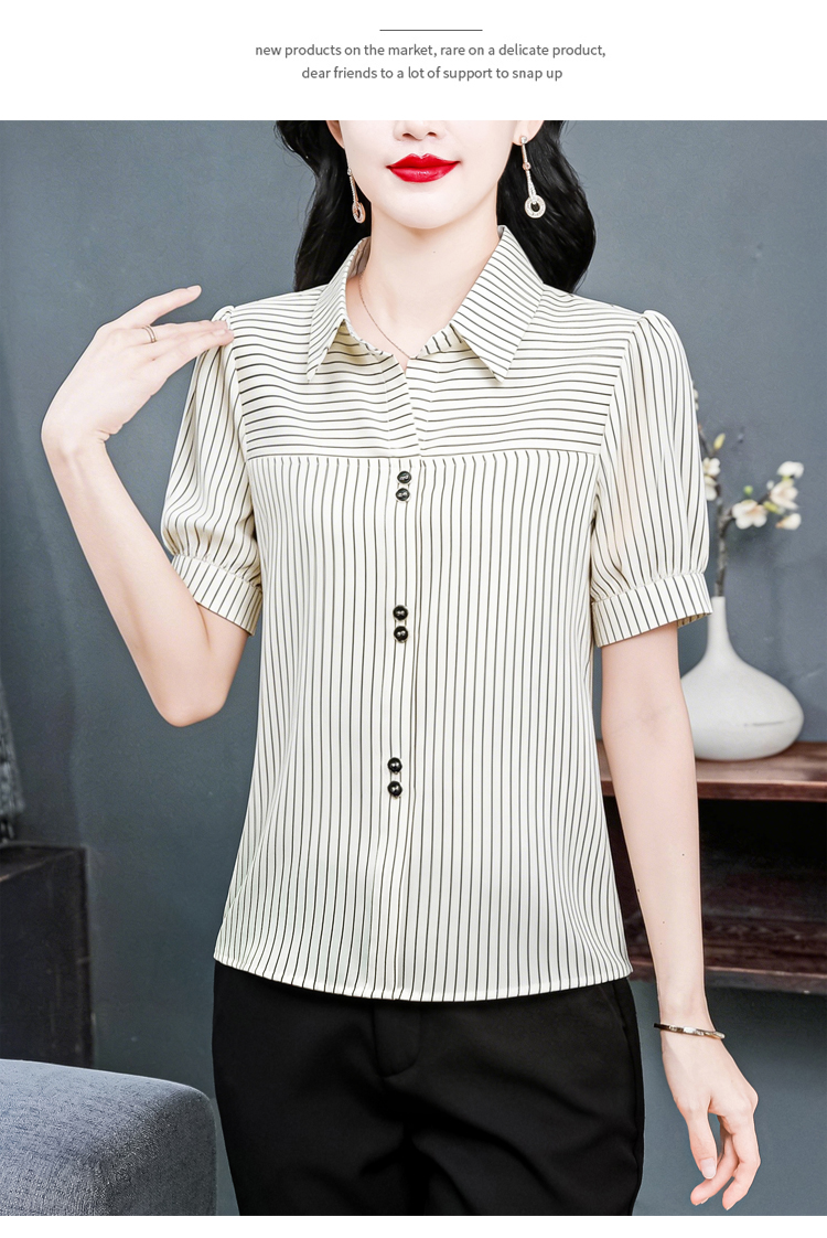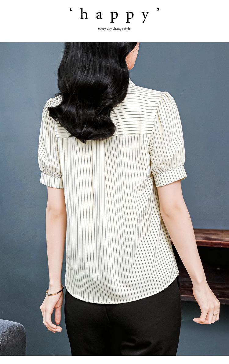RY3686# 实拍 2026夏季新款时尚洋气条纹显瘦百搭高档套头短袖衬衣女