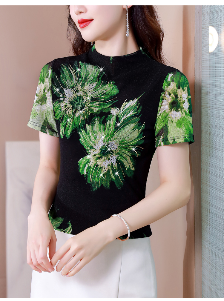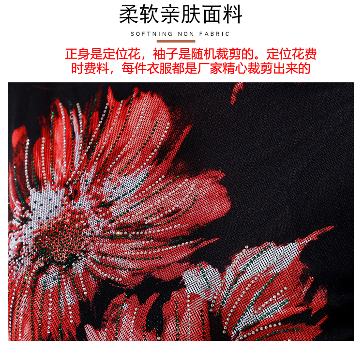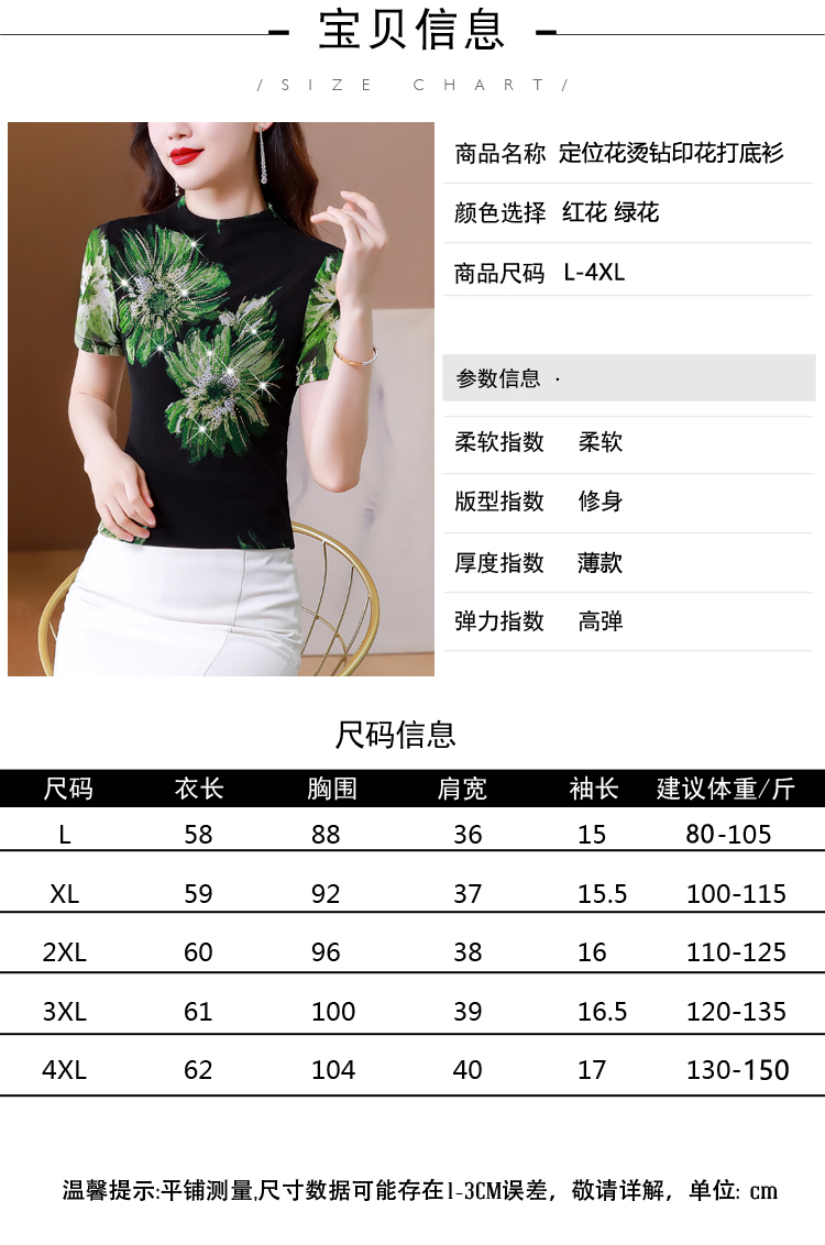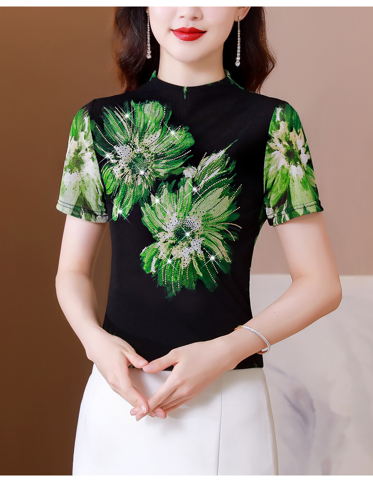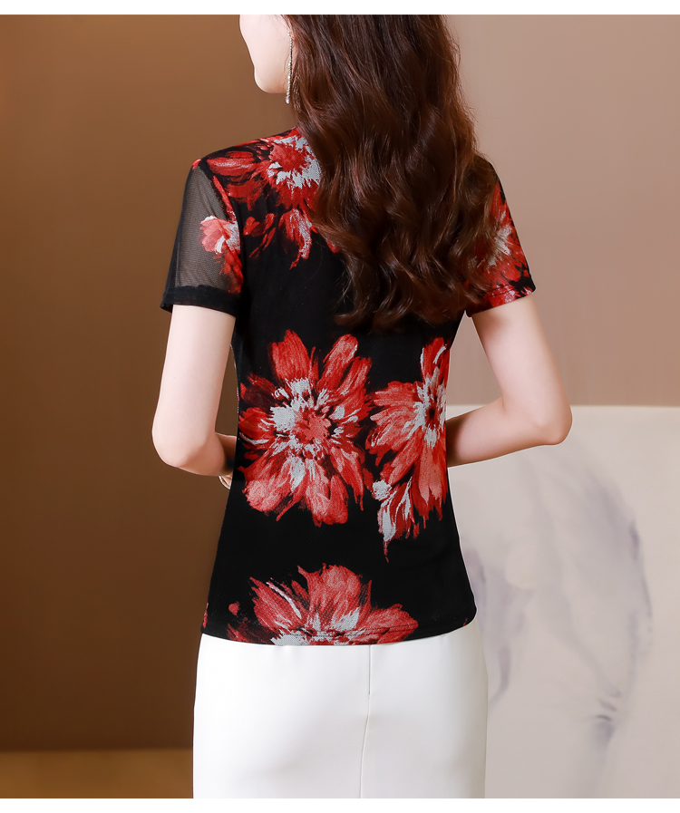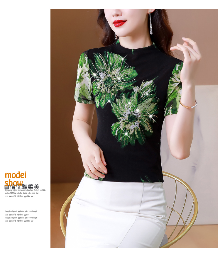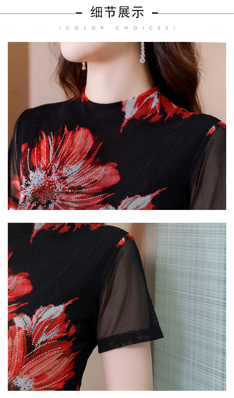 RY3688# 实拍 2026夏季新款韩版修身定位花烫钻网纱印花打底衫上衣女