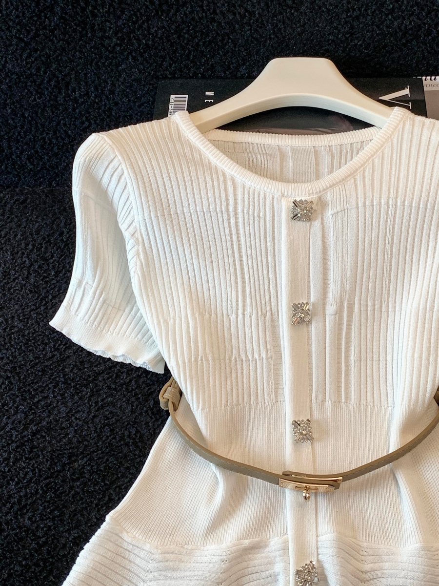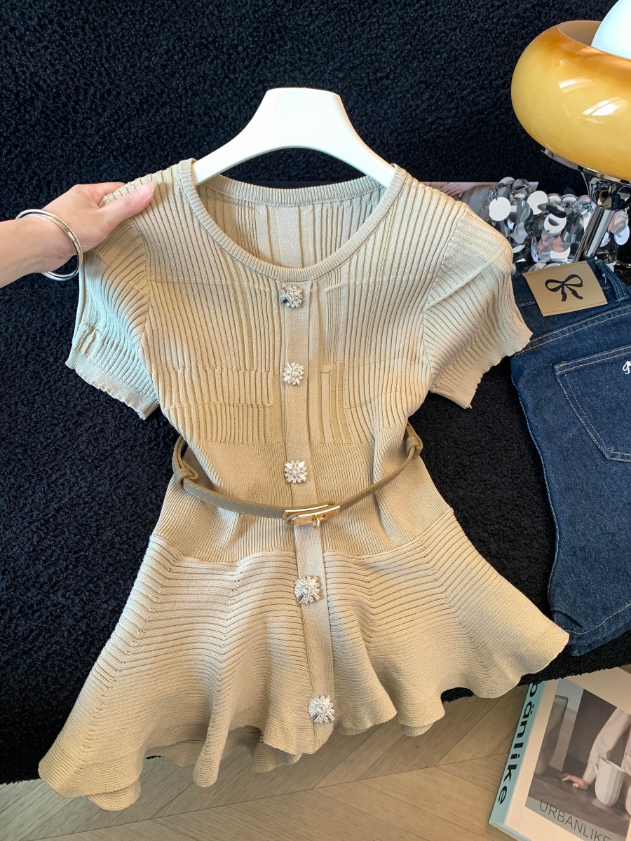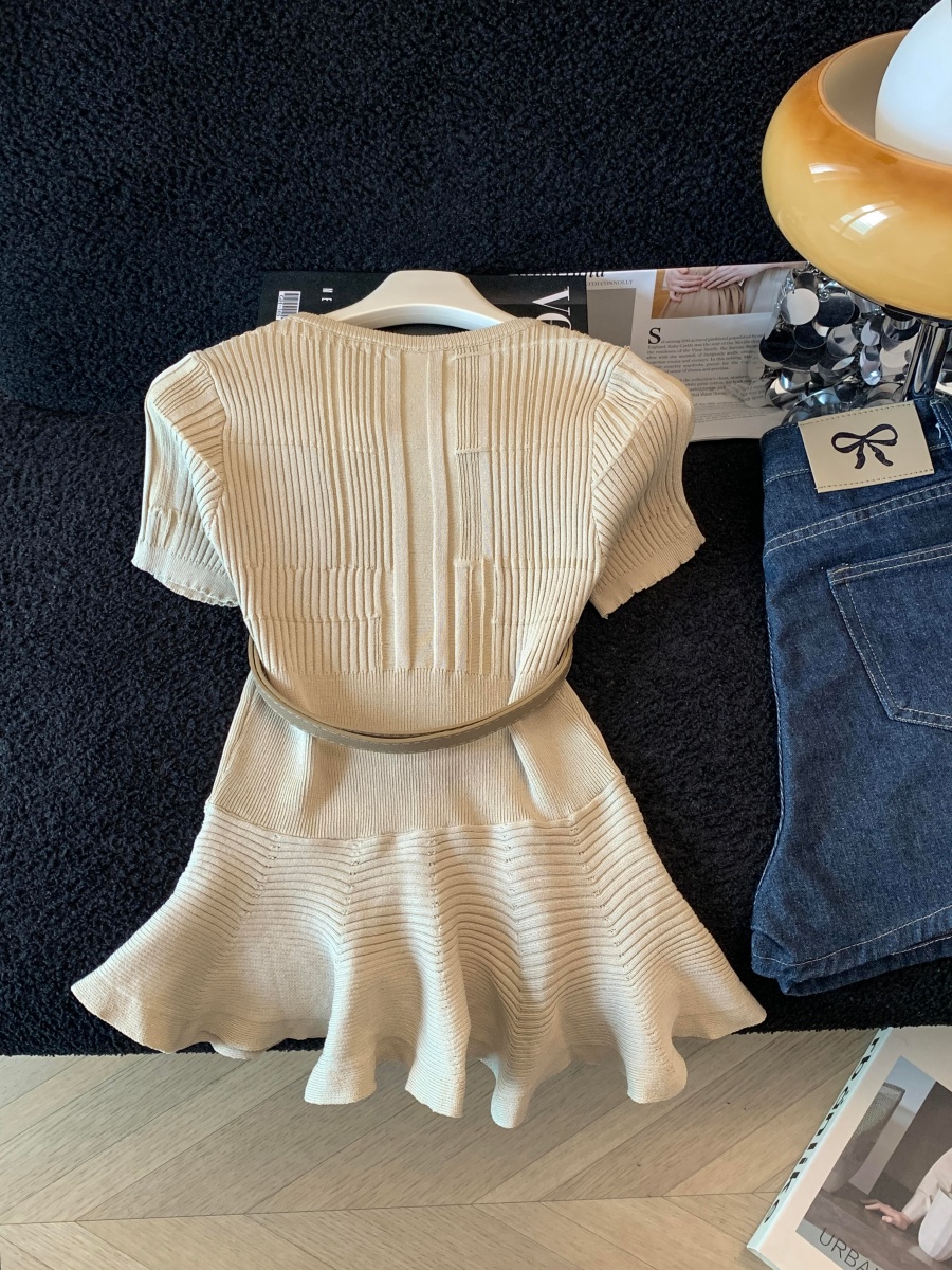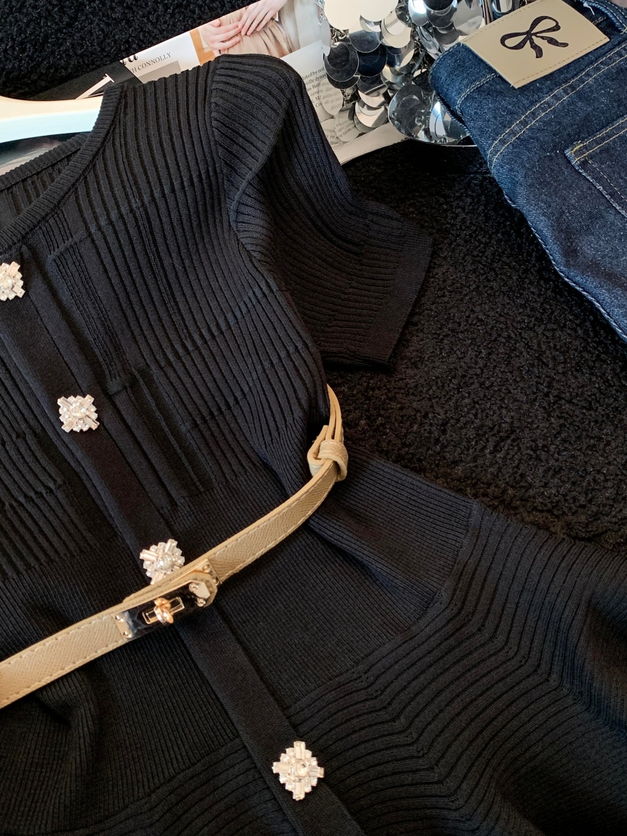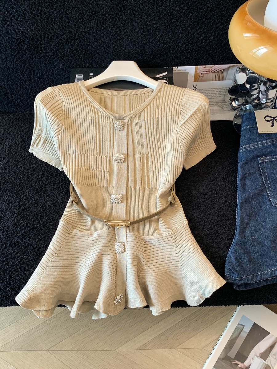 RY3714# 实拍轻奢名媛风针织衫2026新款高级感休闲百搭显瘦短袖上衣带腰带