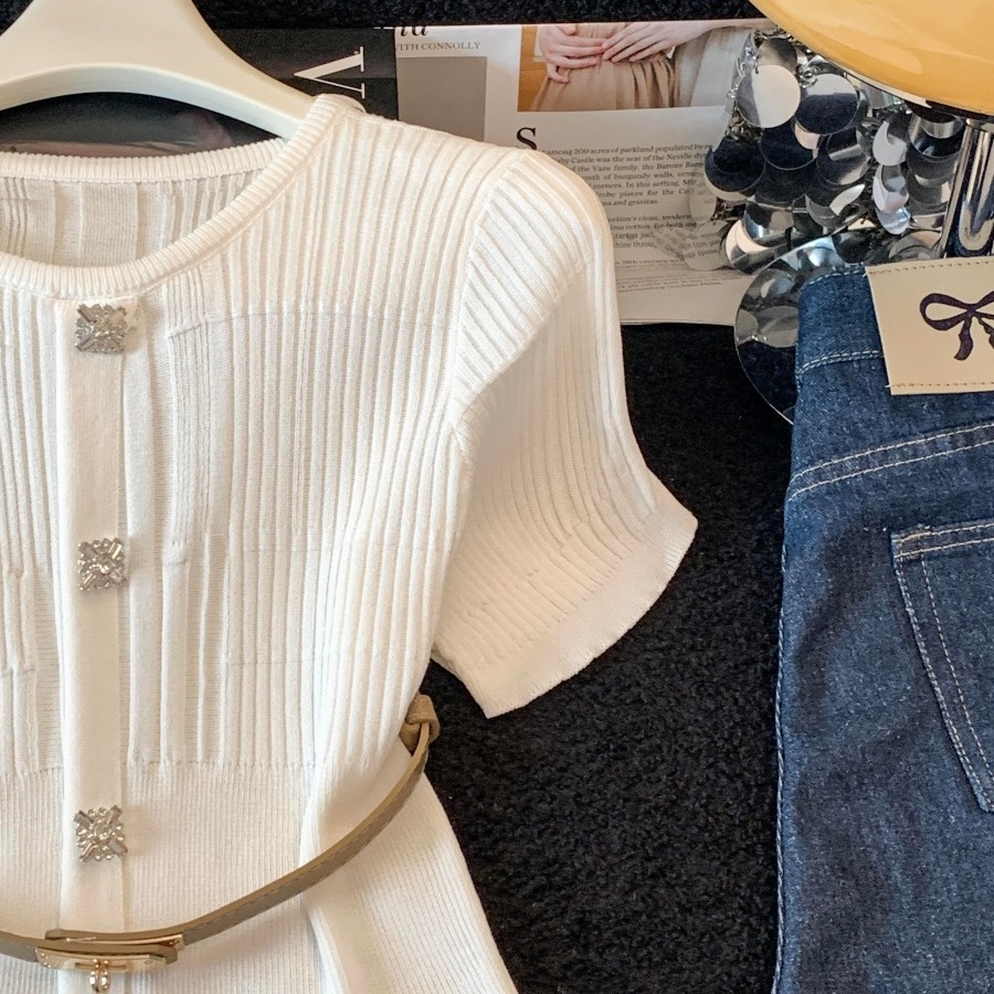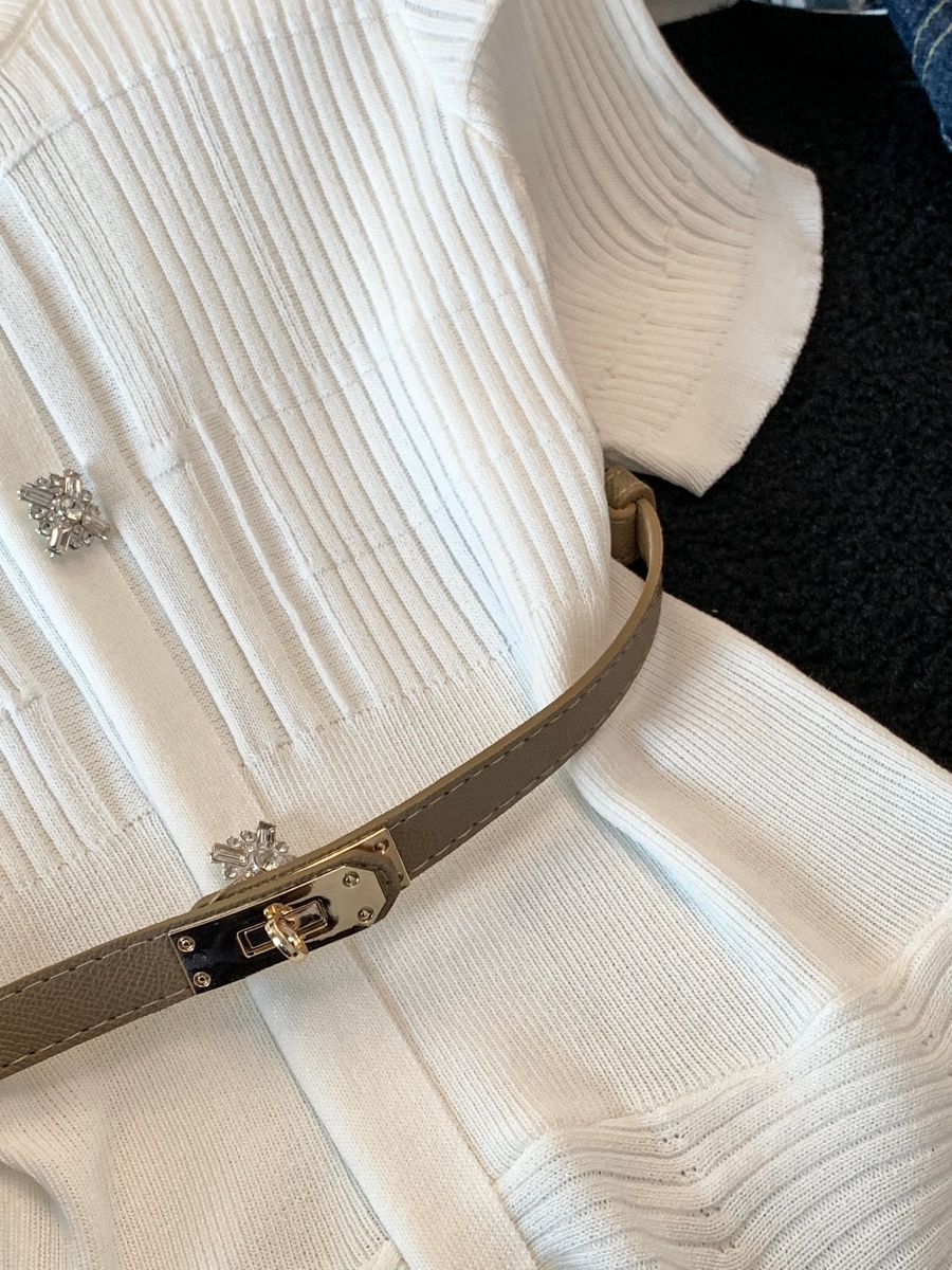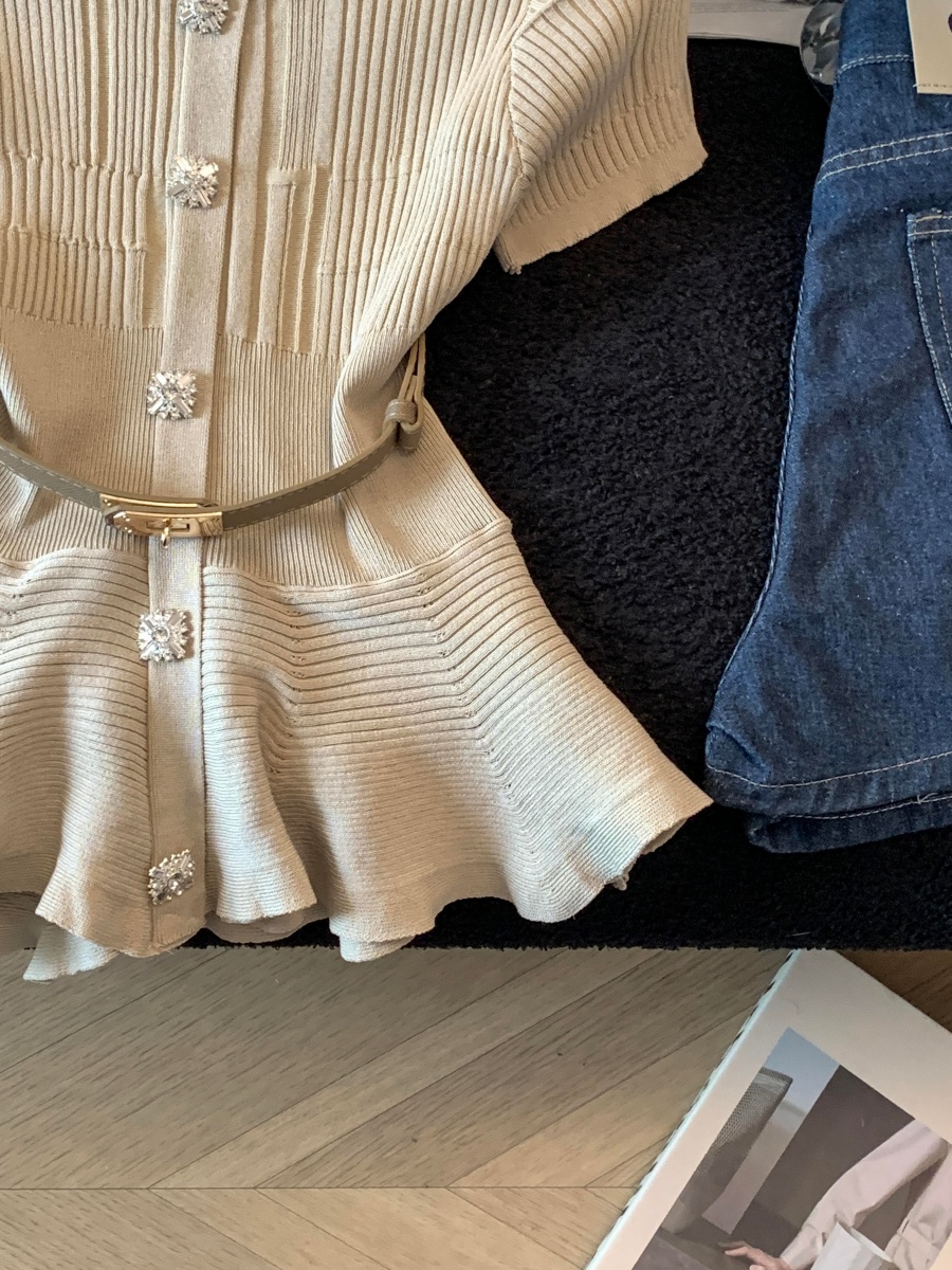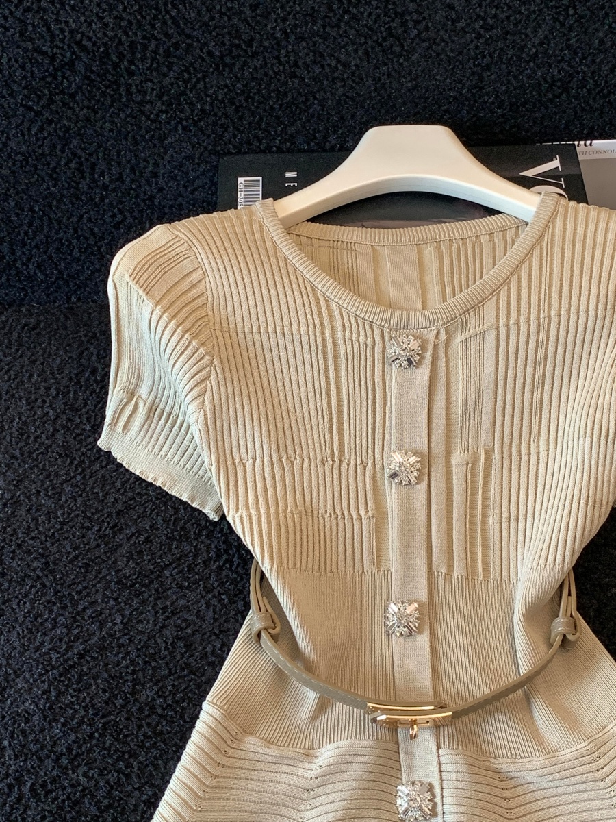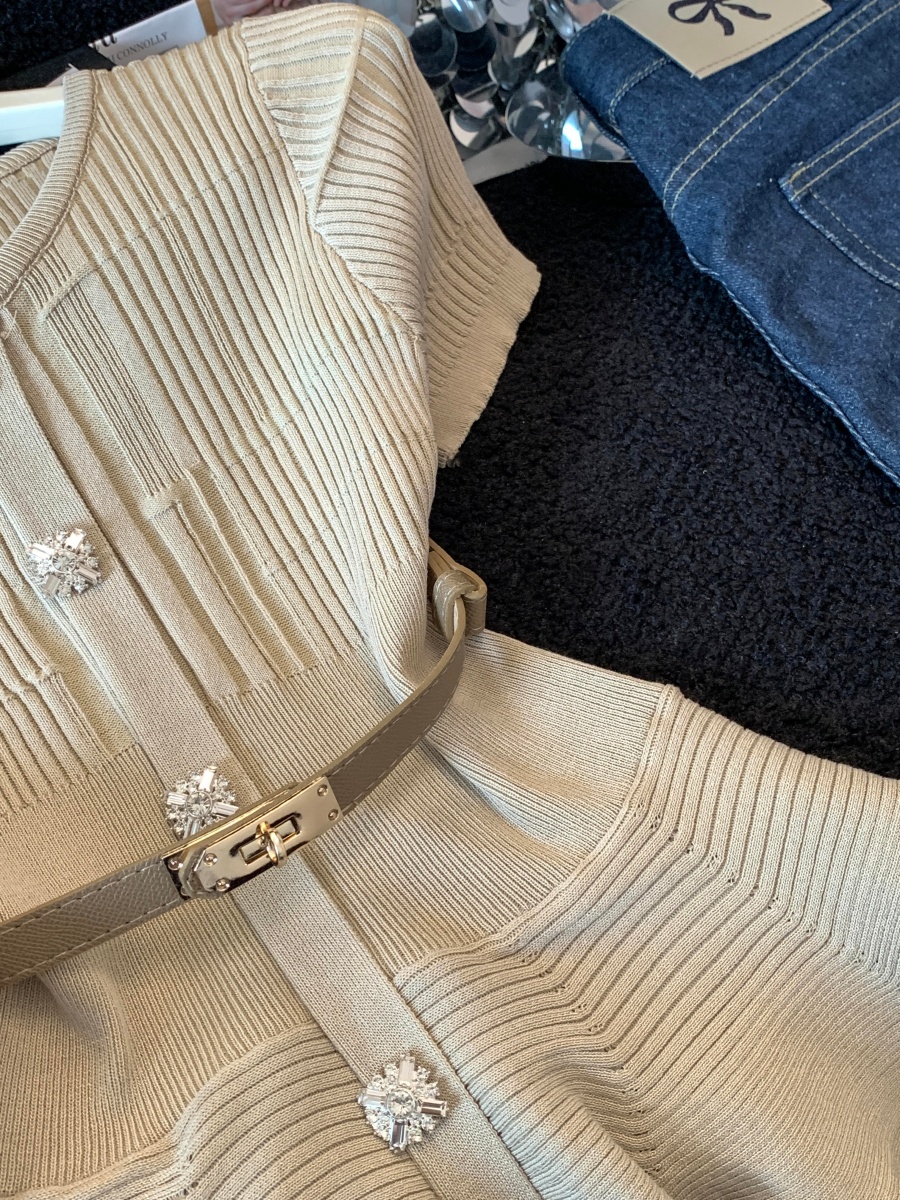 RY3714# 实拍轻奢名媛风针织衫2026新款高级感休闲百搭显瘦短袖上衣带腰带