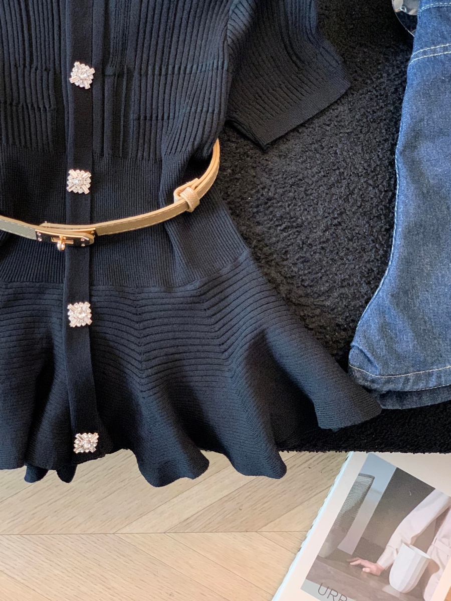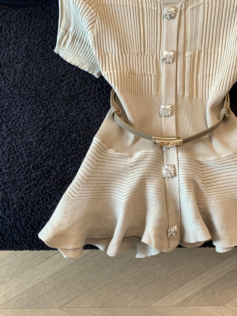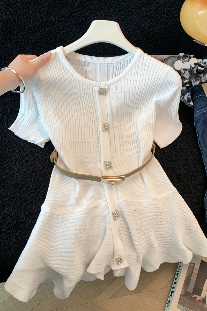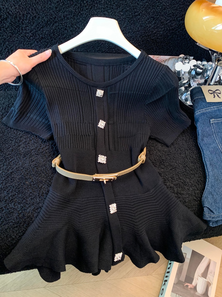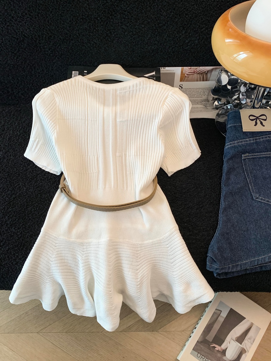 RY3714# 实拍轻奢名媛风针织衫2026新款高级感休闲百搭显瘦短袖上衣带腰带