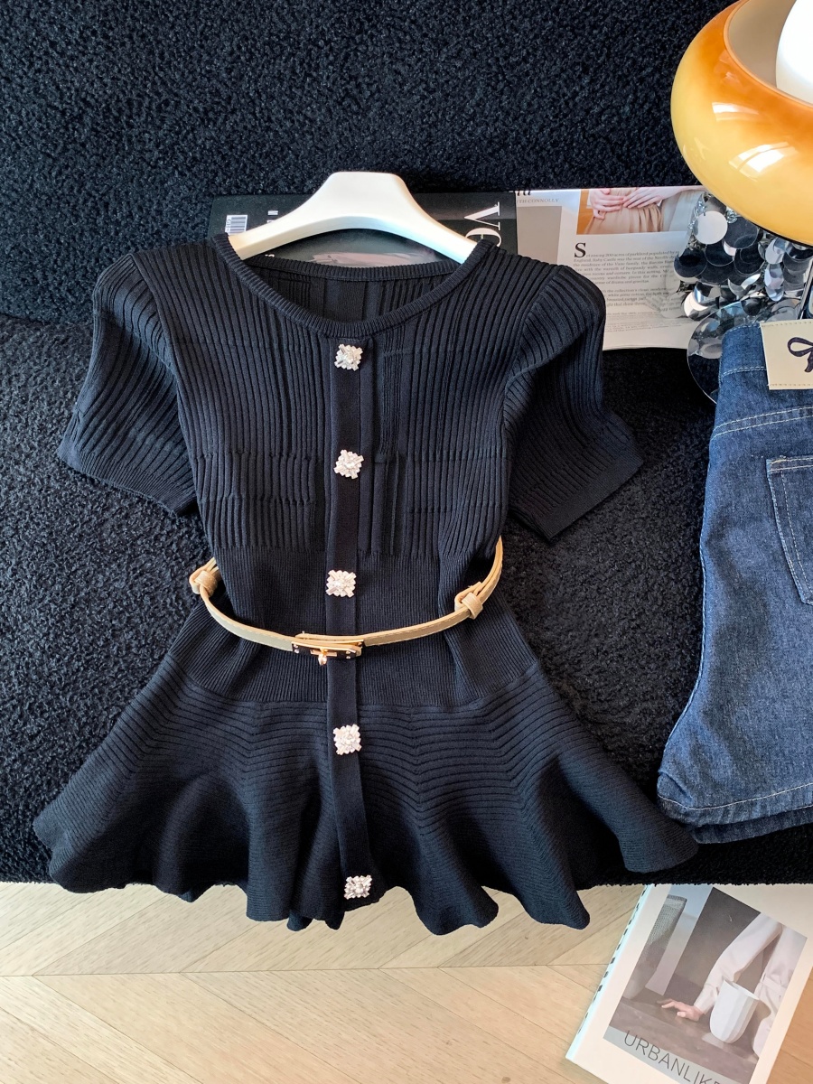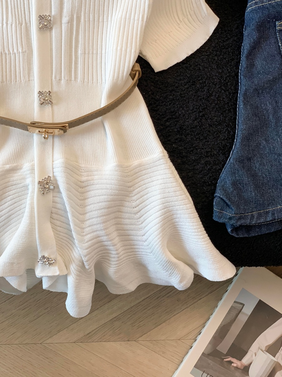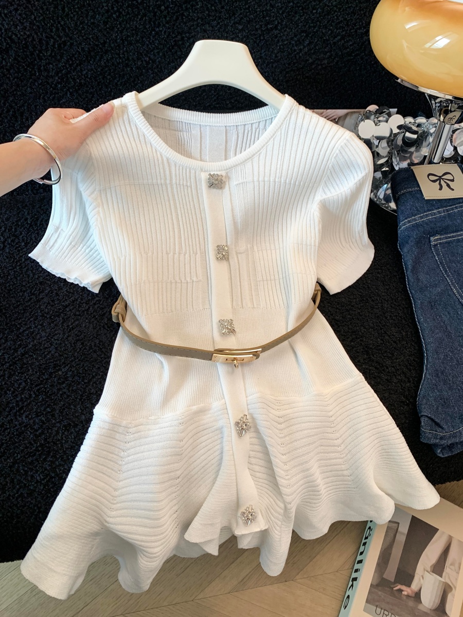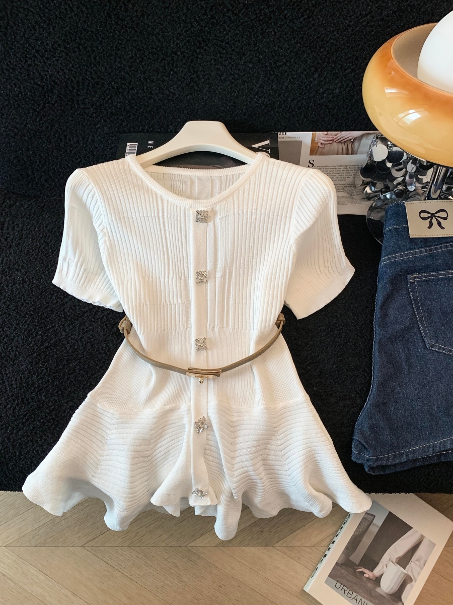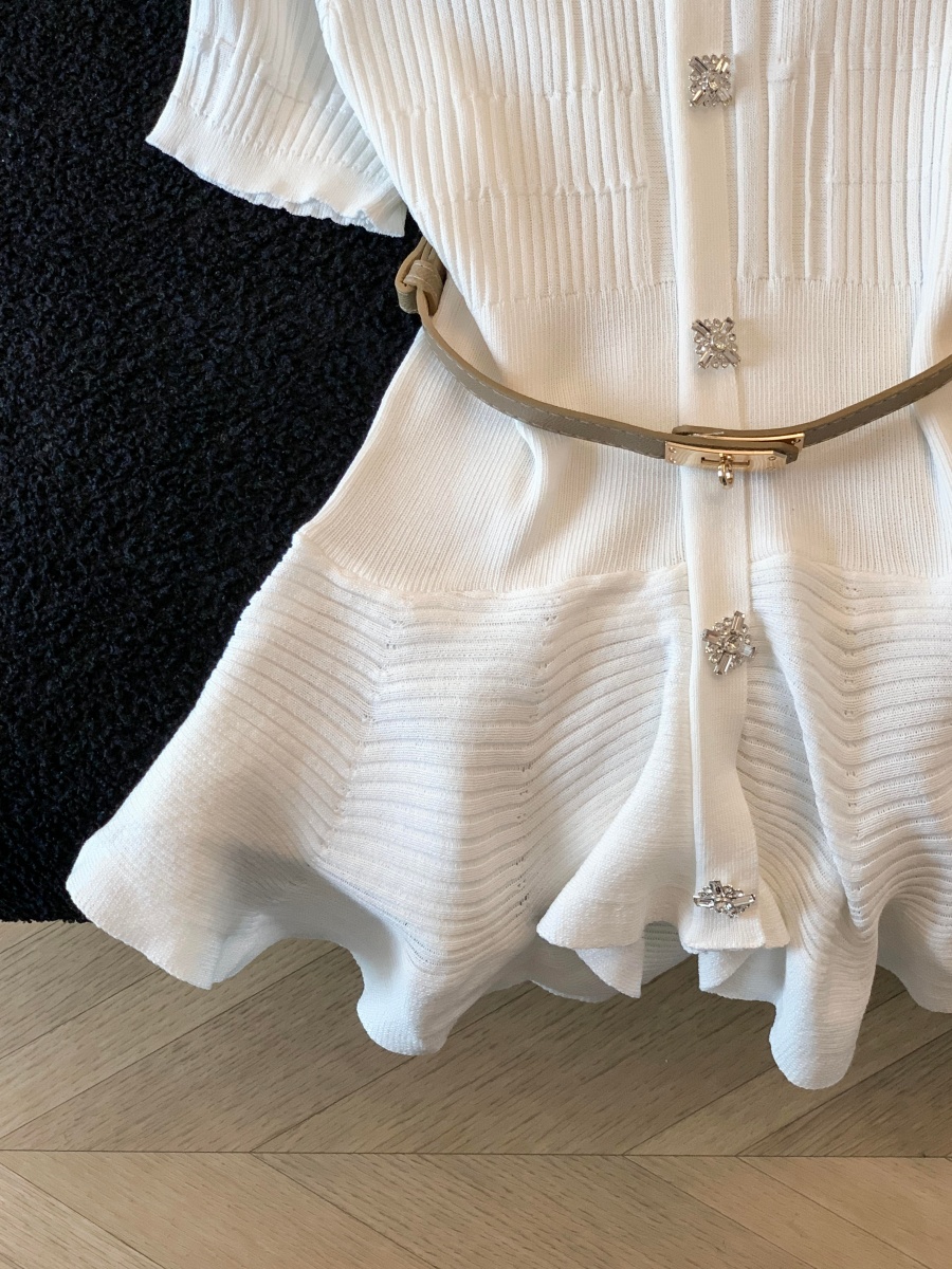 RY3714# 实拍轻奢名媛风针织衫2026新款高级感休闲百搭显瘦短袖上衣带腰带
