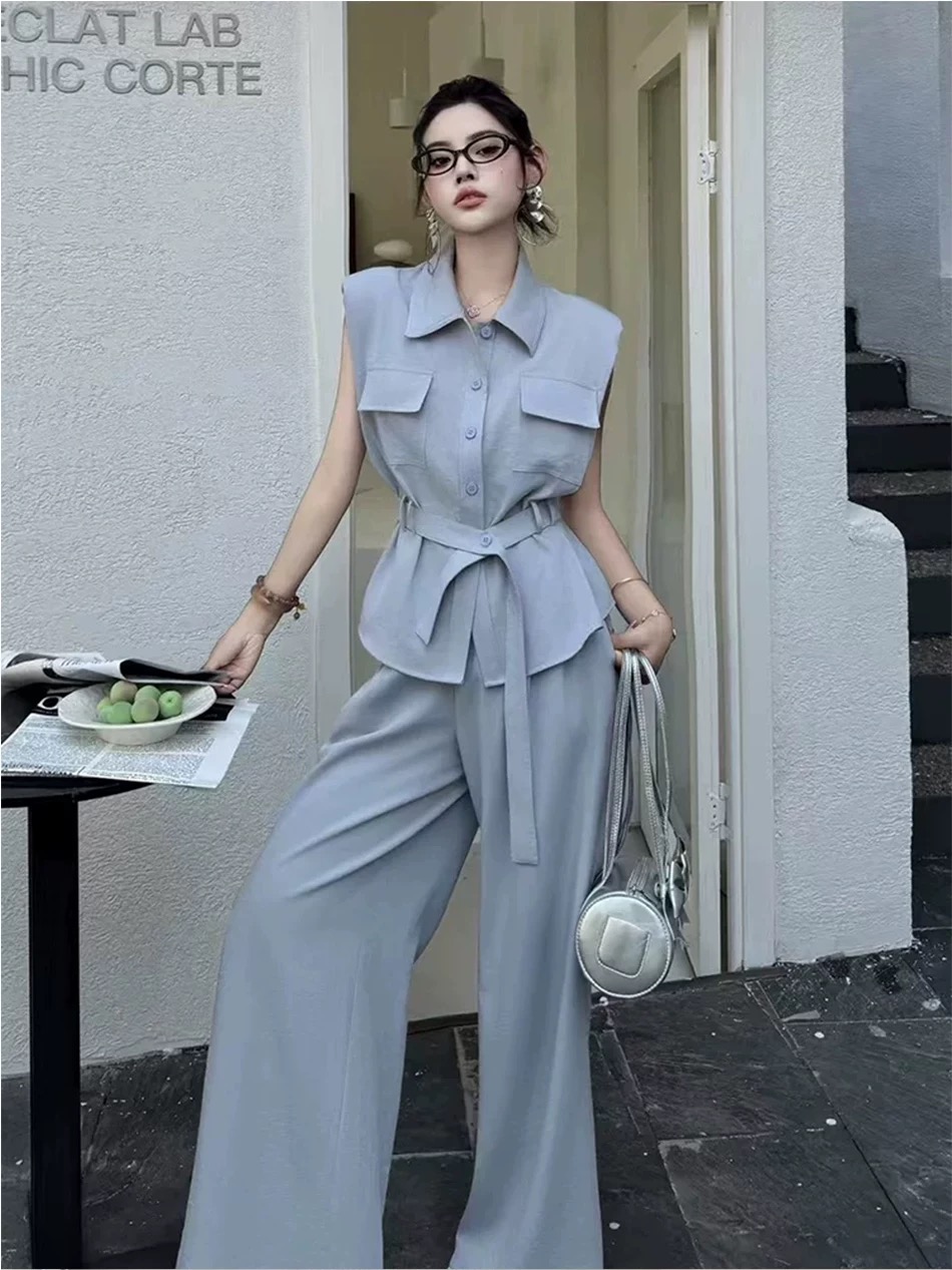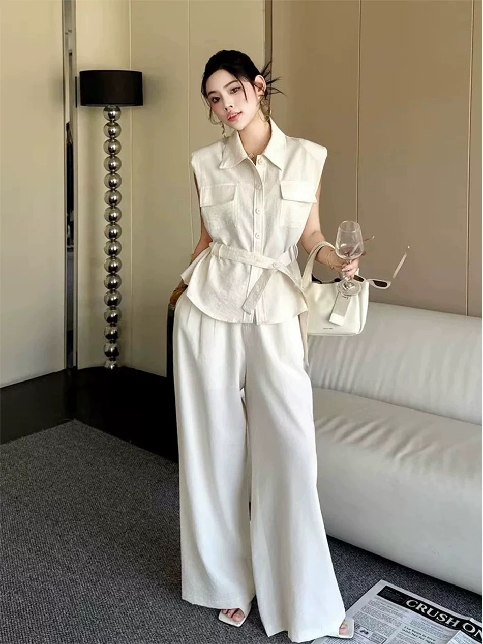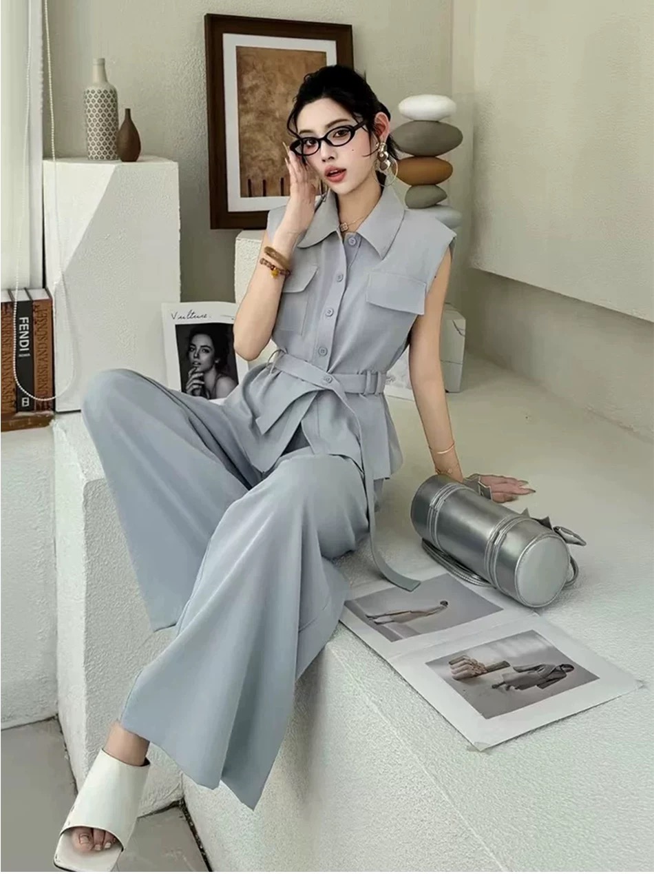 RY3731# 时尚高级感套装女2026夏季新款收腰显瘦洋气减龄无袖休闲裤两件套