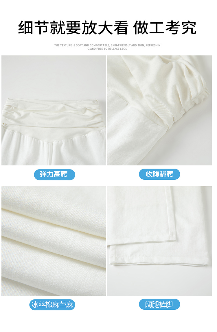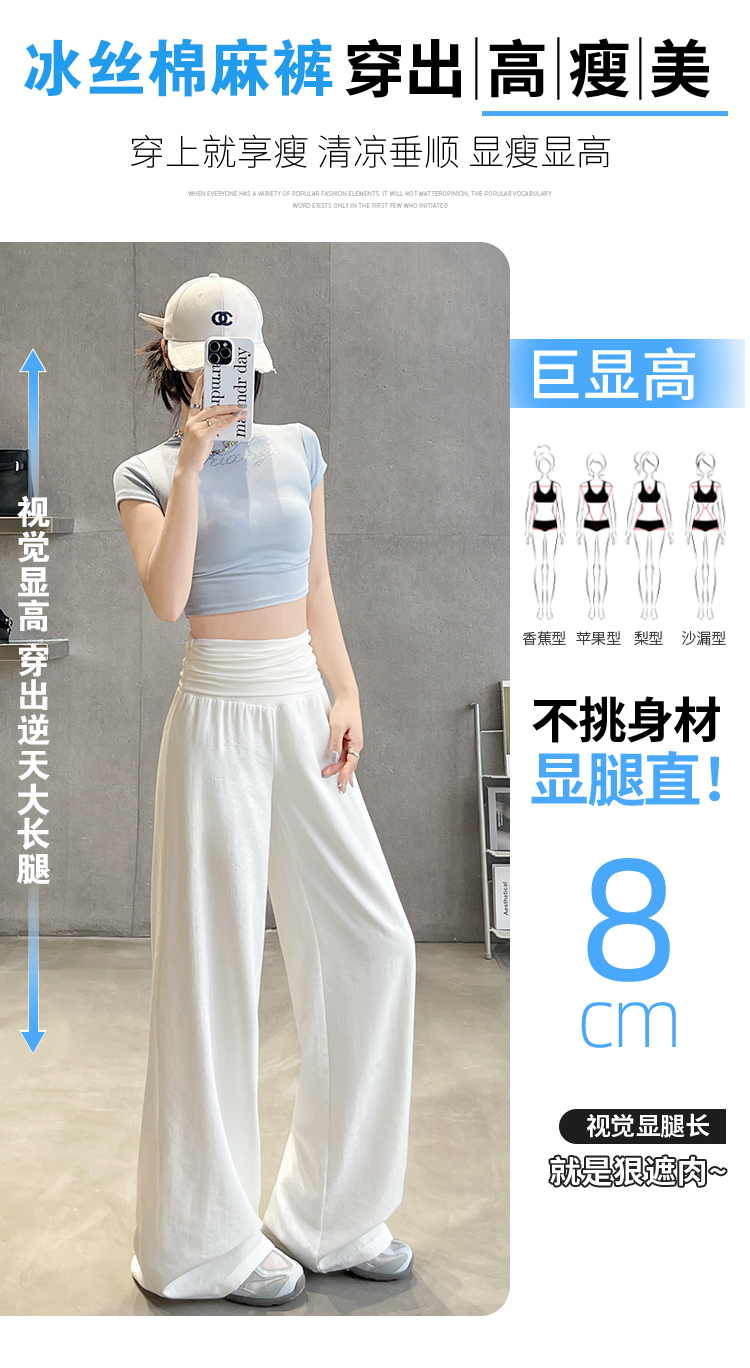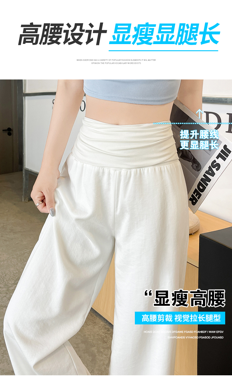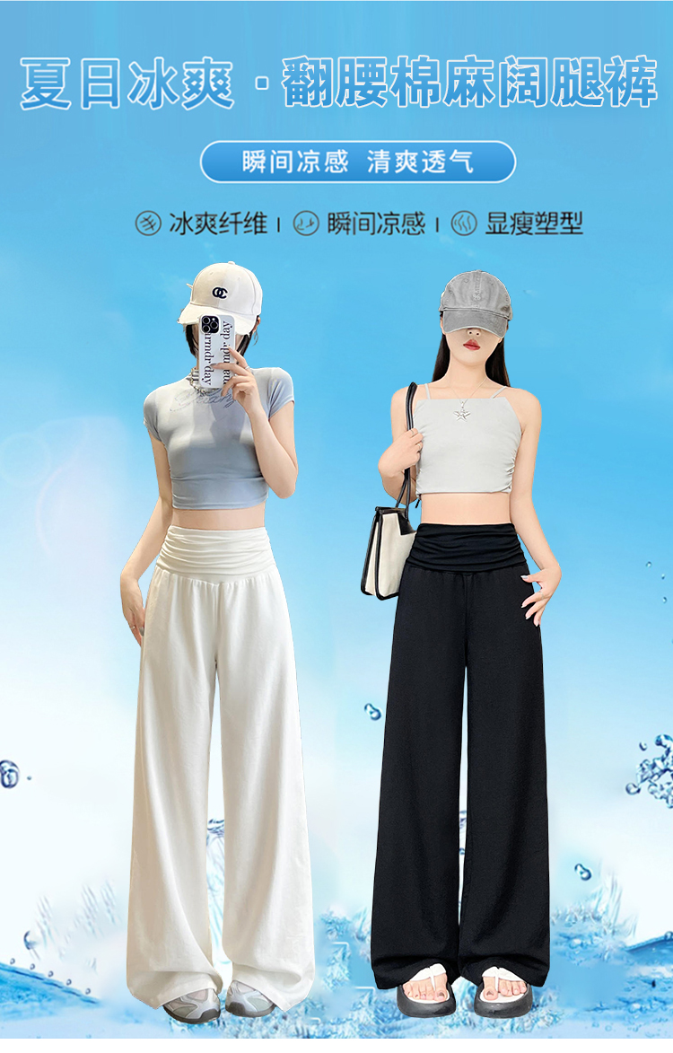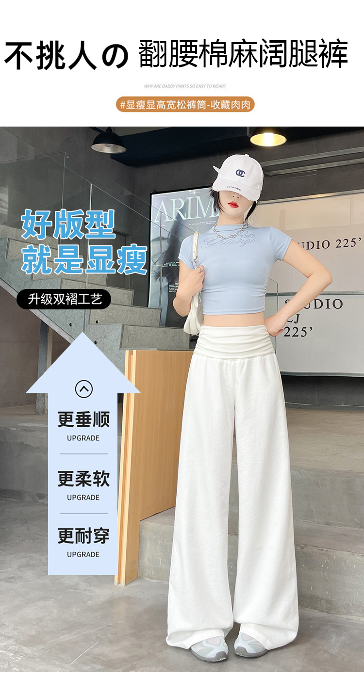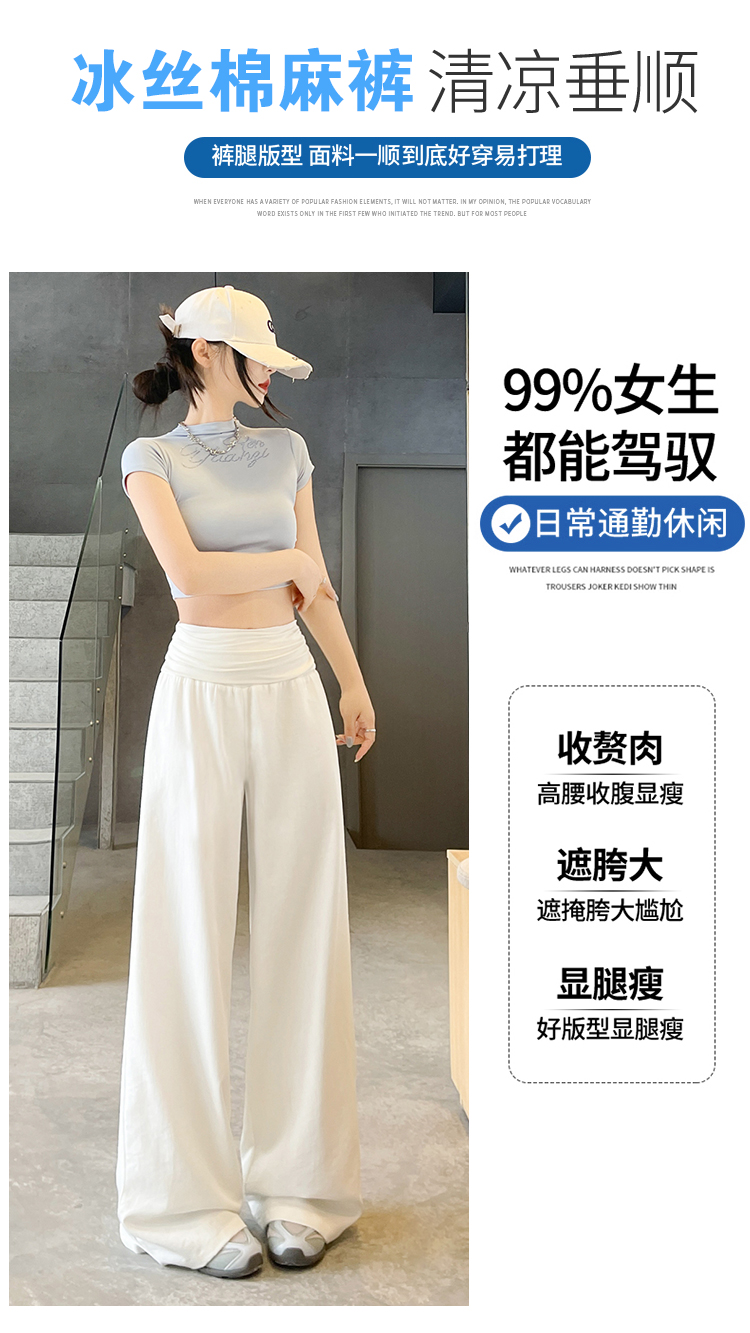 RY3755# 实拍白色亚麻天丝棉阔腿裤女夏季薄款度假风垂感老钱风直筒休闲裤