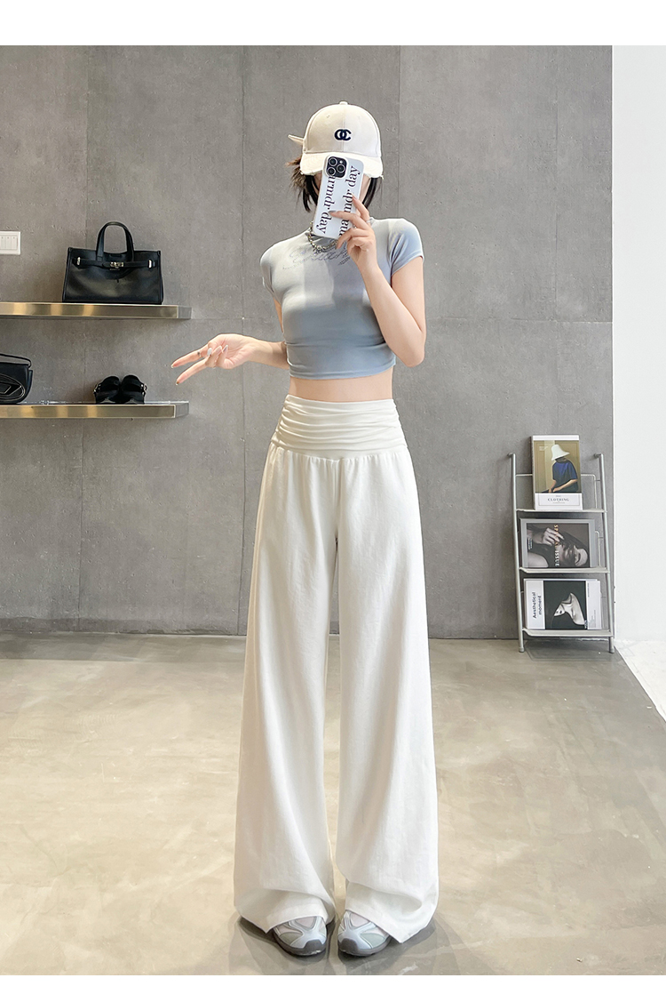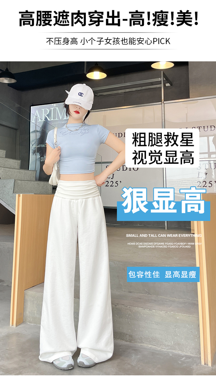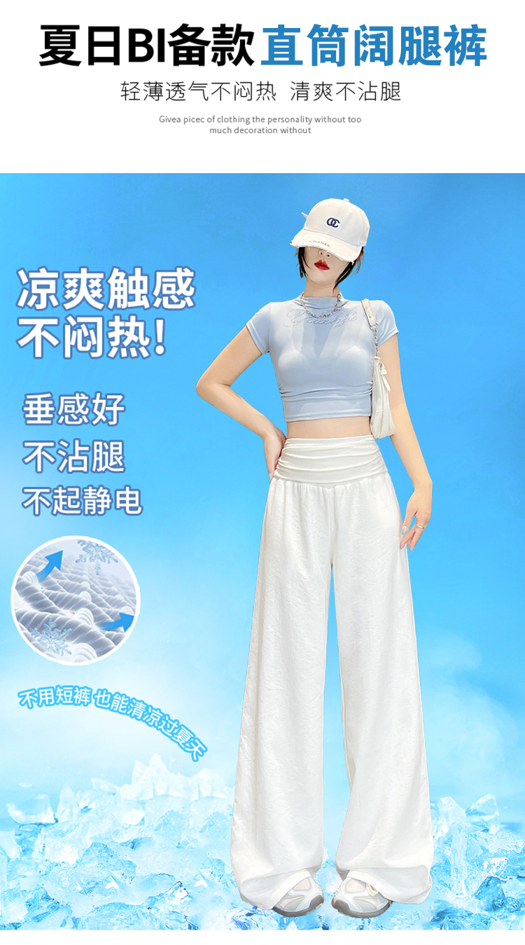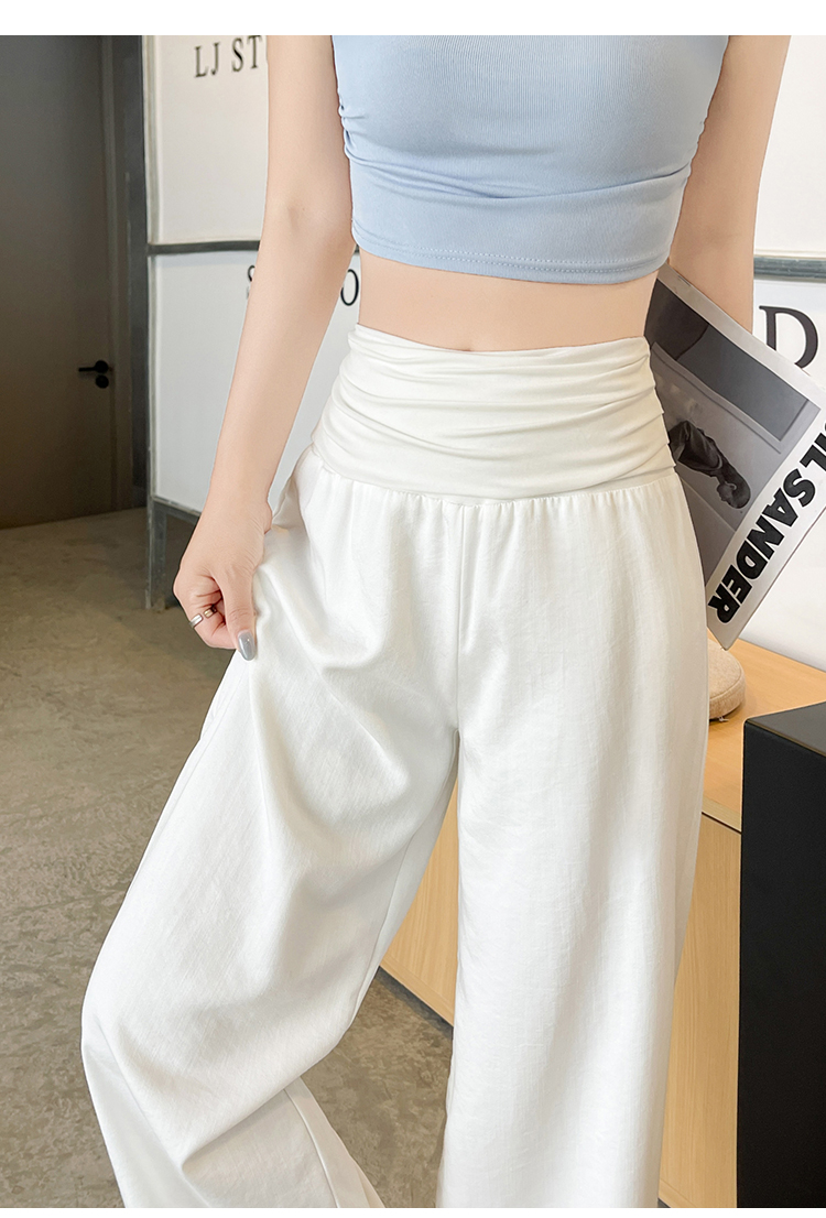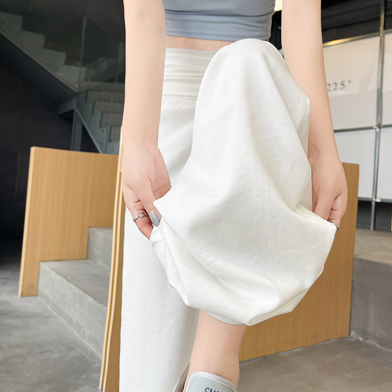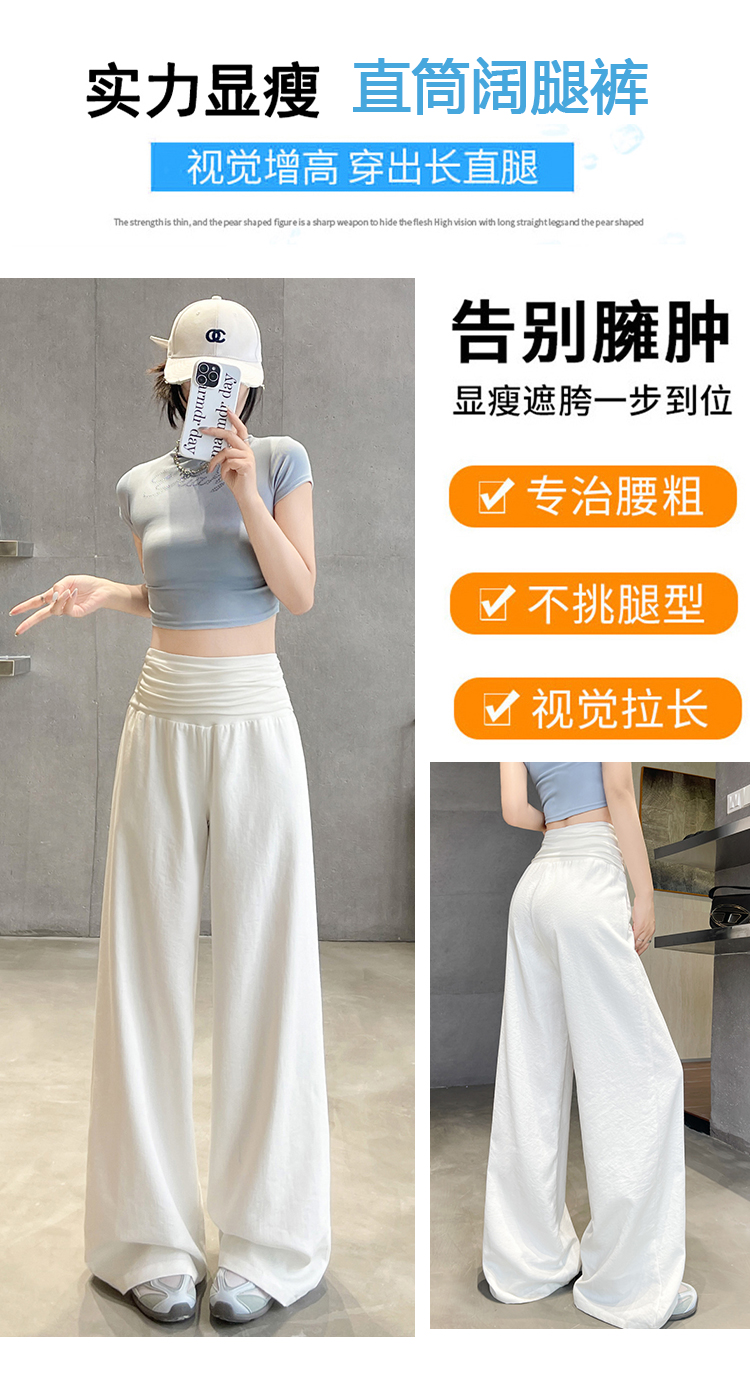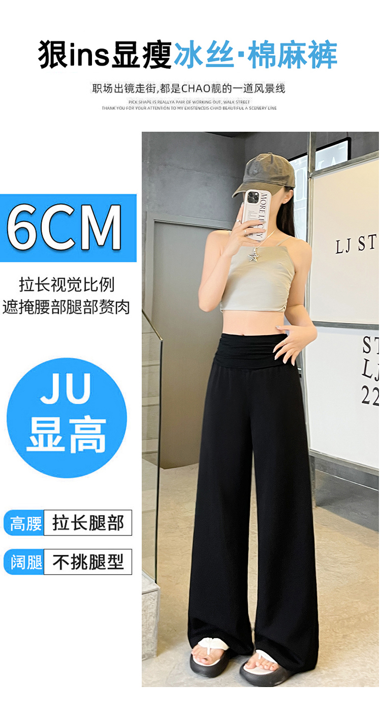 RY3755# 实拍白色亚麻天丝棉阔腿裤女夏季薄款度假风垂感老钱风直筒休闲裤