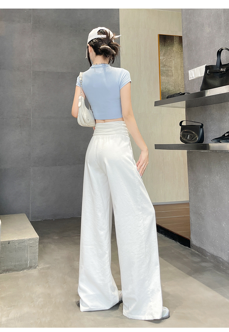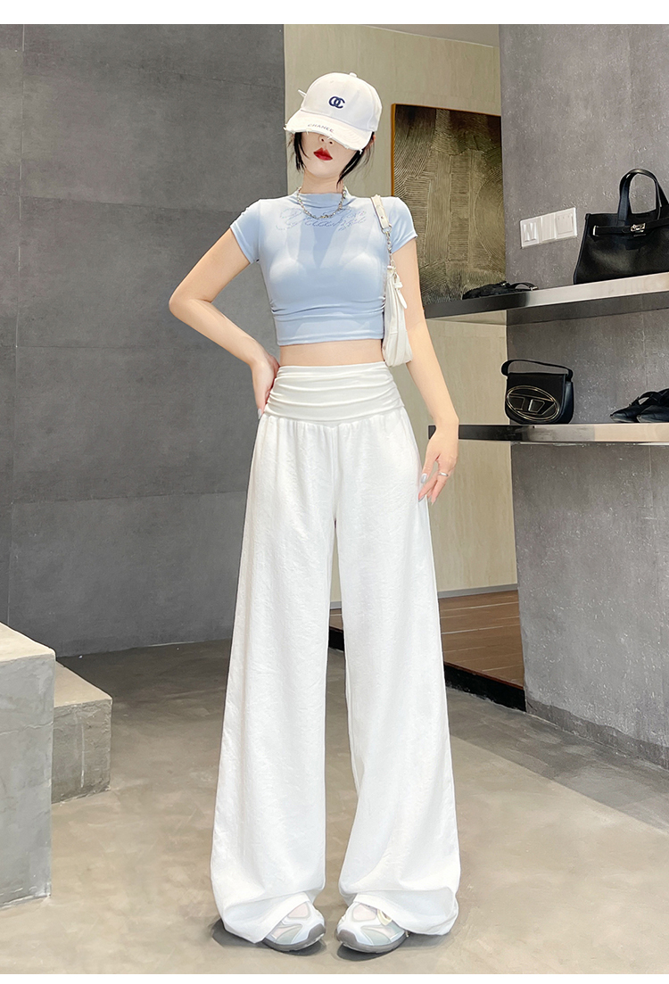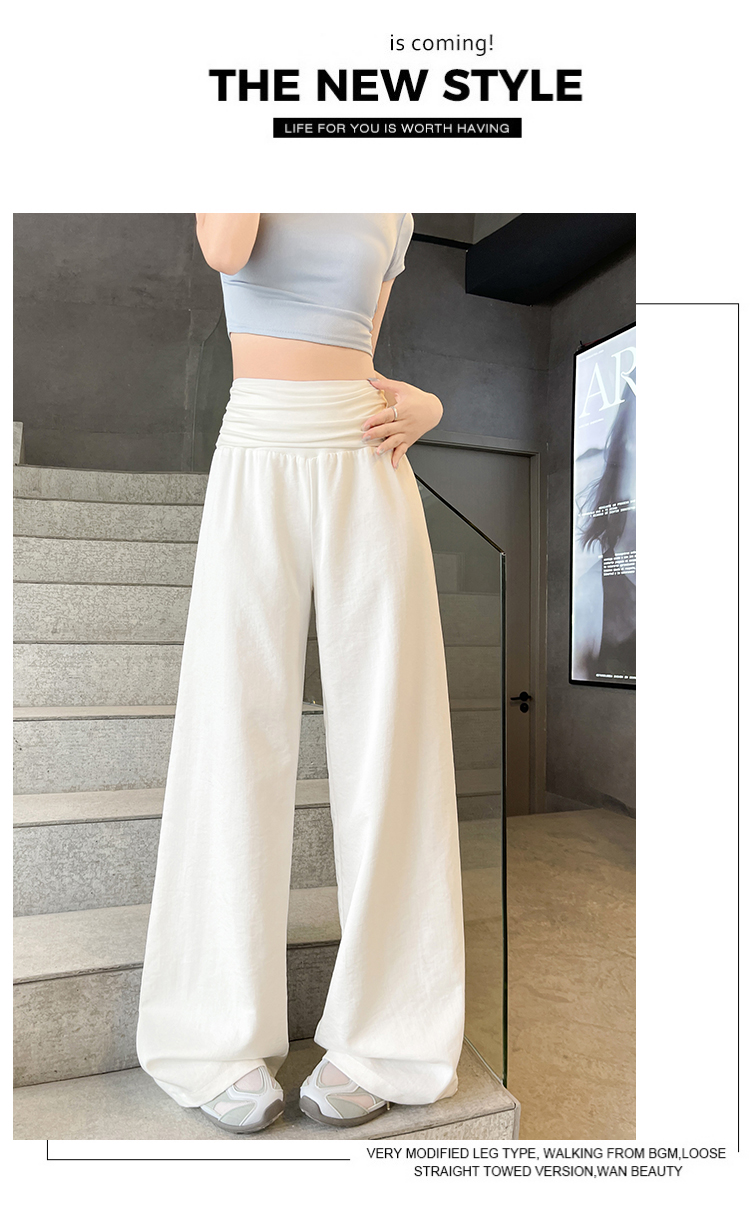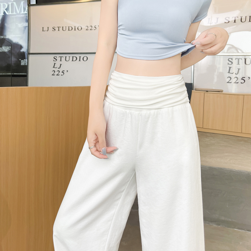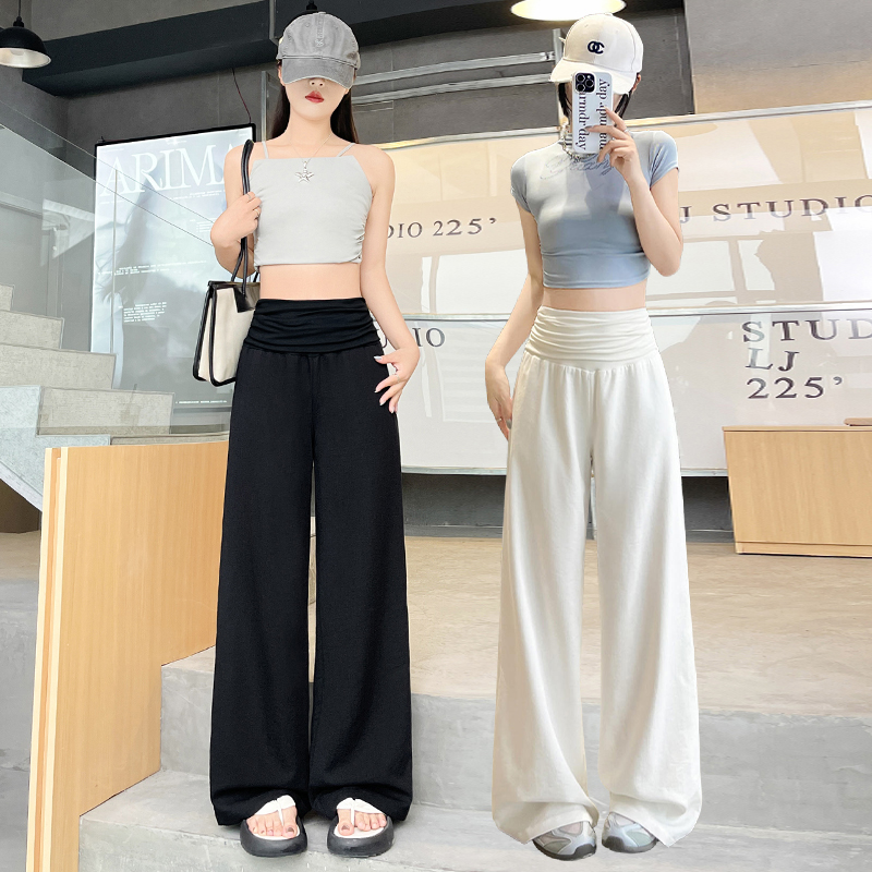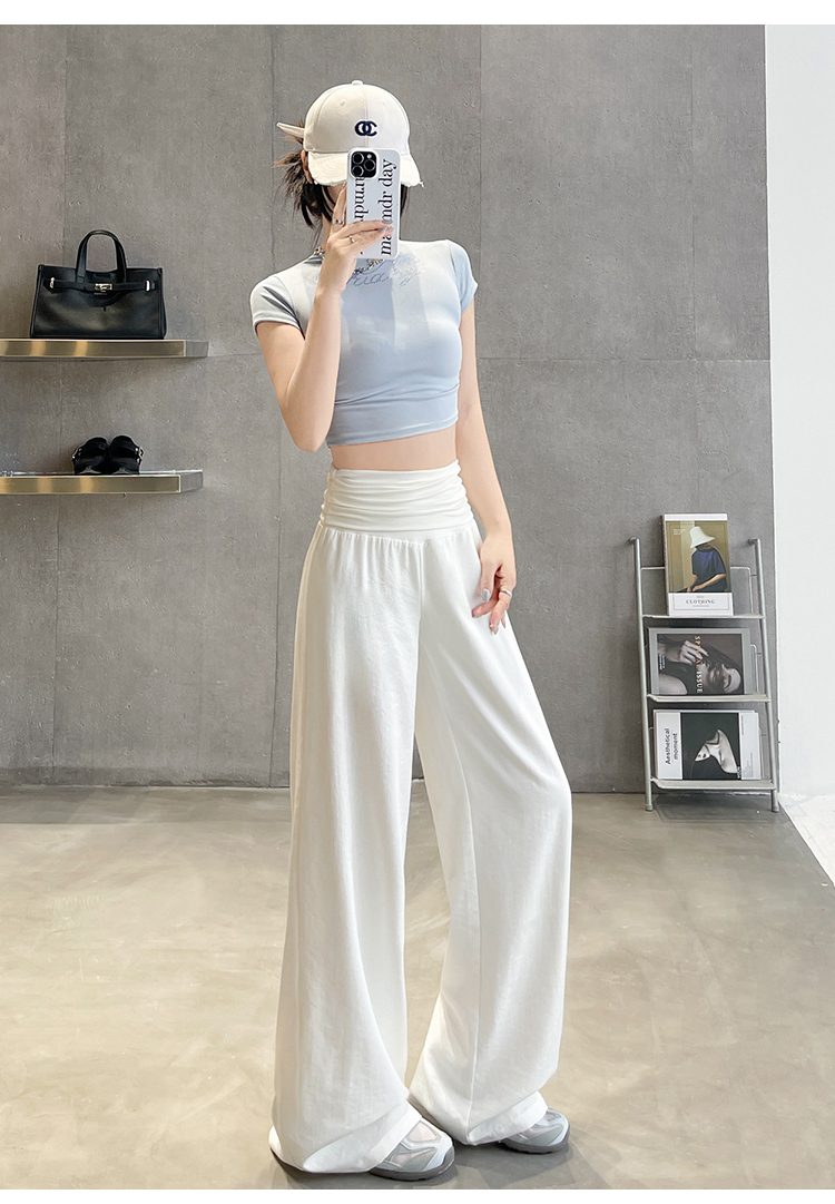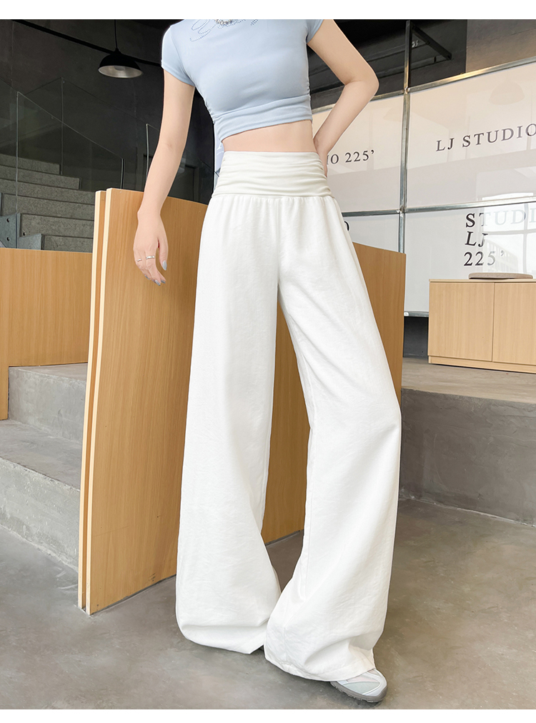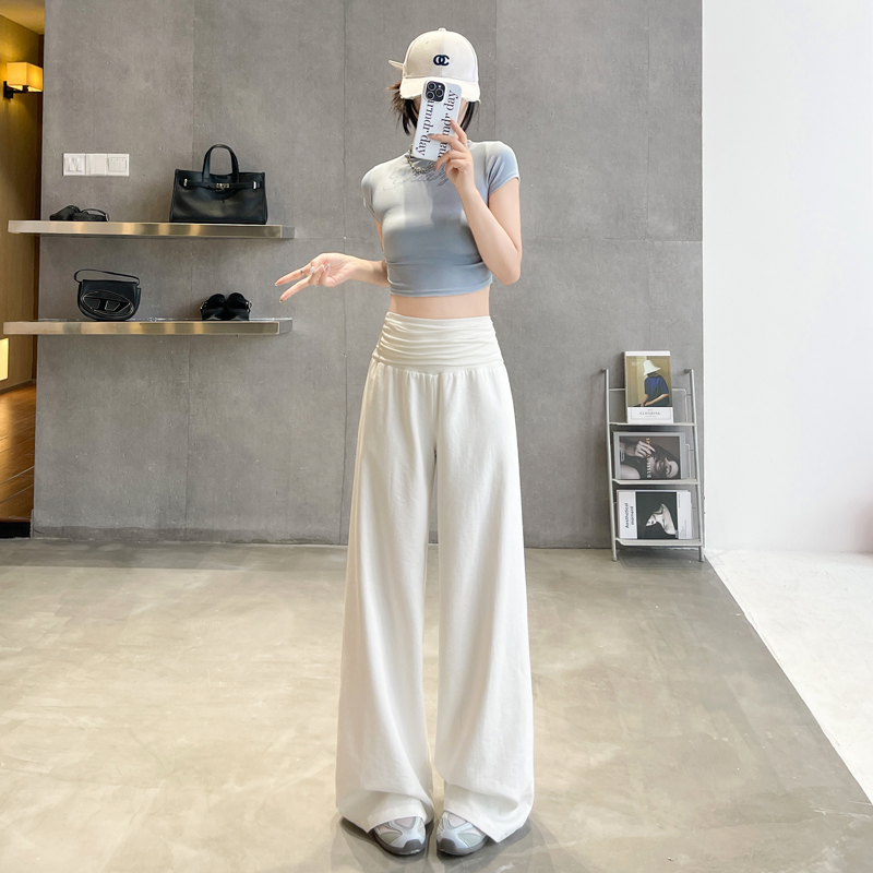 RY3755# 实拍白色亚麻天丝棉阔腿裤女夏季薄款度假风垂感老钱风直筒休闲裤