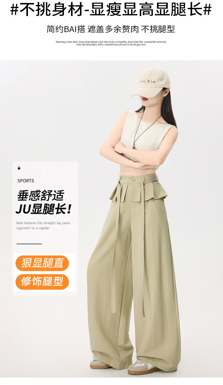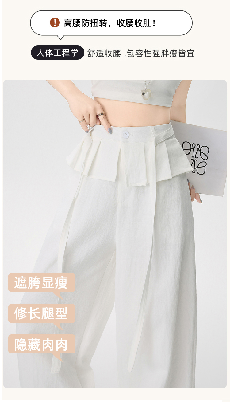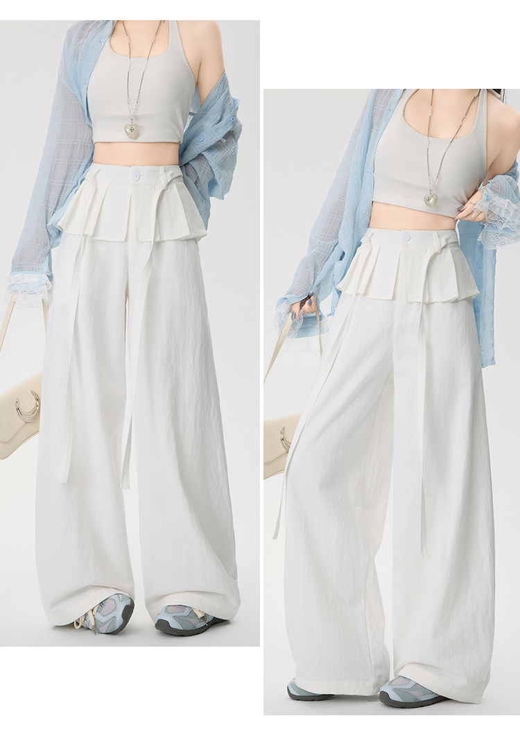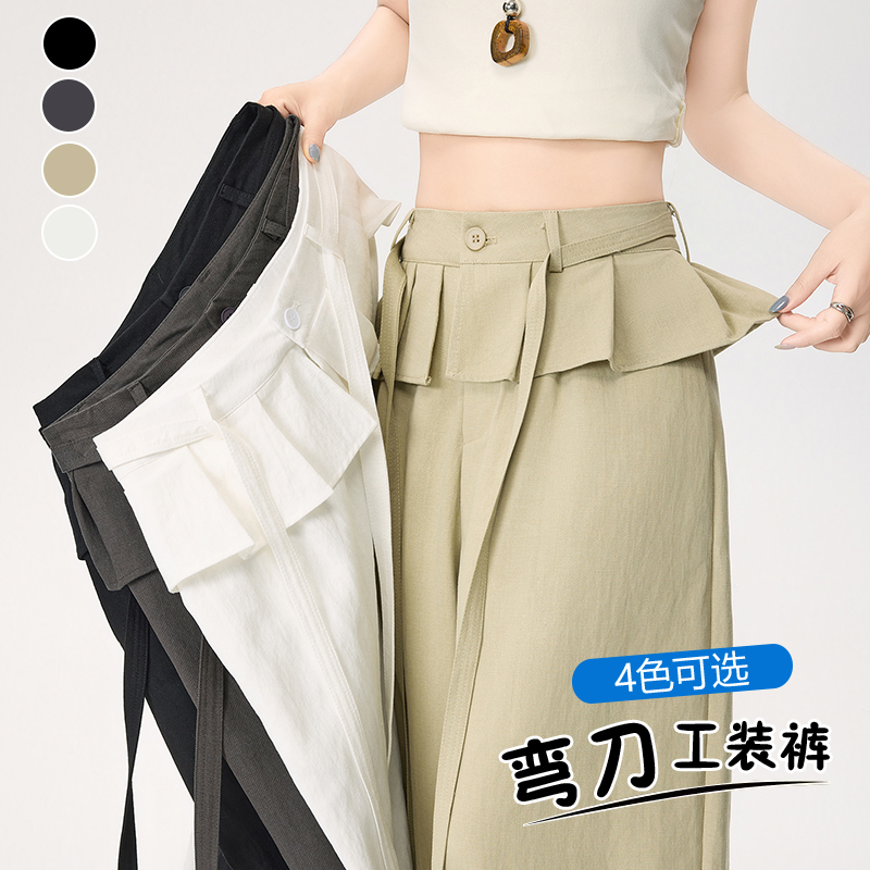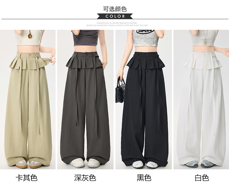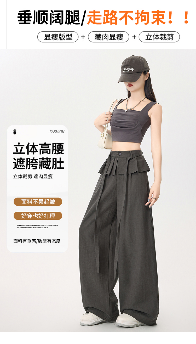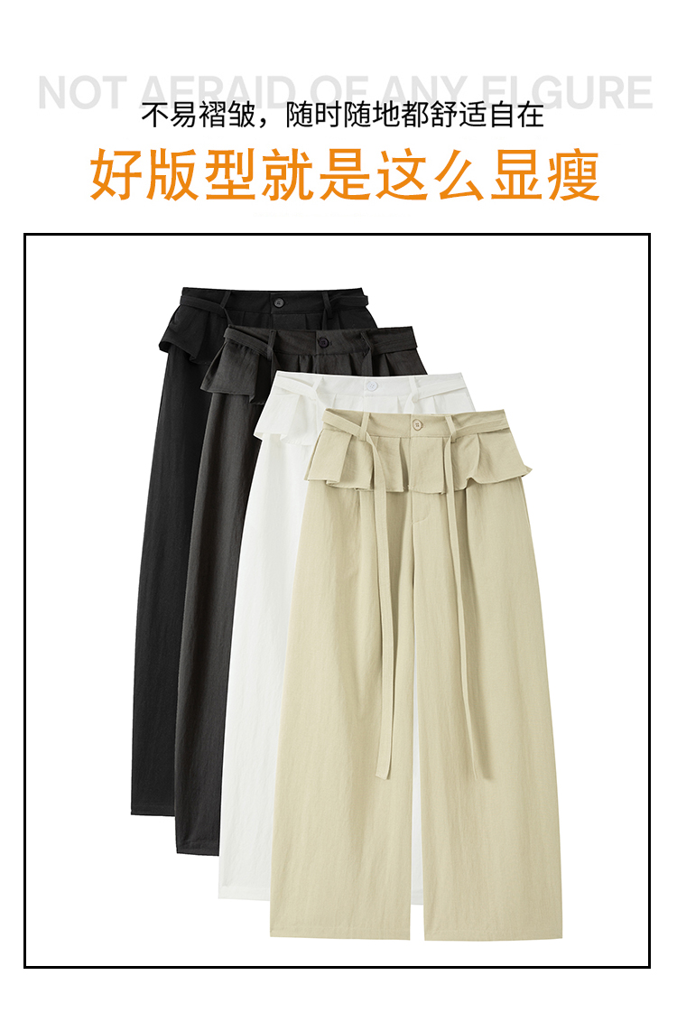 RY3756# 实拍假两件拼接阔腿裤女2026春夏新款设计感气质百搭棉麻休闲长裤