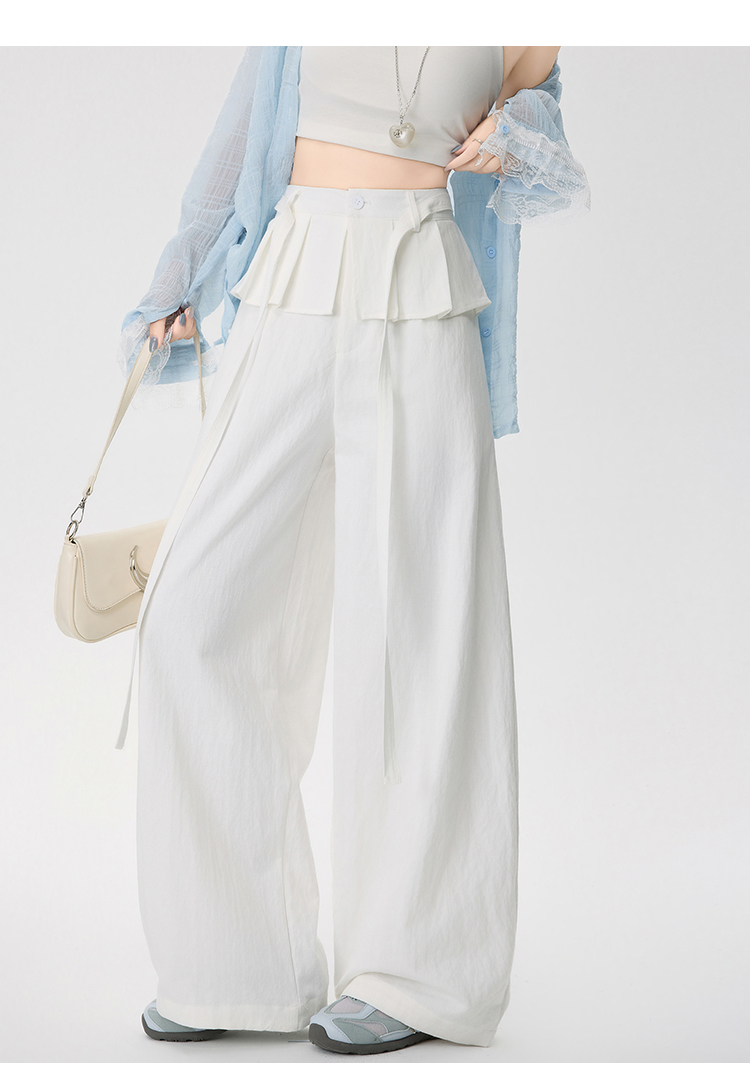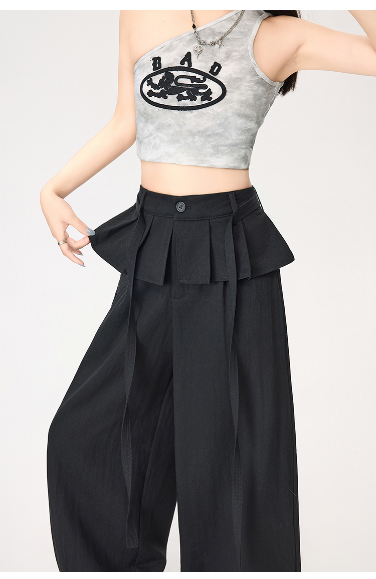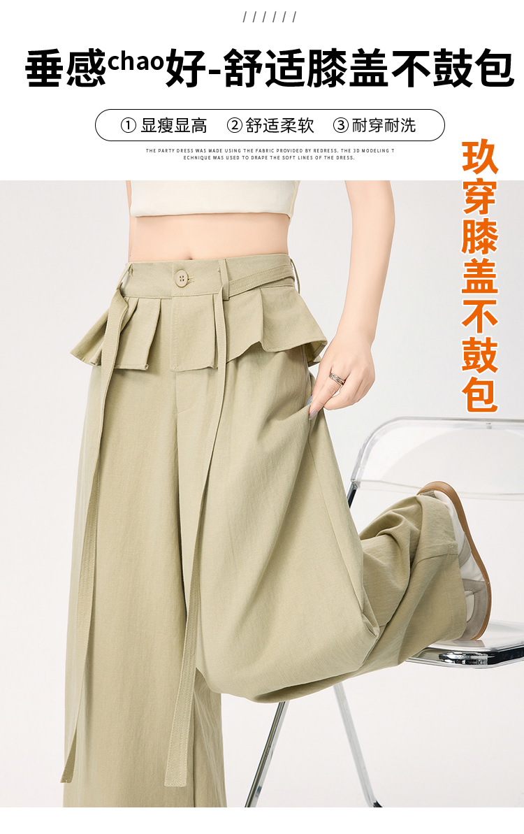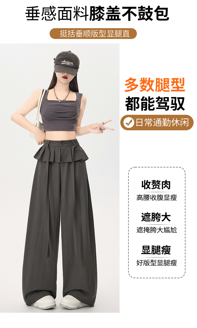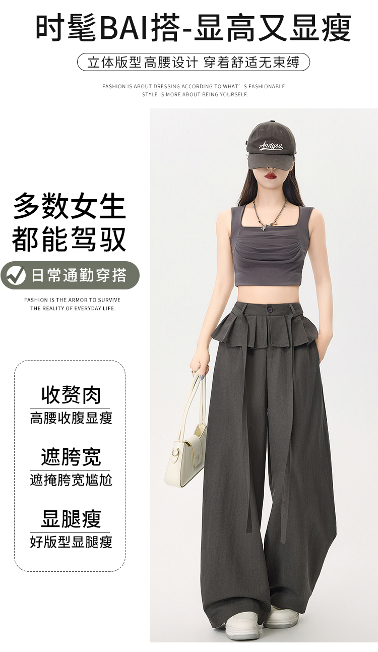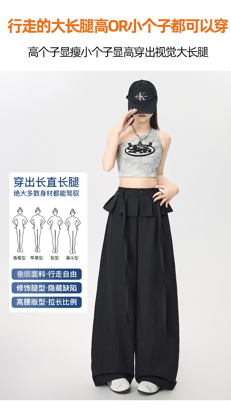 RY3756# 实拍假两件拼接阔腿裤女2026春夏新款设计感气质百搭棉麻休闲长裤