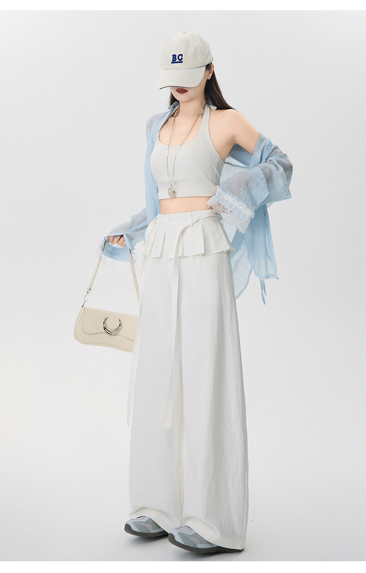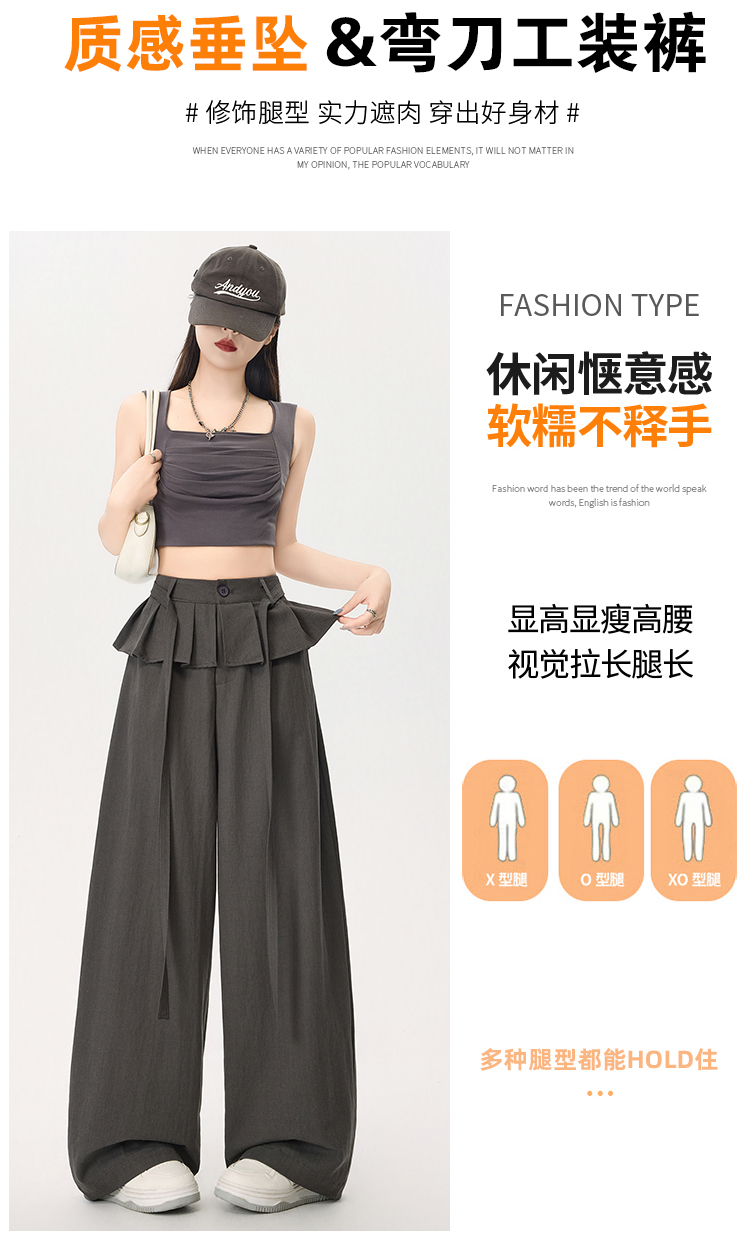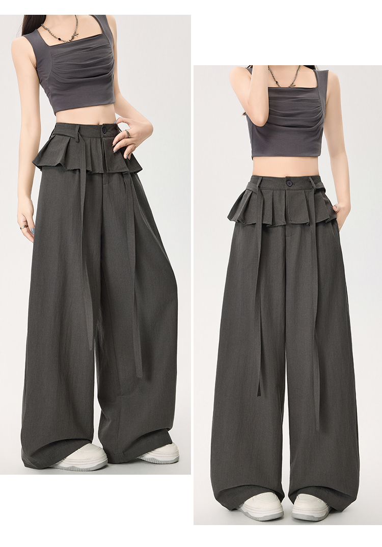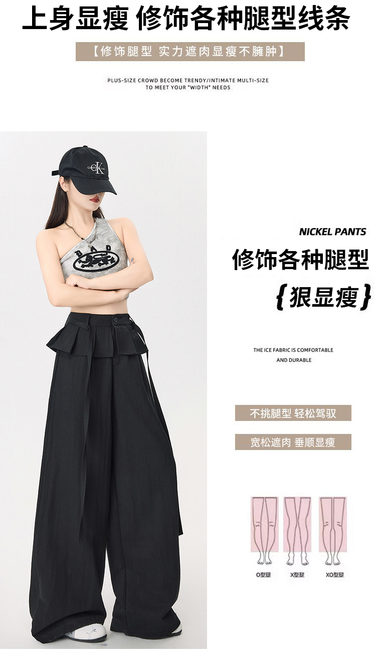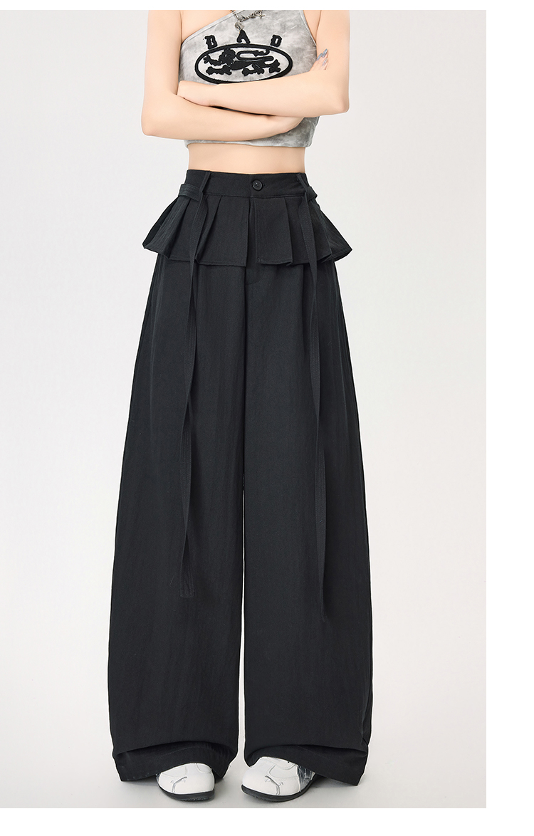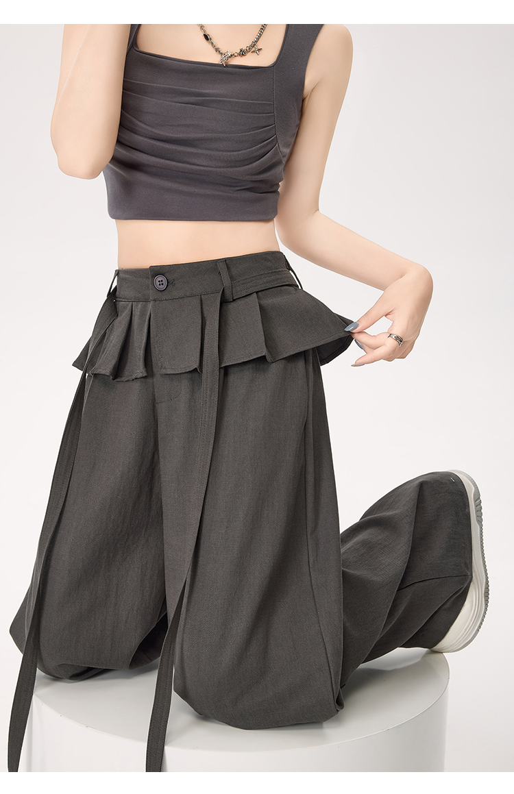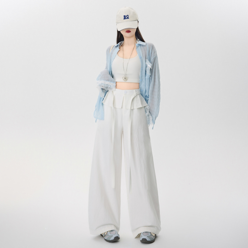 RY3756# 实拍假两件拼接阔腿裤女2026春夏新款设计感气质百搭棉麻休闲长裤