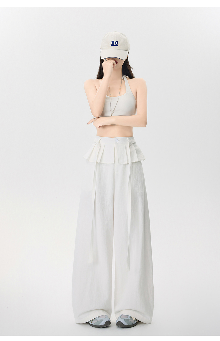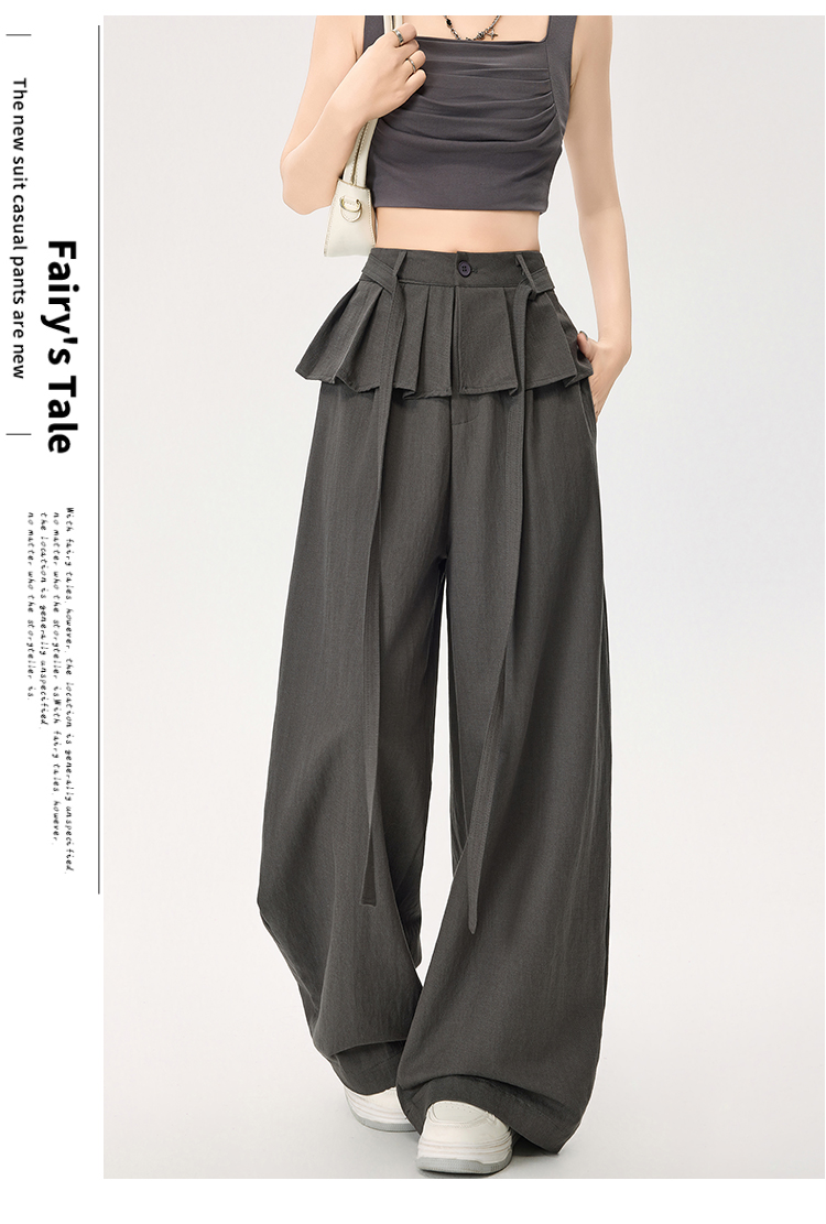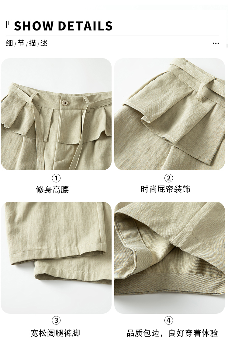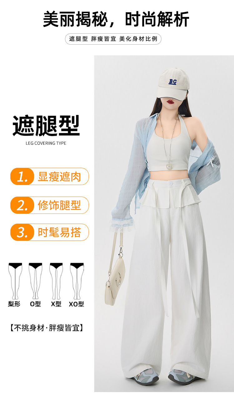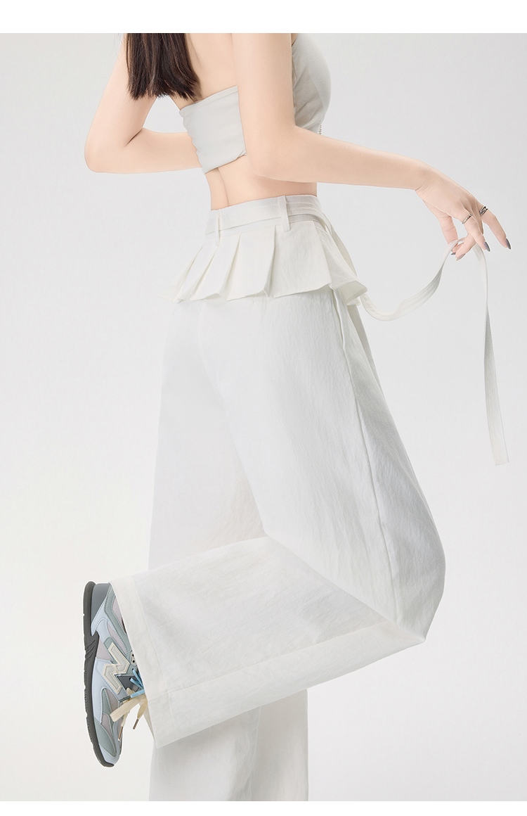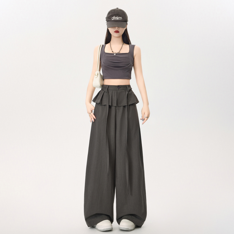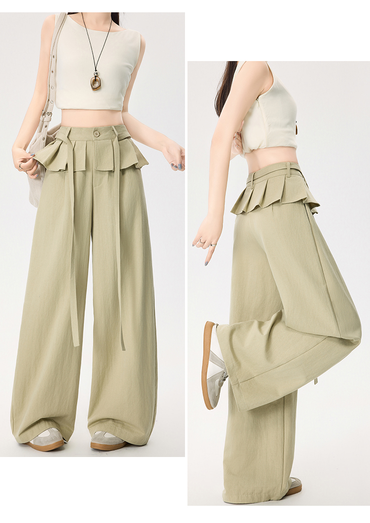 RY3756# 实拍假两件拼接阔腿裤女2026春夏新款设计感气质百搭棉麻休闲长裤