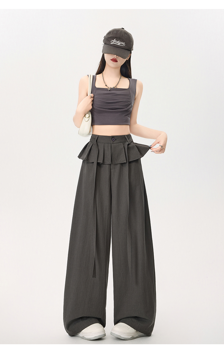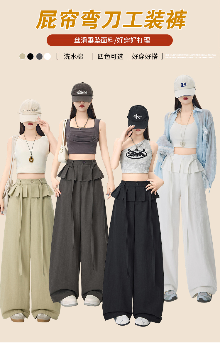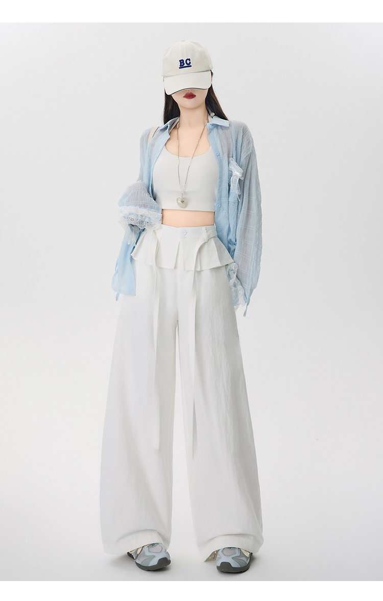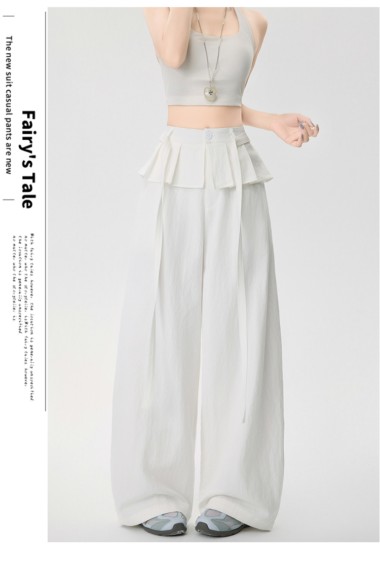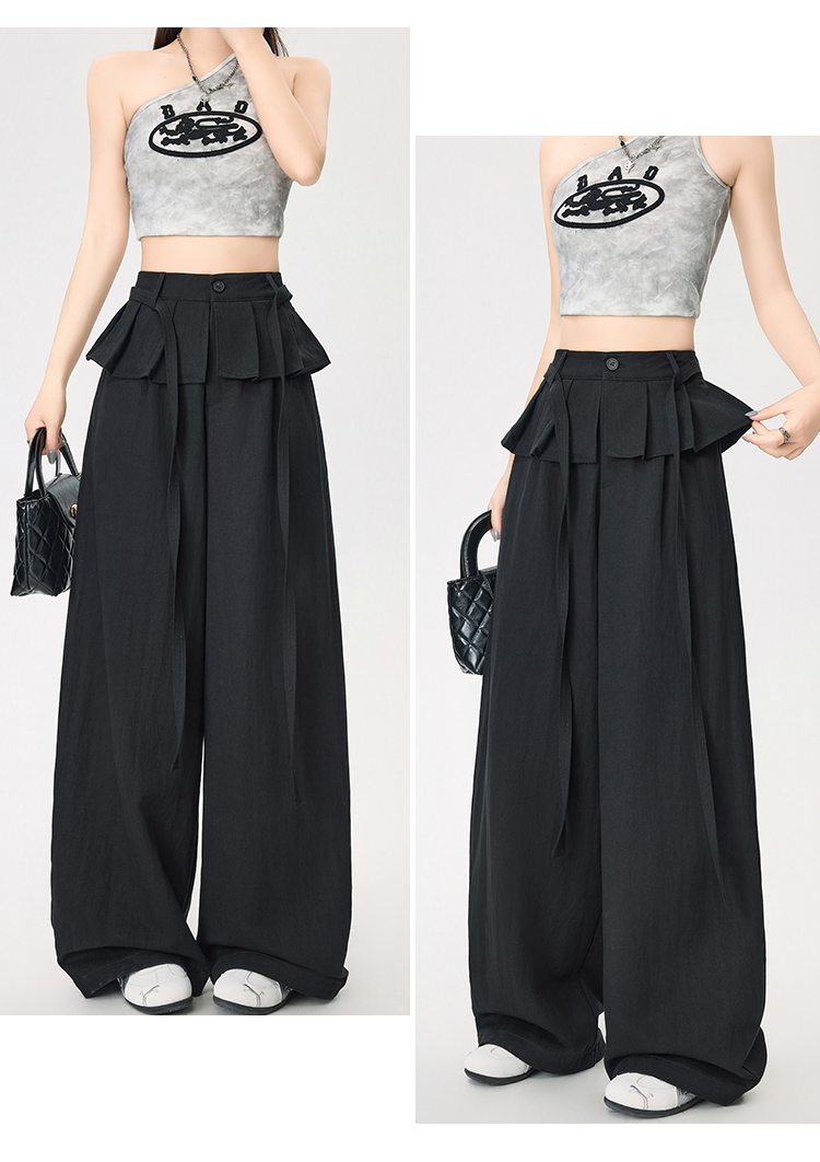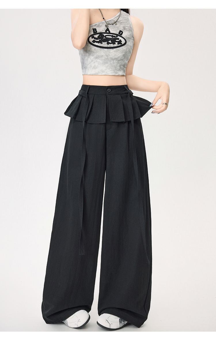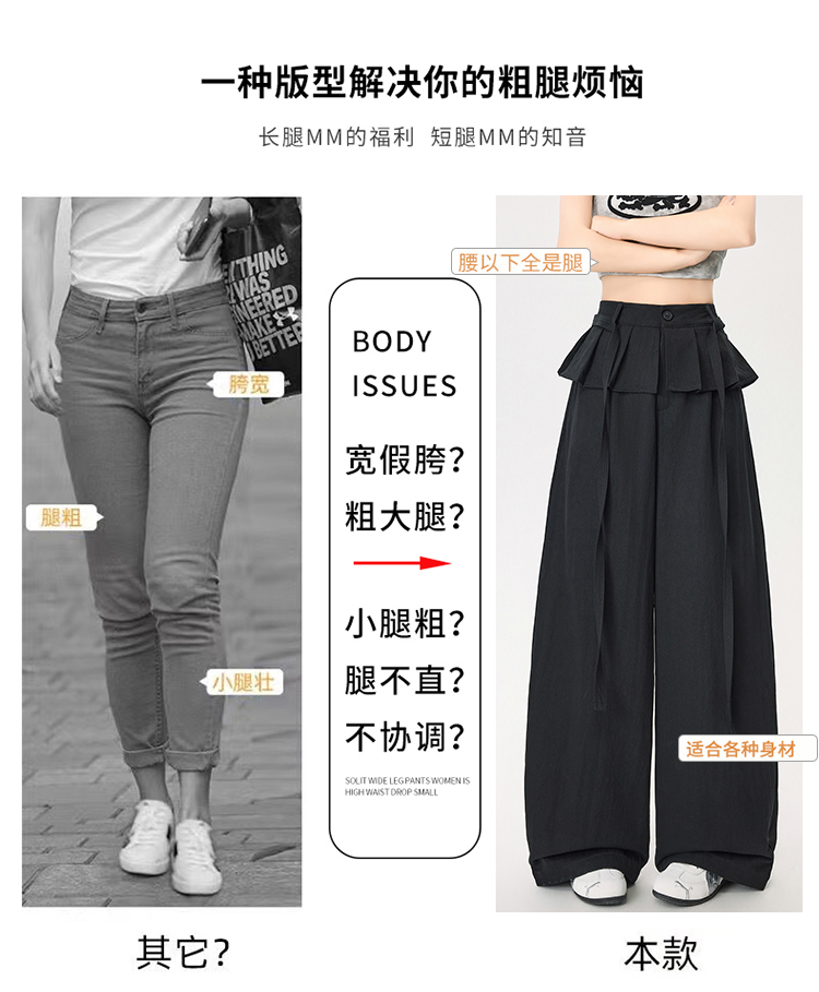 RY3756# 实拍假两件拼接阔腿裤女2026春夏新款设计感气质百搭棉麻休闲长裤
