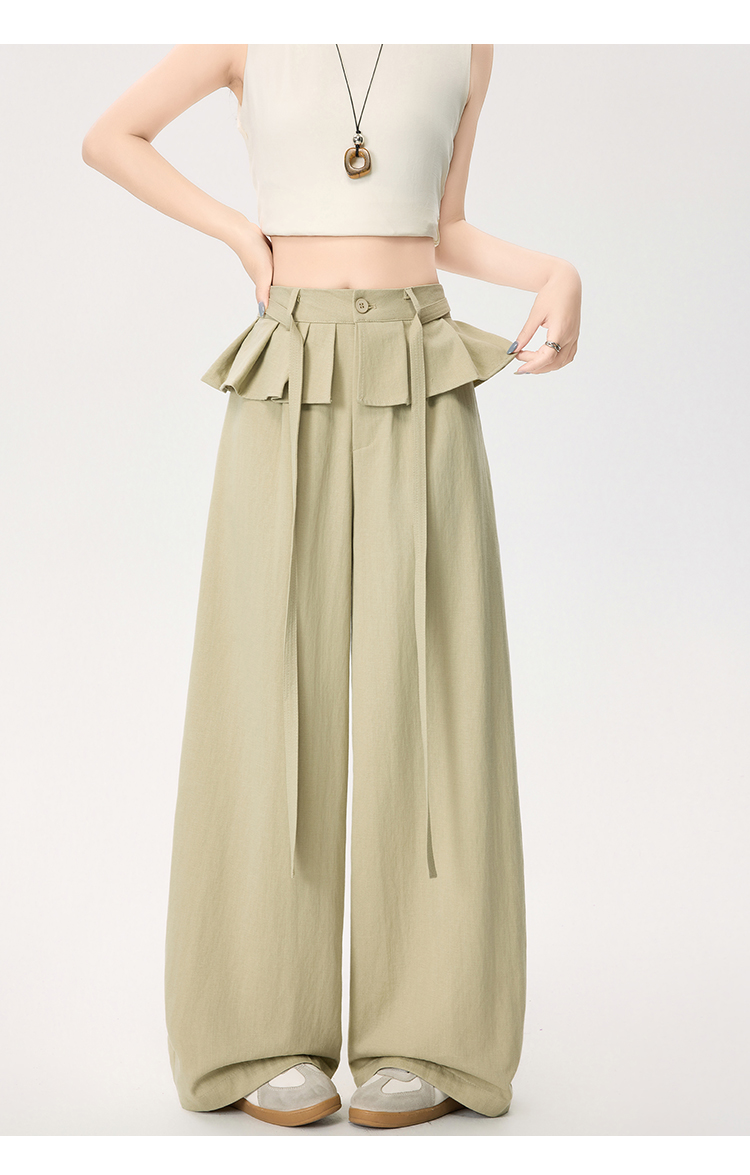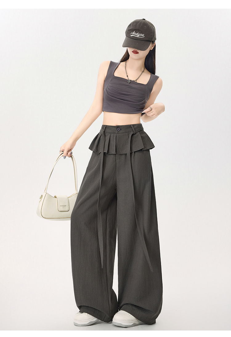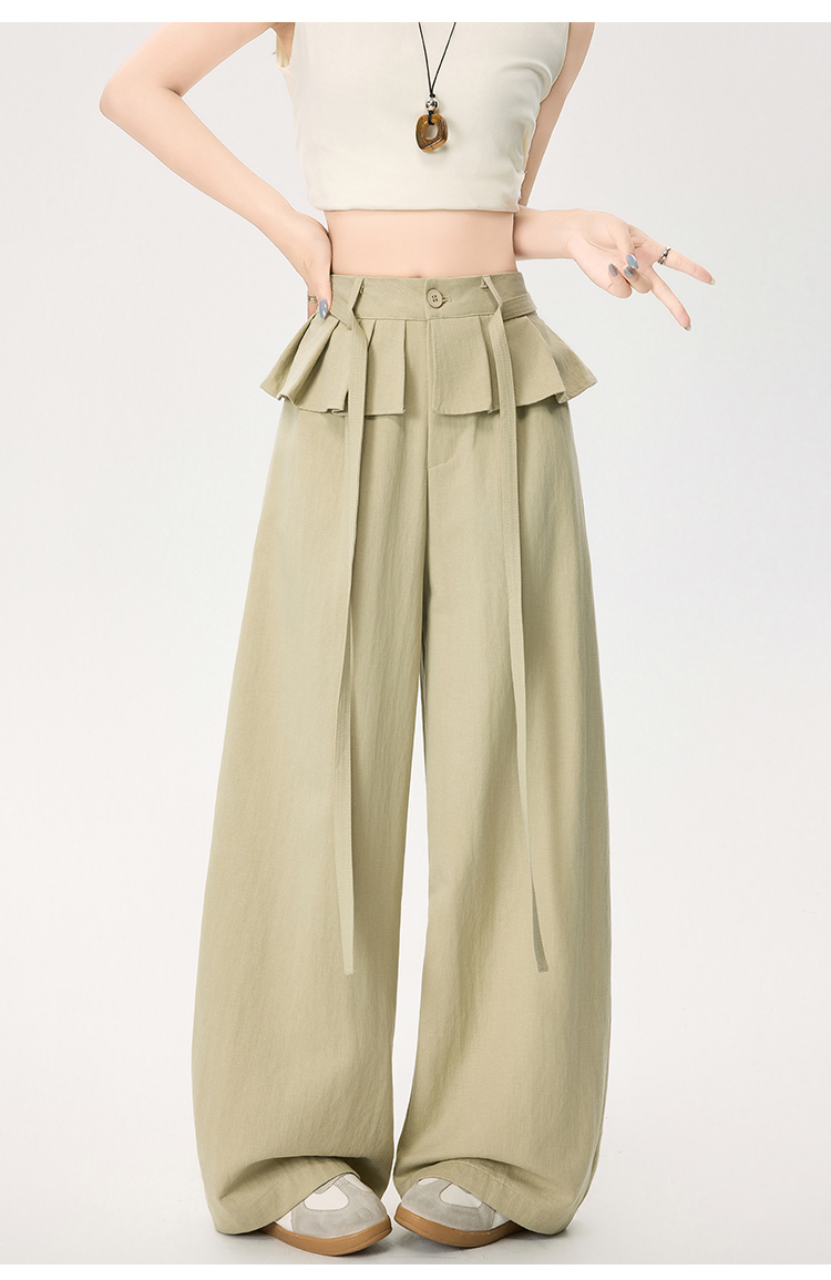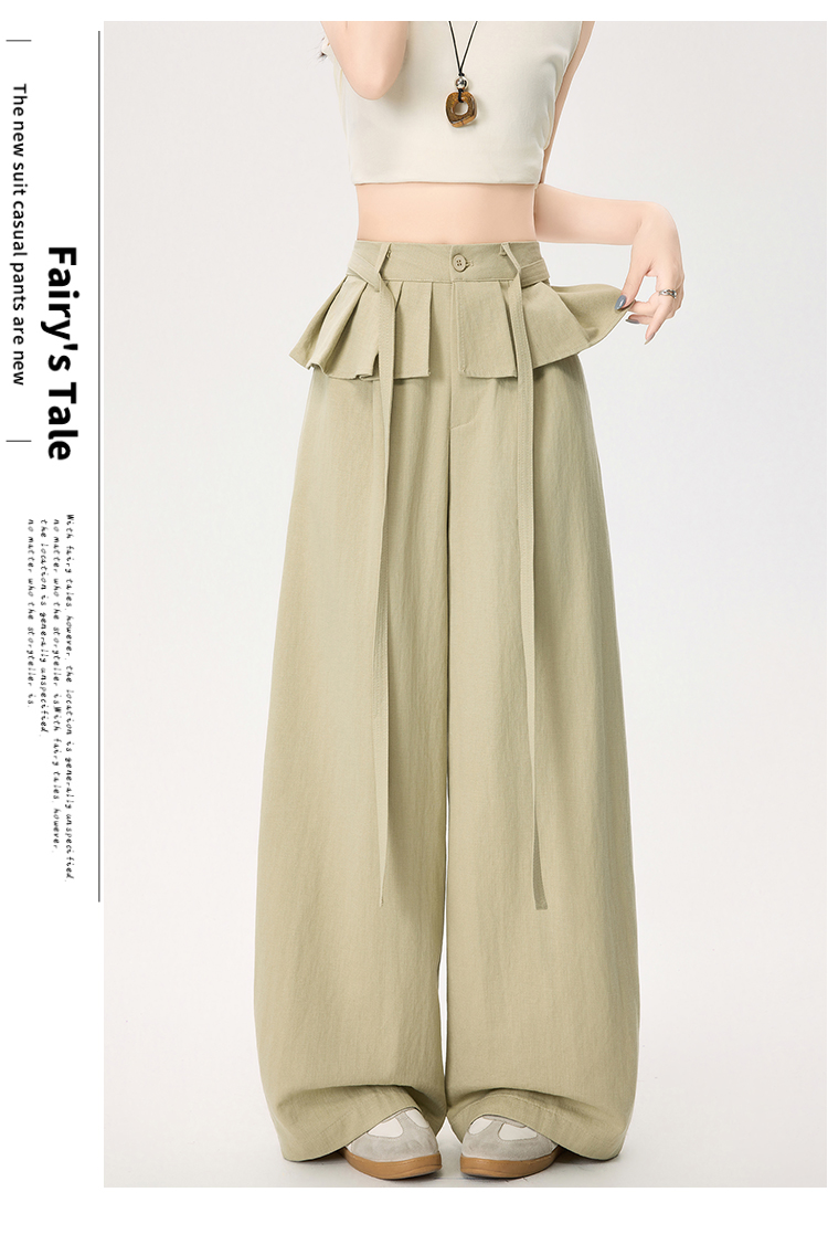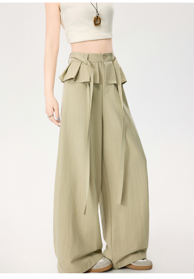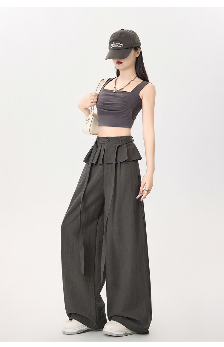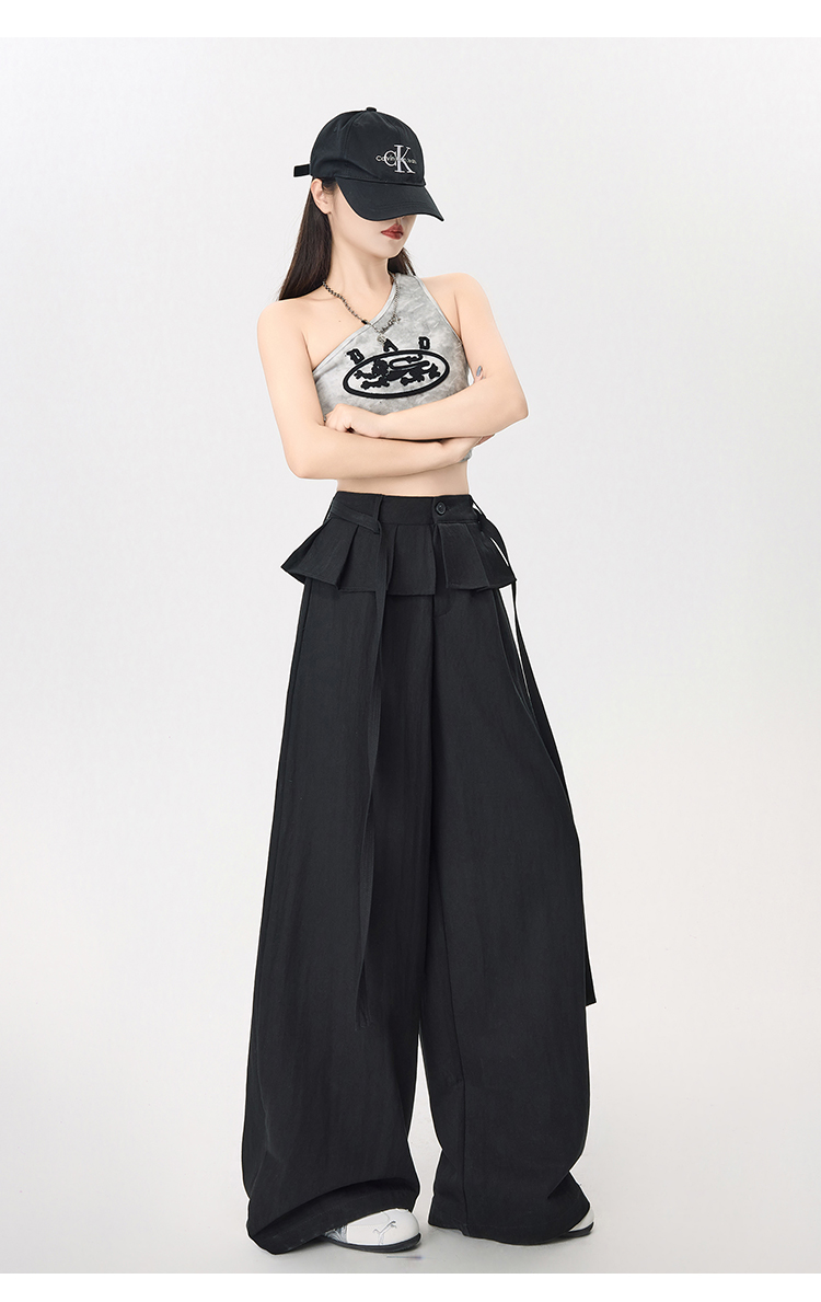 RY3756# 实拍假两件拼接阔腿裤女2026春夏新款设计感气质百搭棉麻休闲长裤