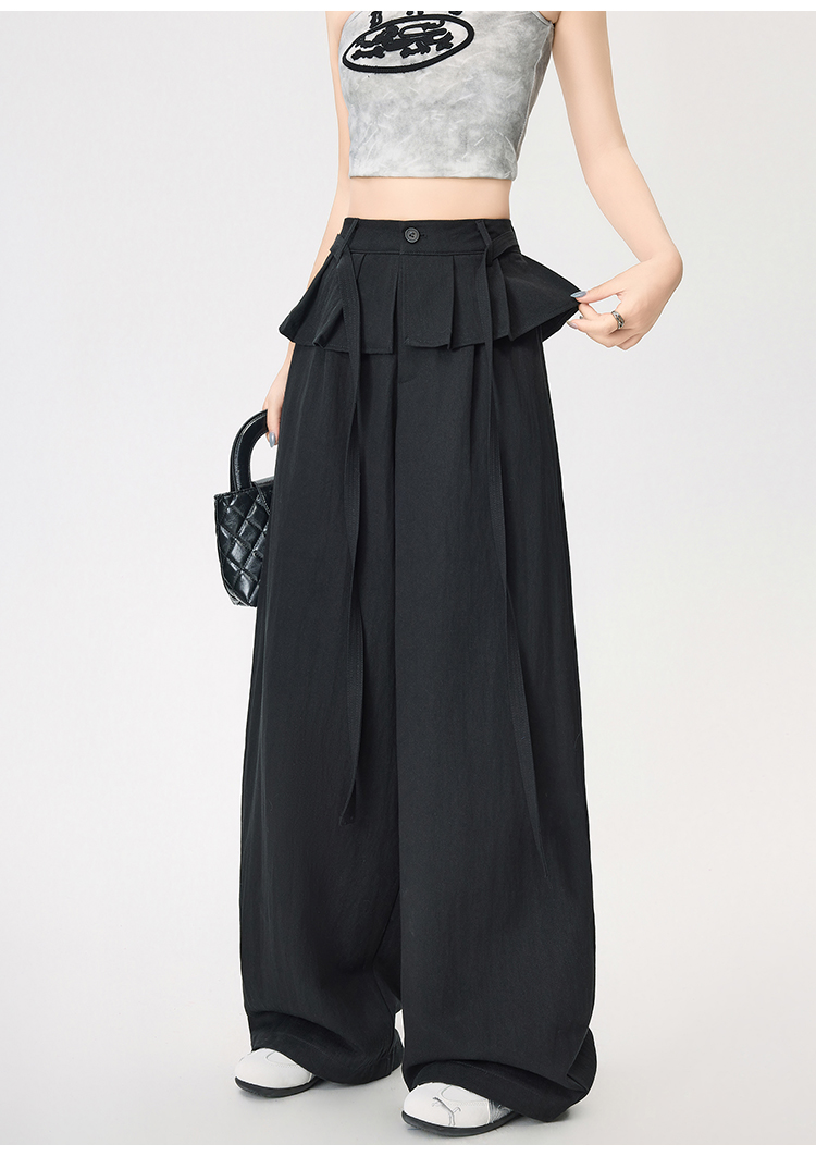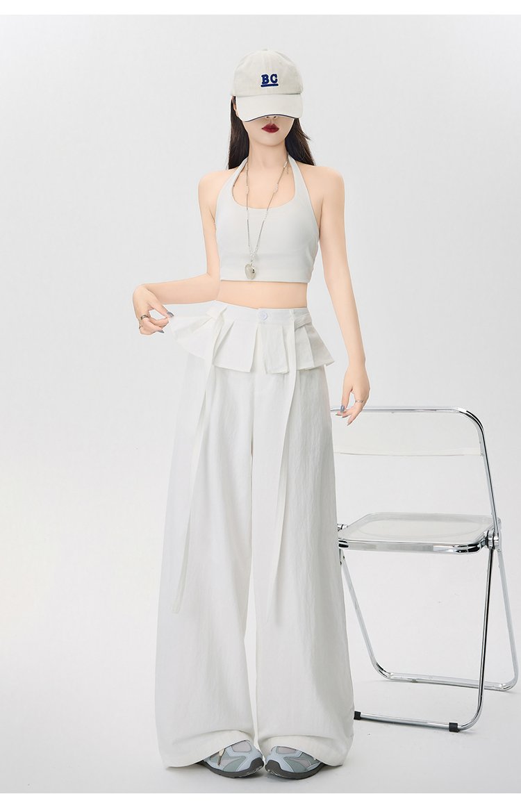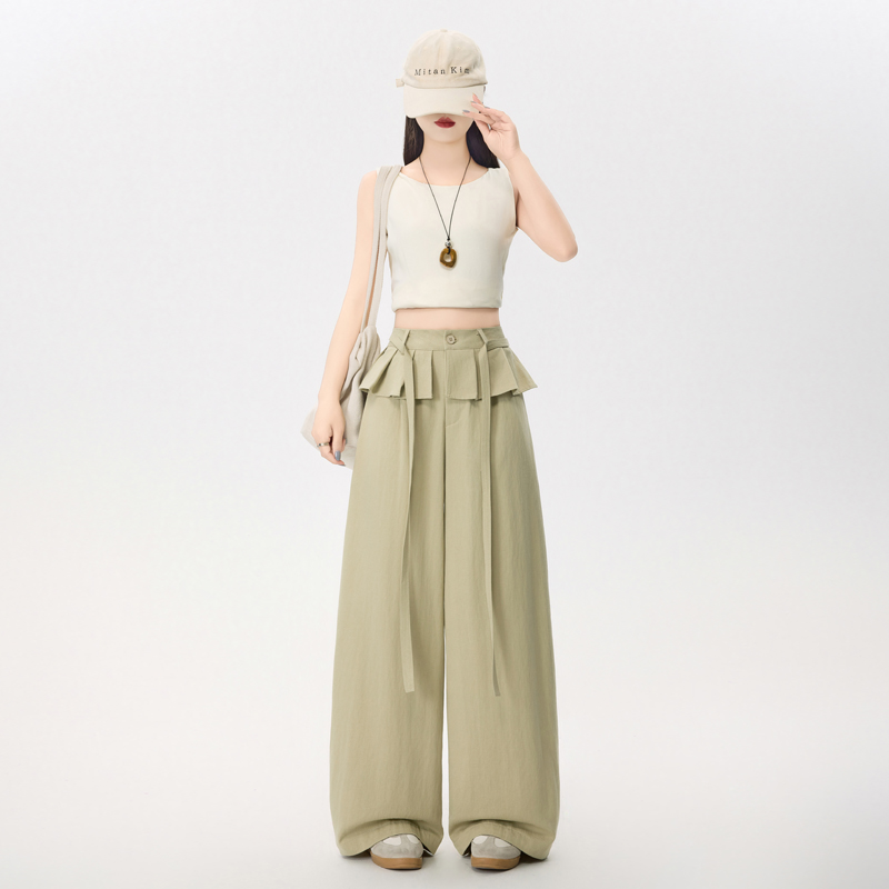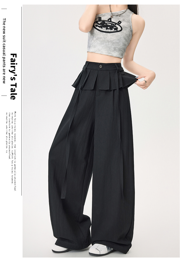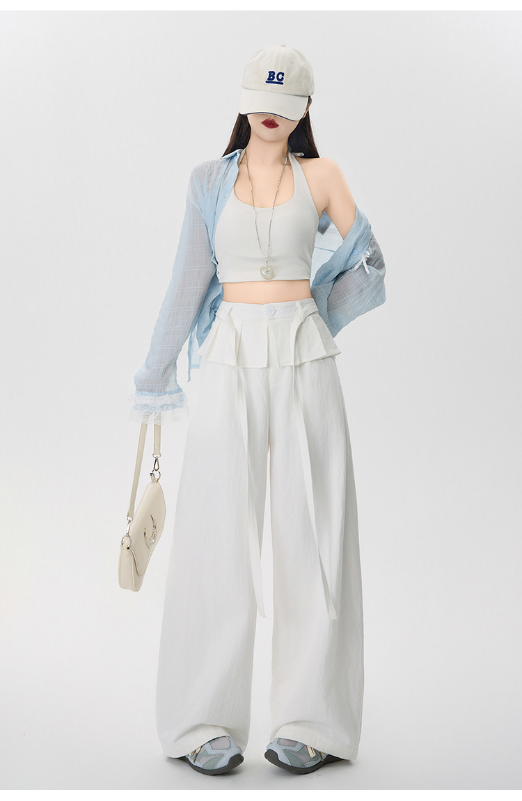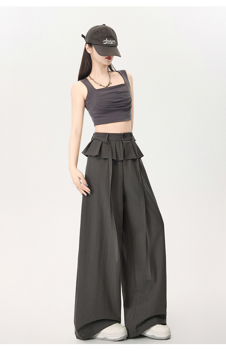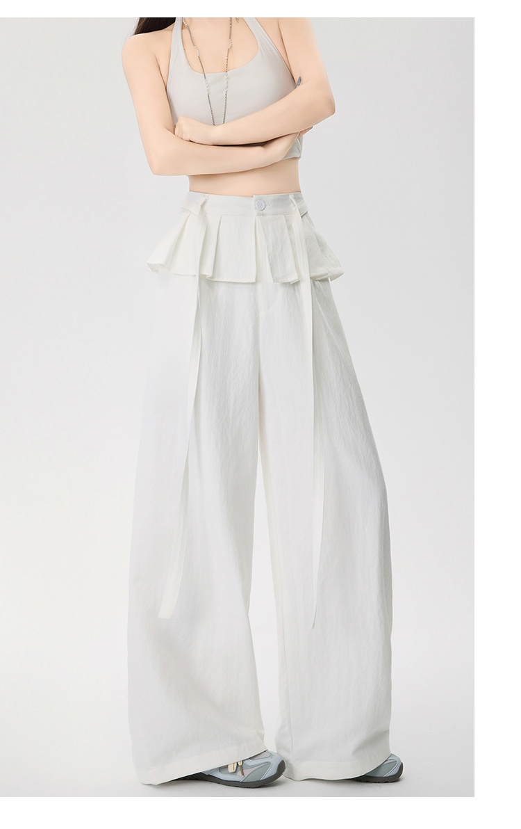 RY3756# 实拍假两件拼接阔腿裤女2026春夏新款设计感气质百搭棉麻休闲长裤