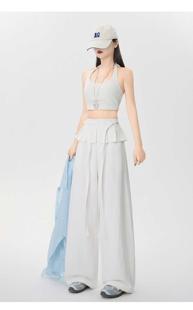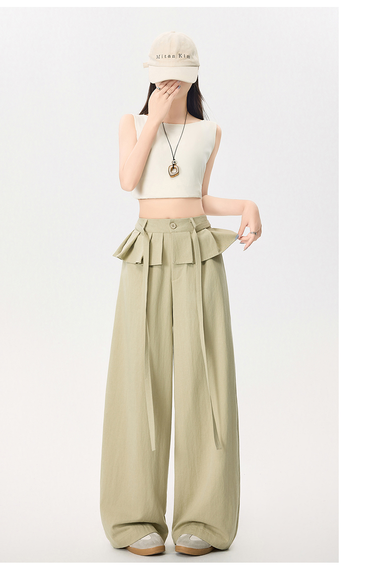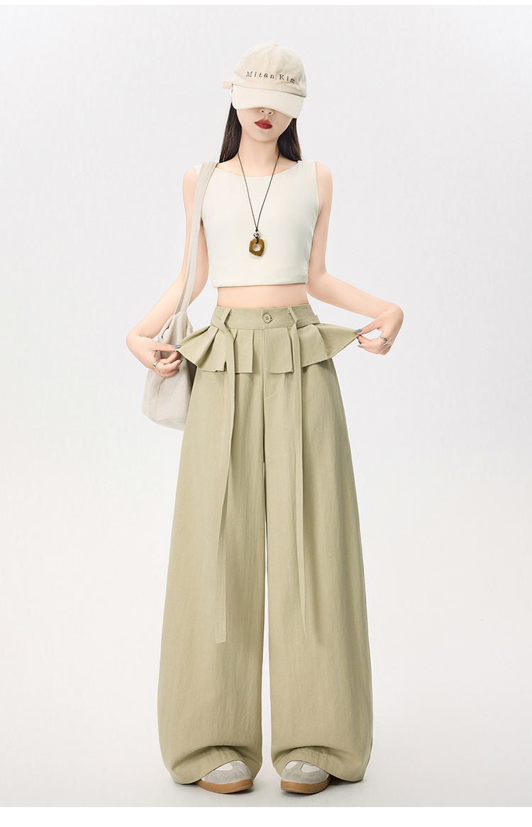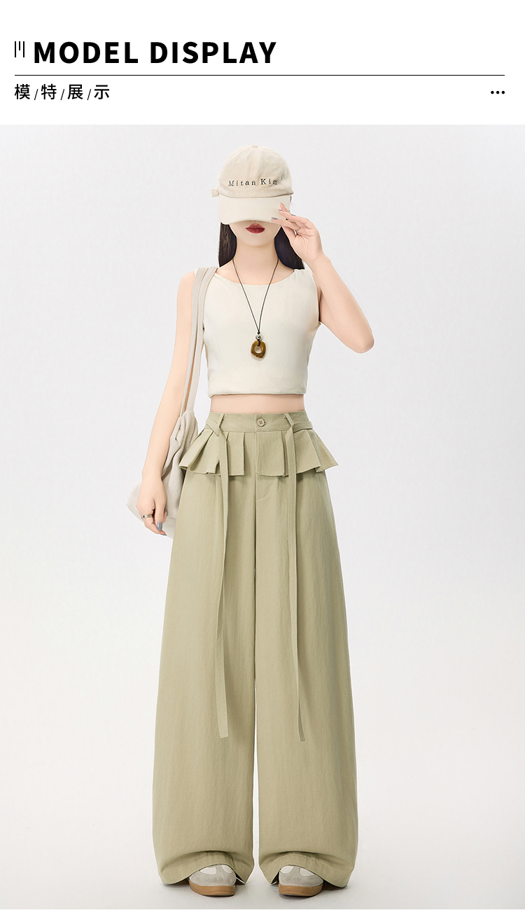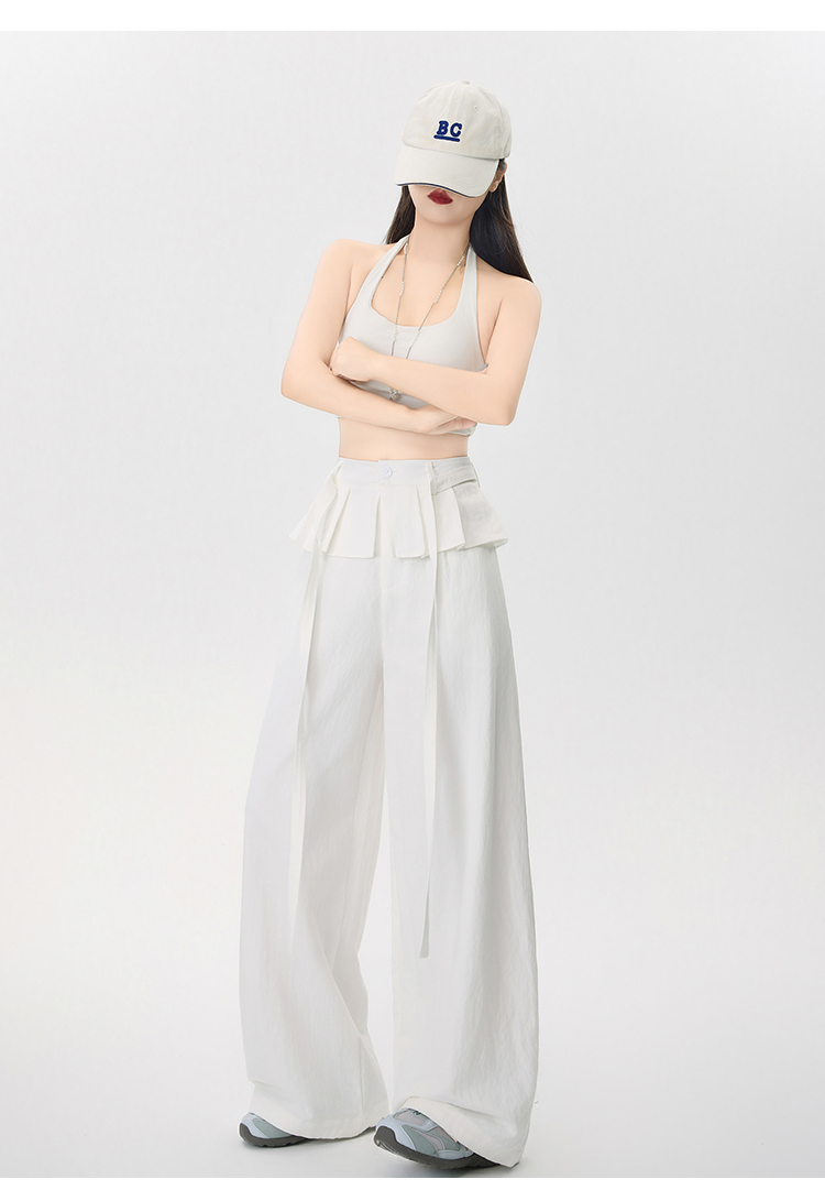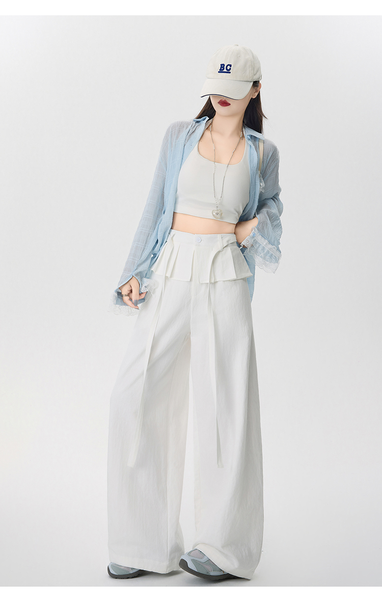 RY3756# 实拍假两件拼接阔腿裤女2026春夏新款设计感气质百搭棉麻休闲长裤