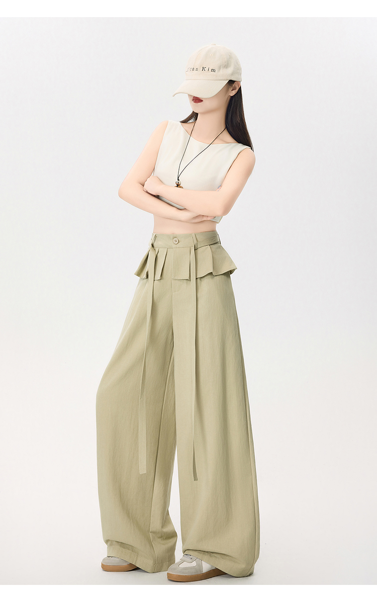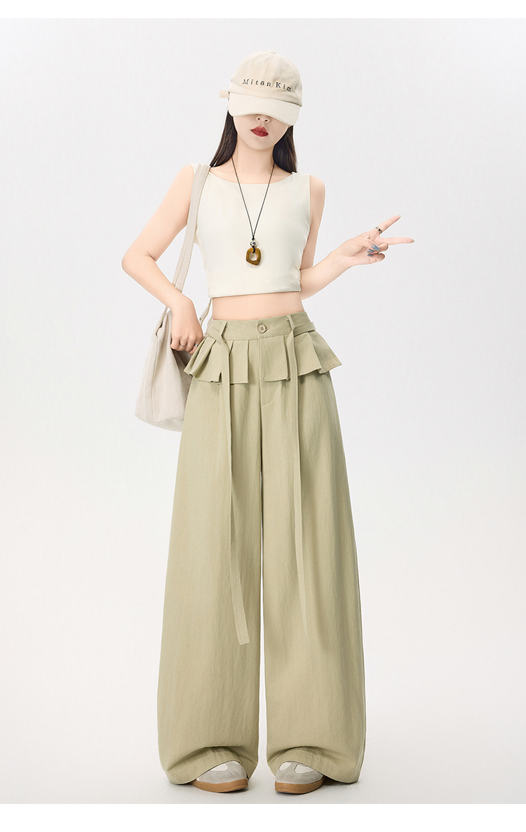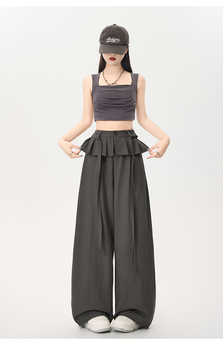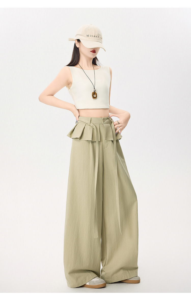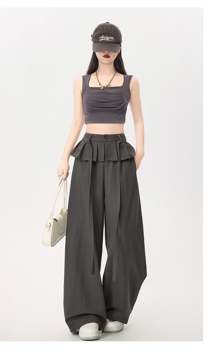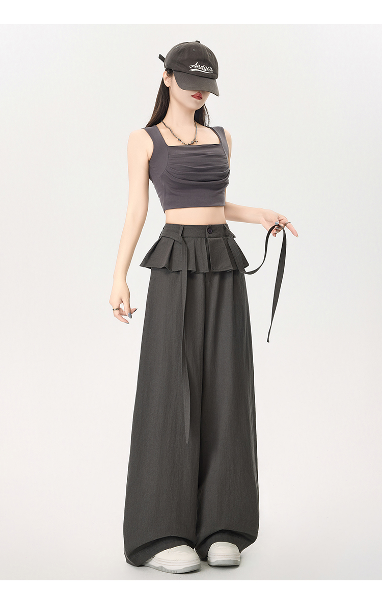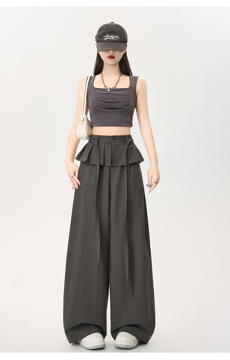 RY3756# 实拍假两件拼接阔腿裤女2026春夏新款设计感气质百搭棉麻休闲长裤