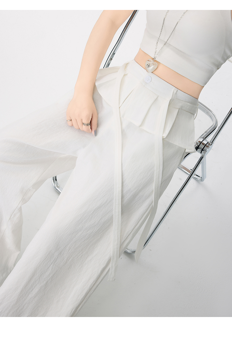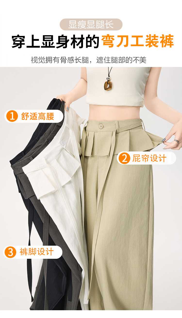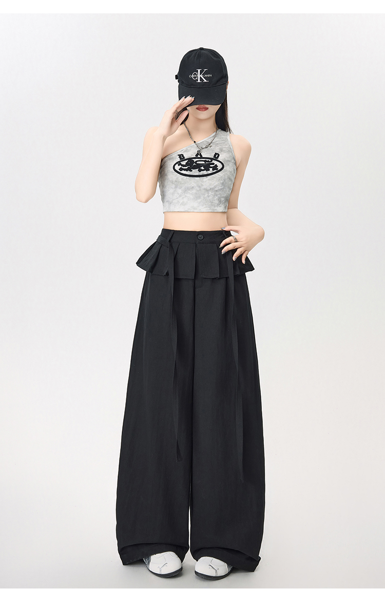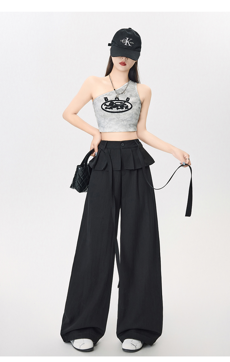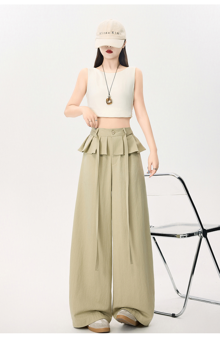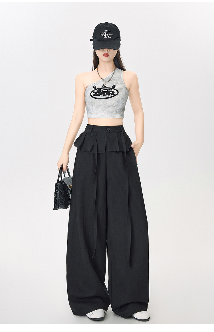 RY3756# 实拍假两件拼接阔腿裤女2026春夏新款设计感气质百搭棉麻休闲长裤