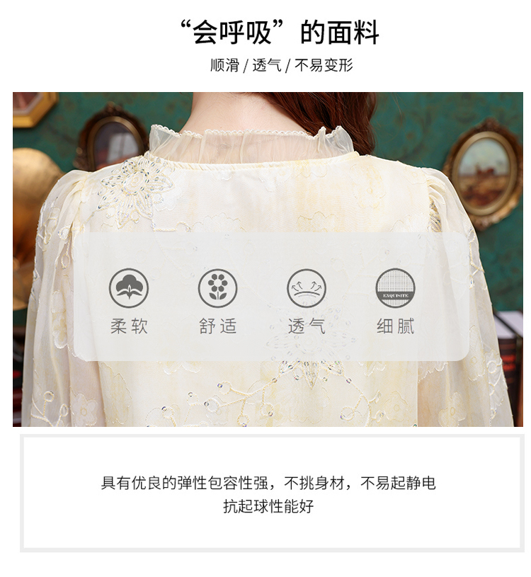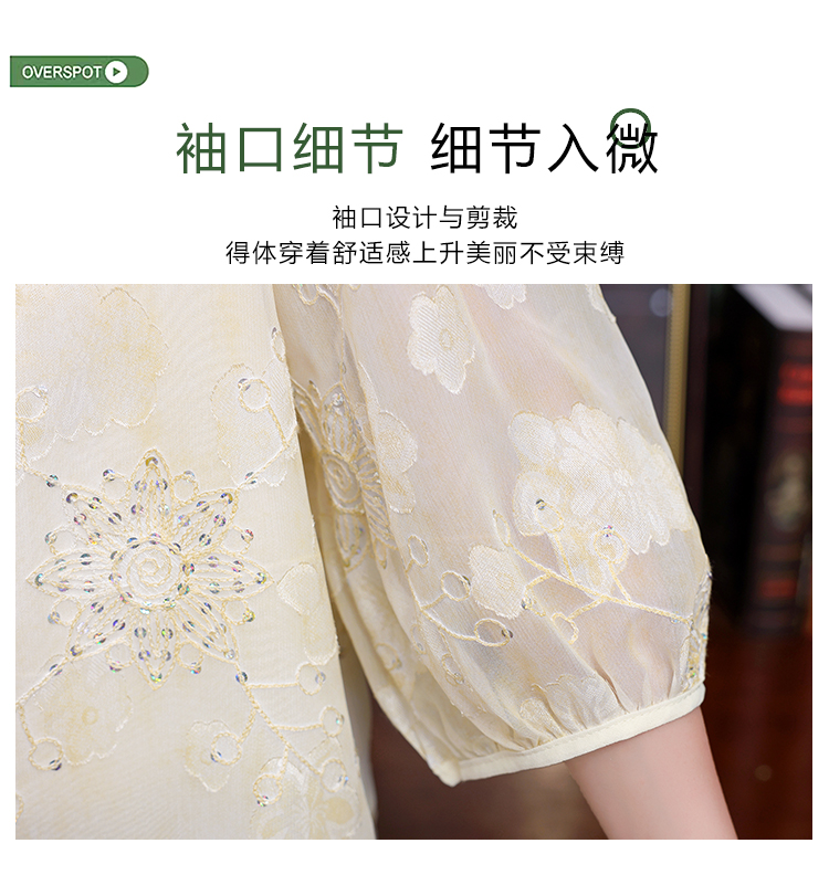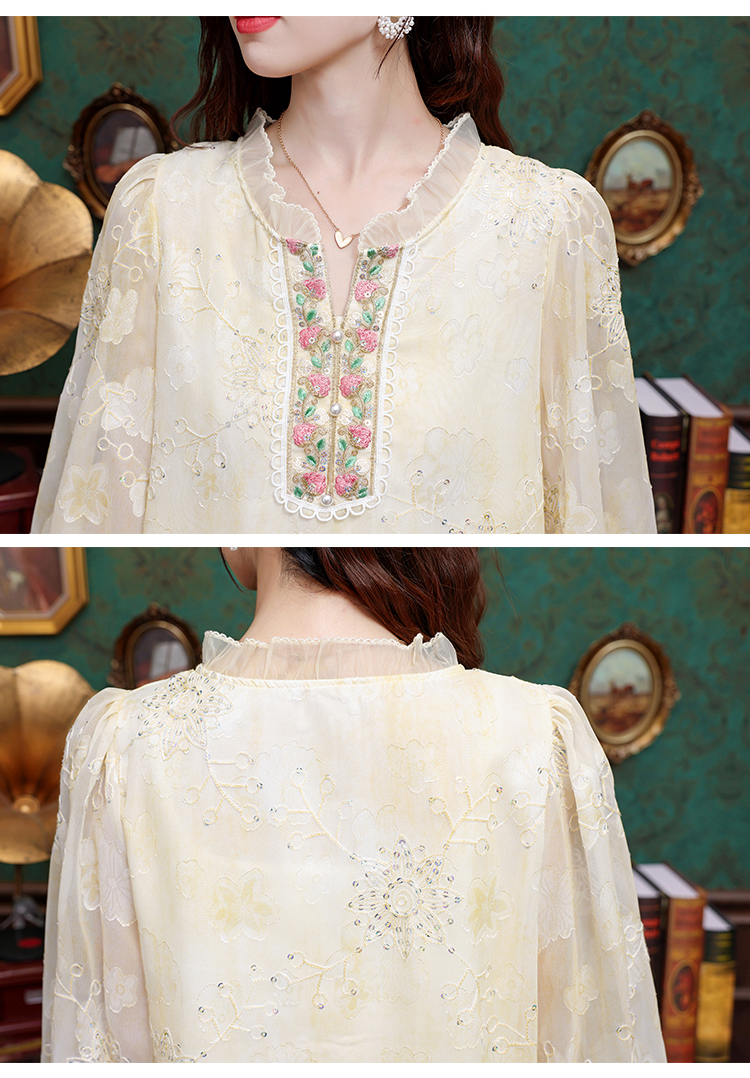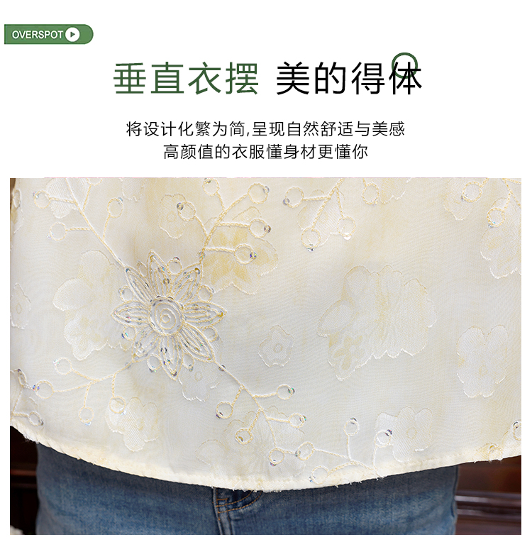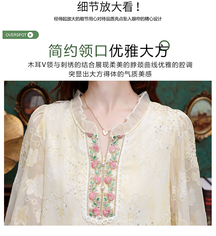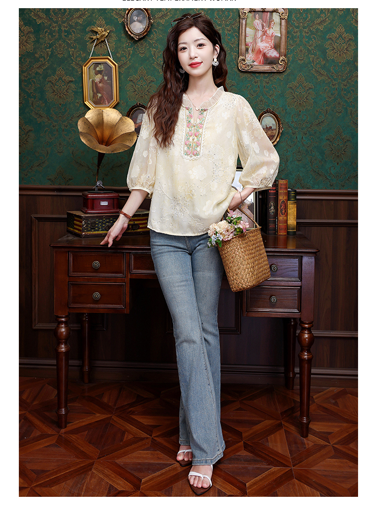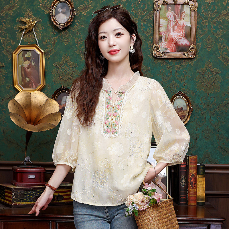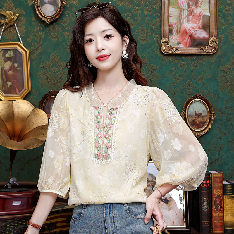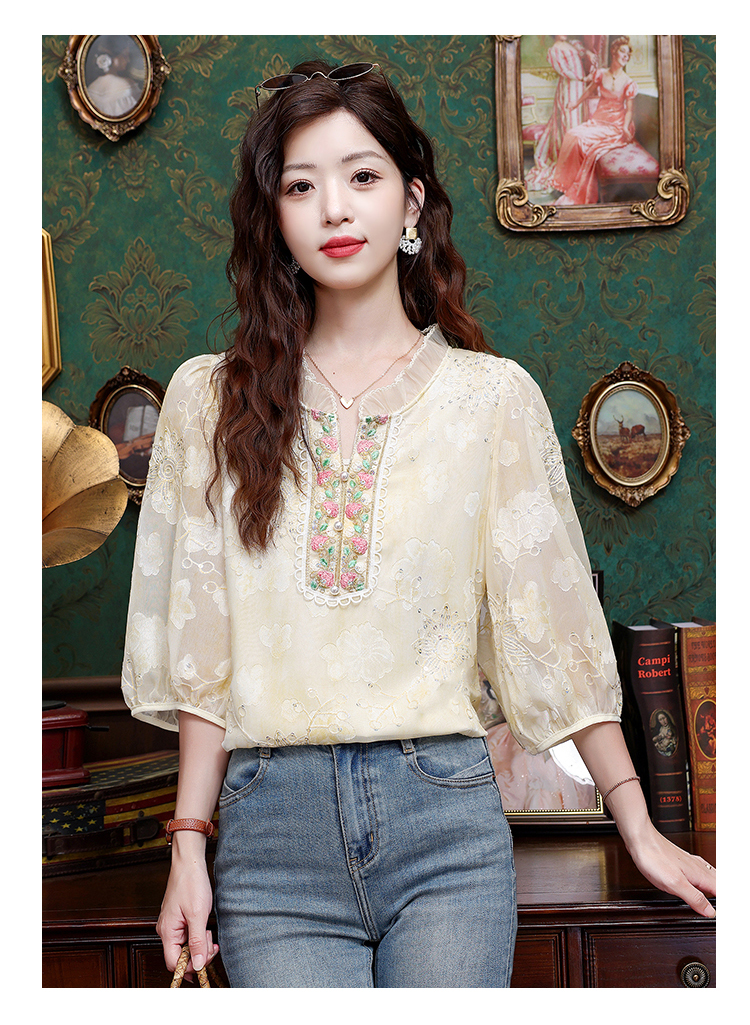RY3761# 实拍2026年春夏新款重工立体刺绣泡泡七分袖时尚衬衫空调衫