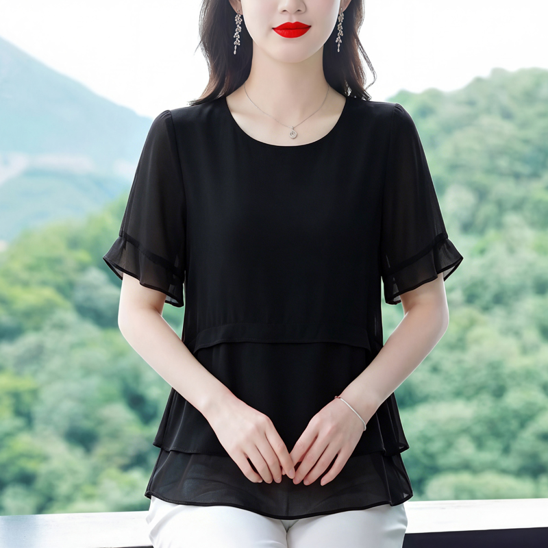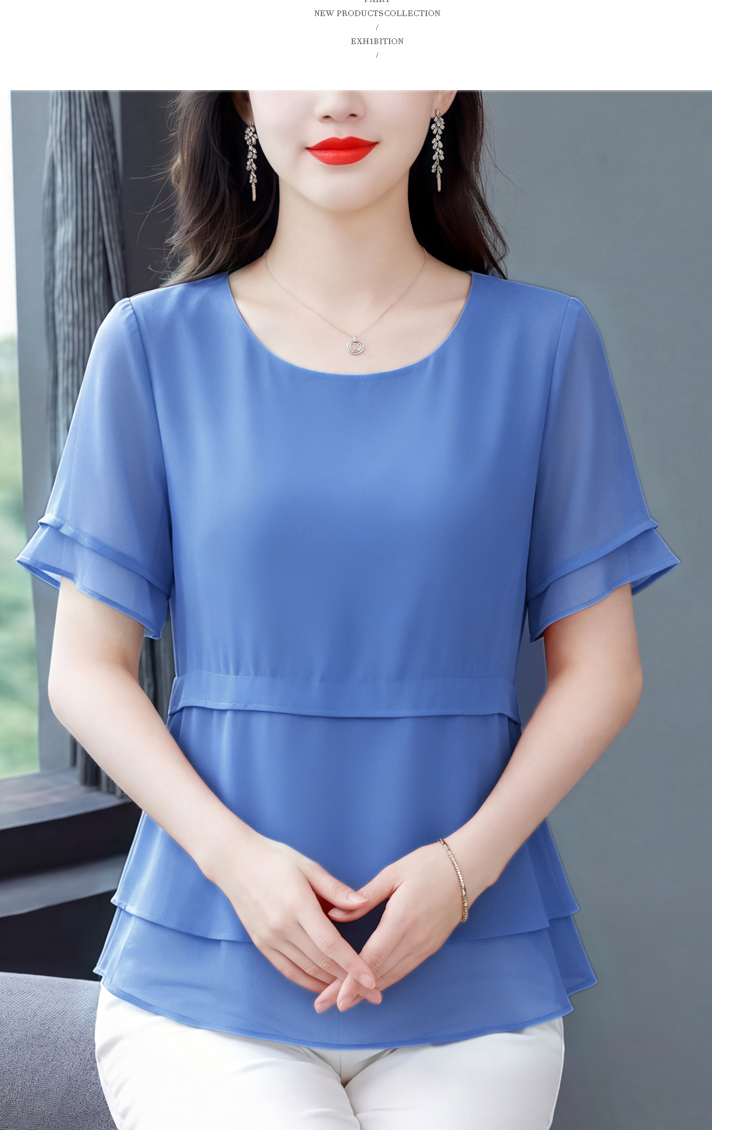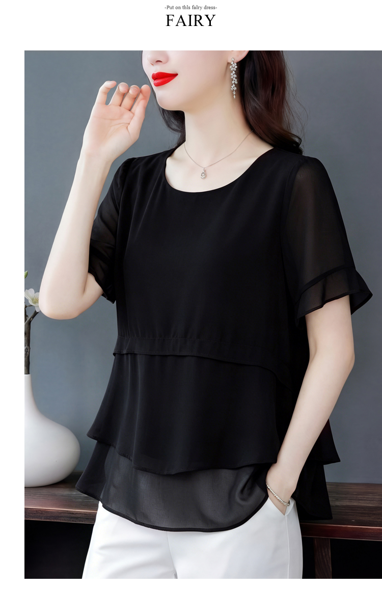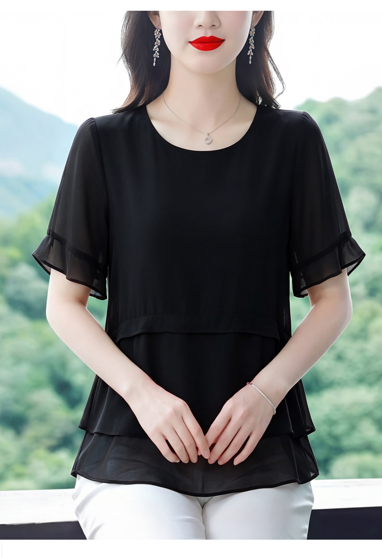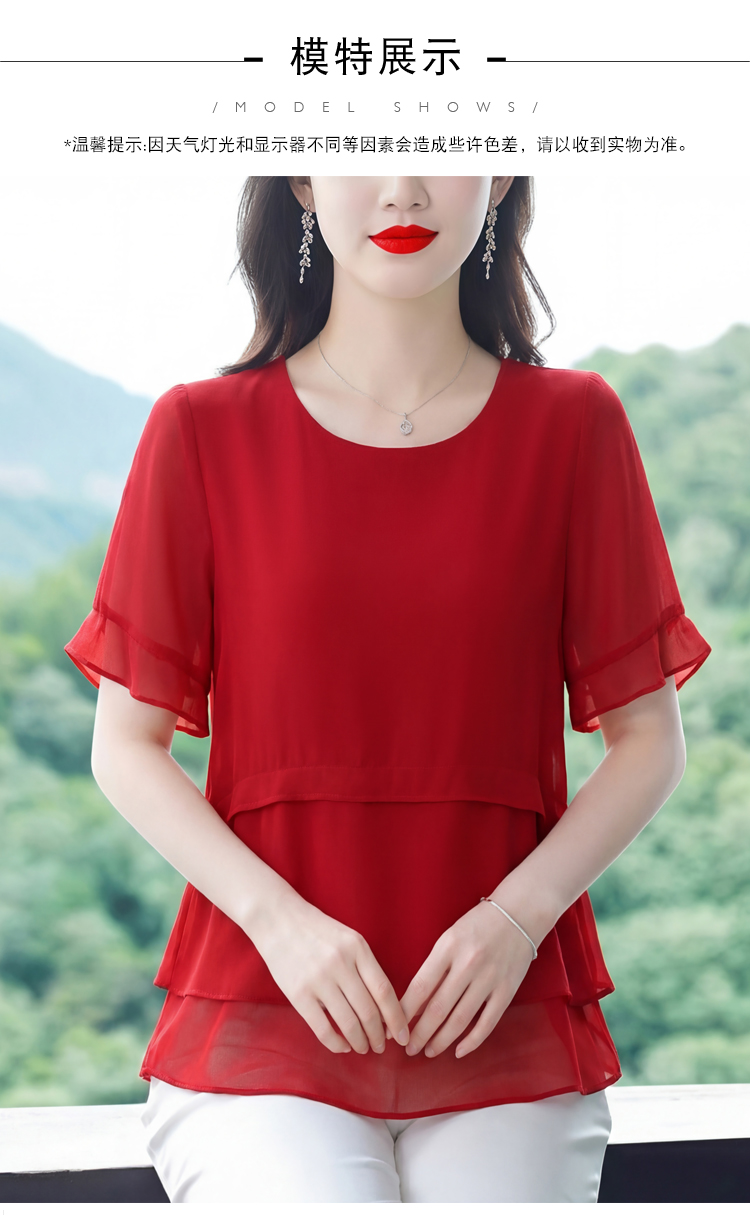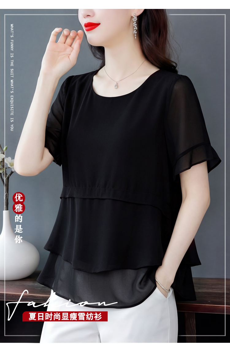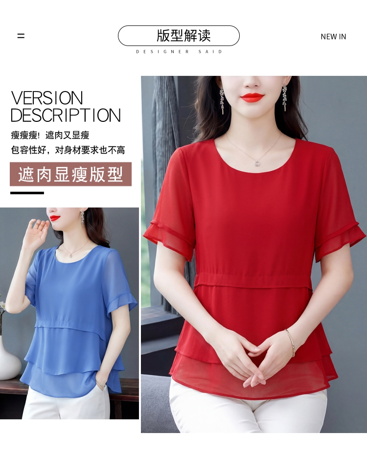 RY3765# 高级感妈妈遮肚子雪纺衫女士2026夏季新款宽松减龄时尚荷叶边上衣