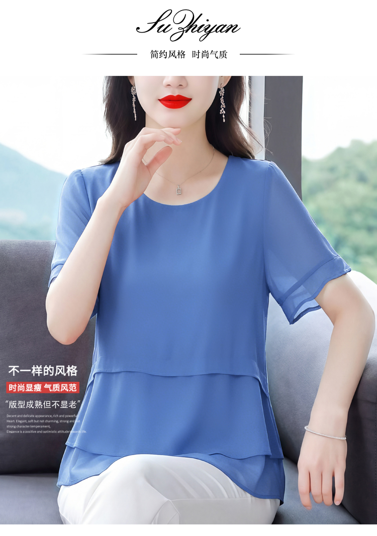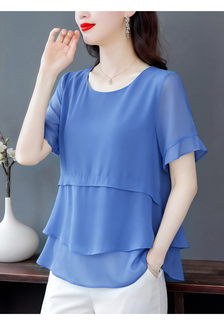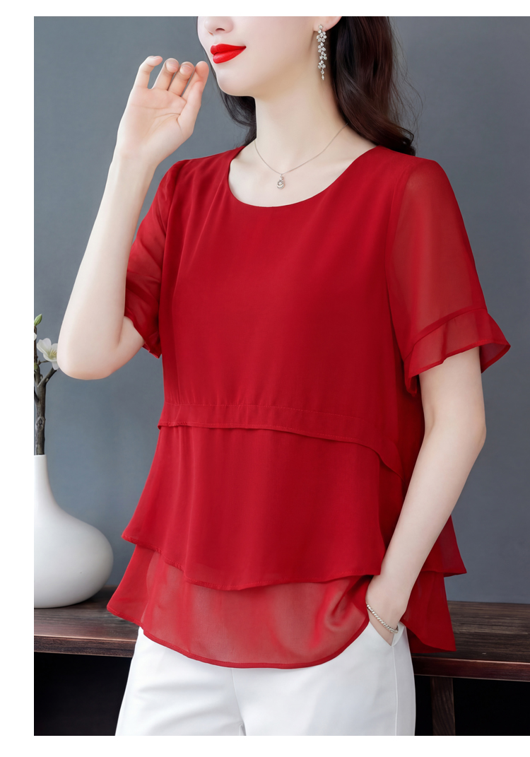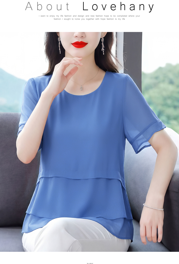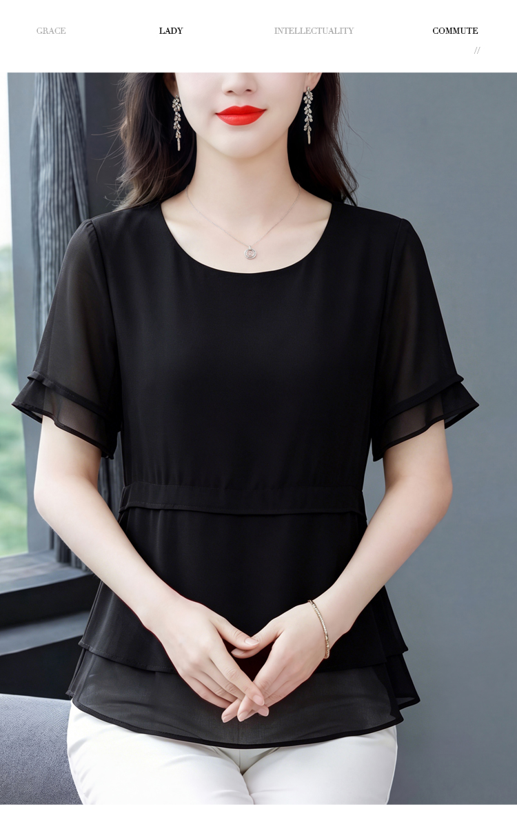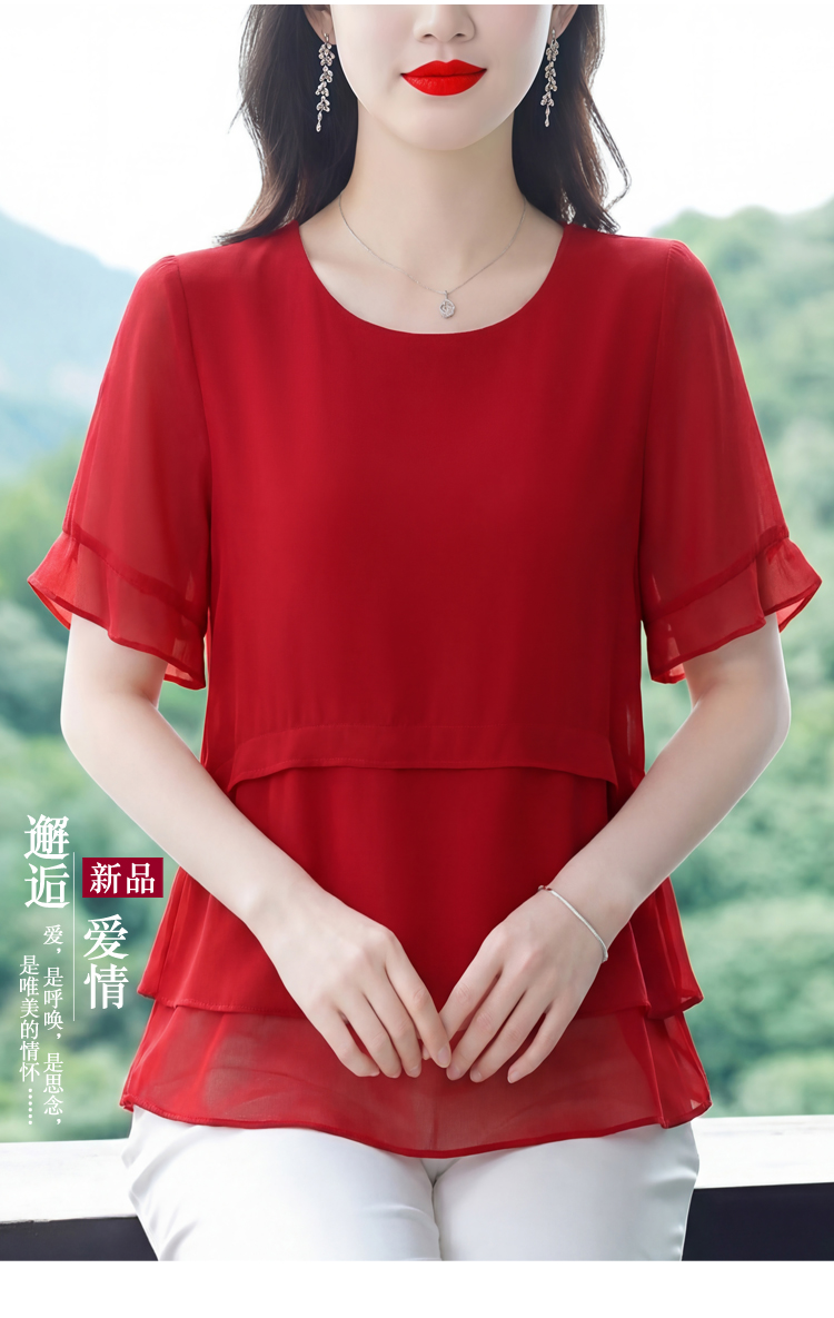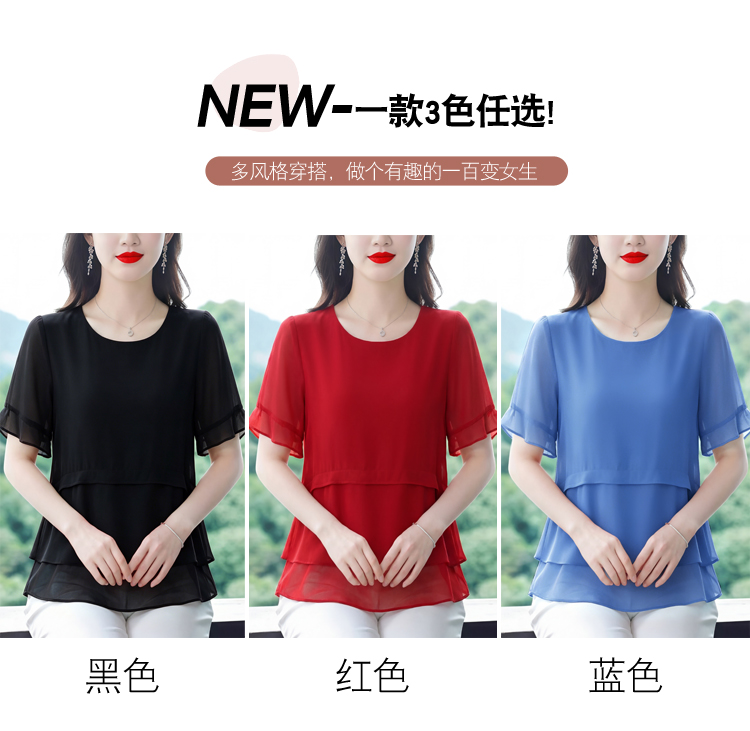 RY3765# 高级感妈妈遮肚子雪纺衫女士2026夏季新款宽松减龄时尚荷叶边上衣