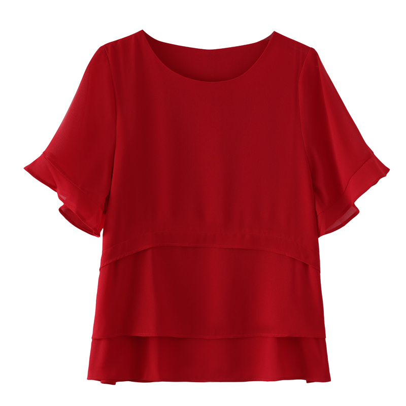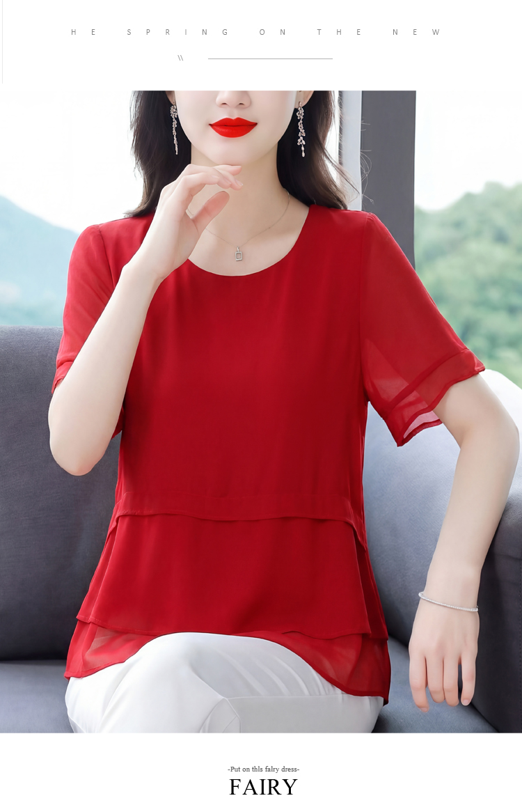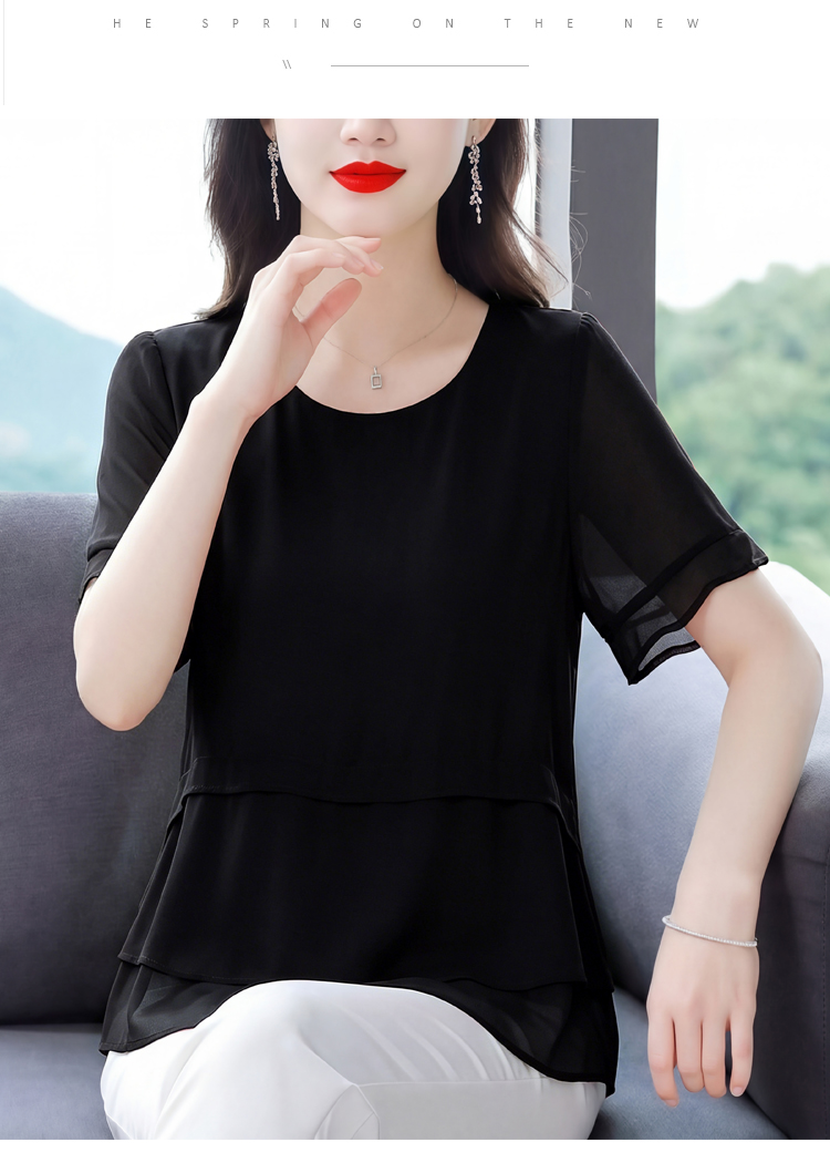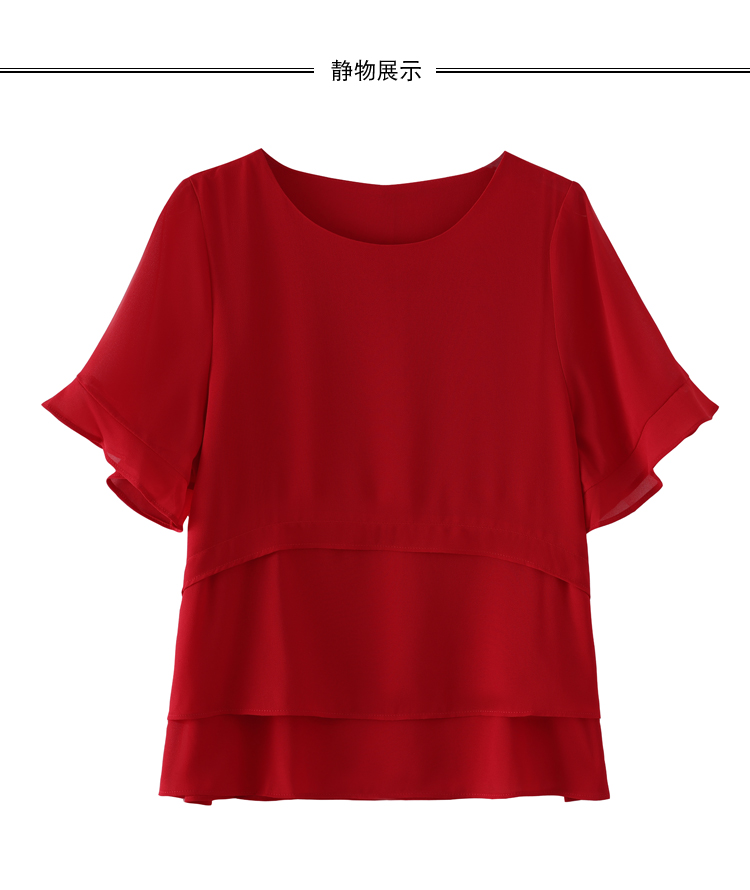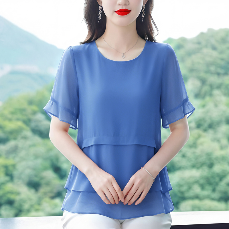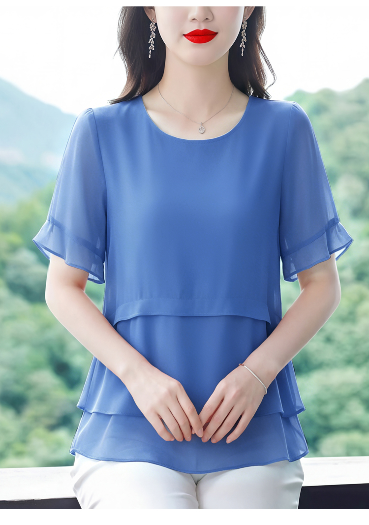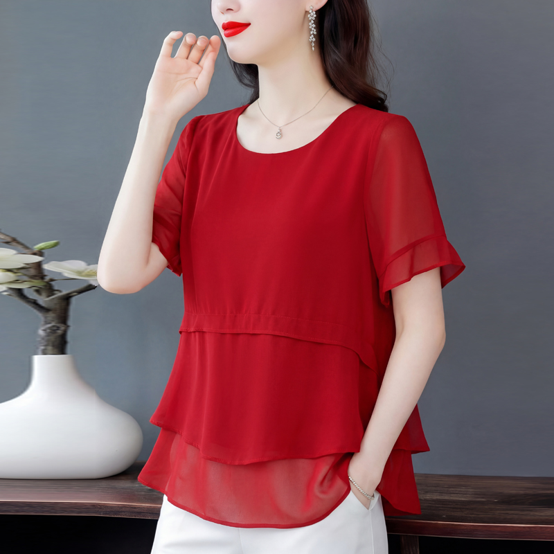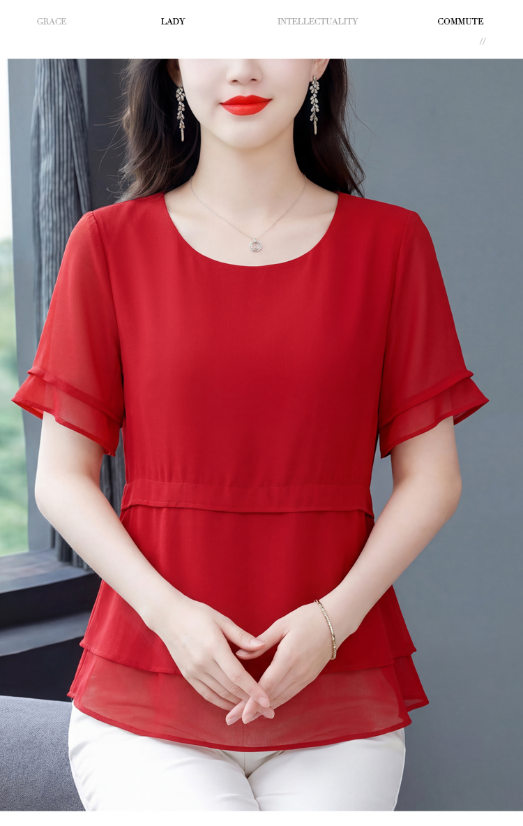 RY3765# 高级感妈妈遮肚子雪纺衫女士2026夏季新款宽松减龄时尚荷叶边上衣