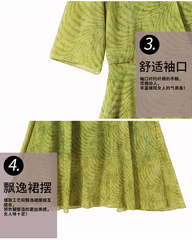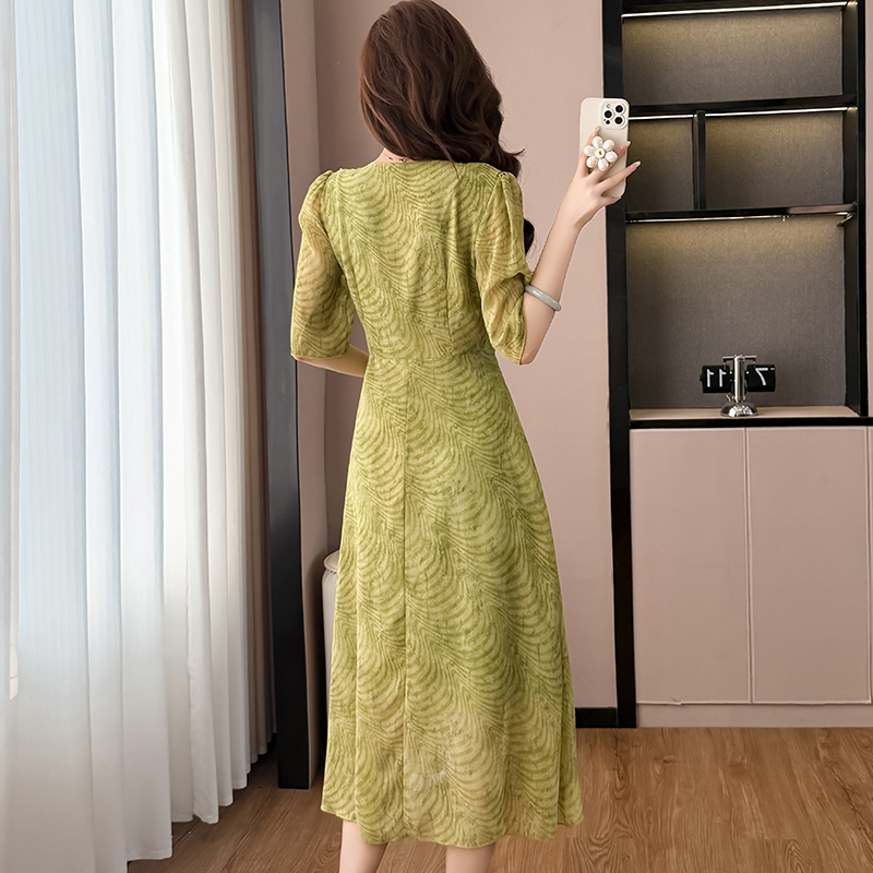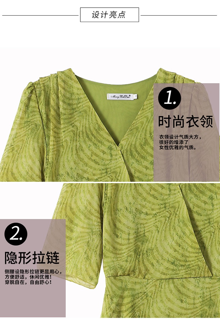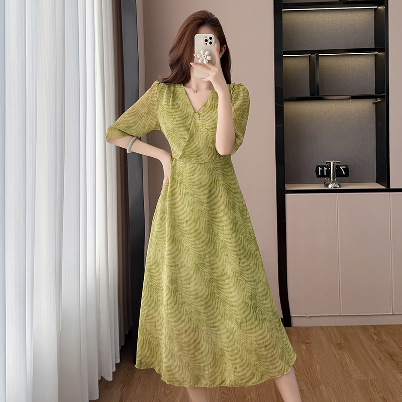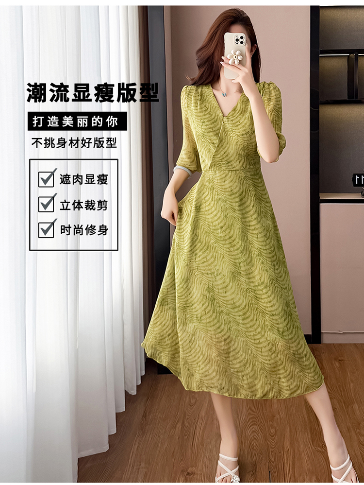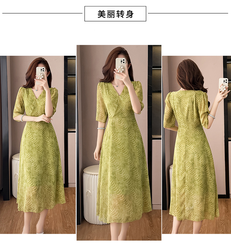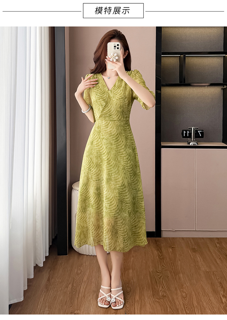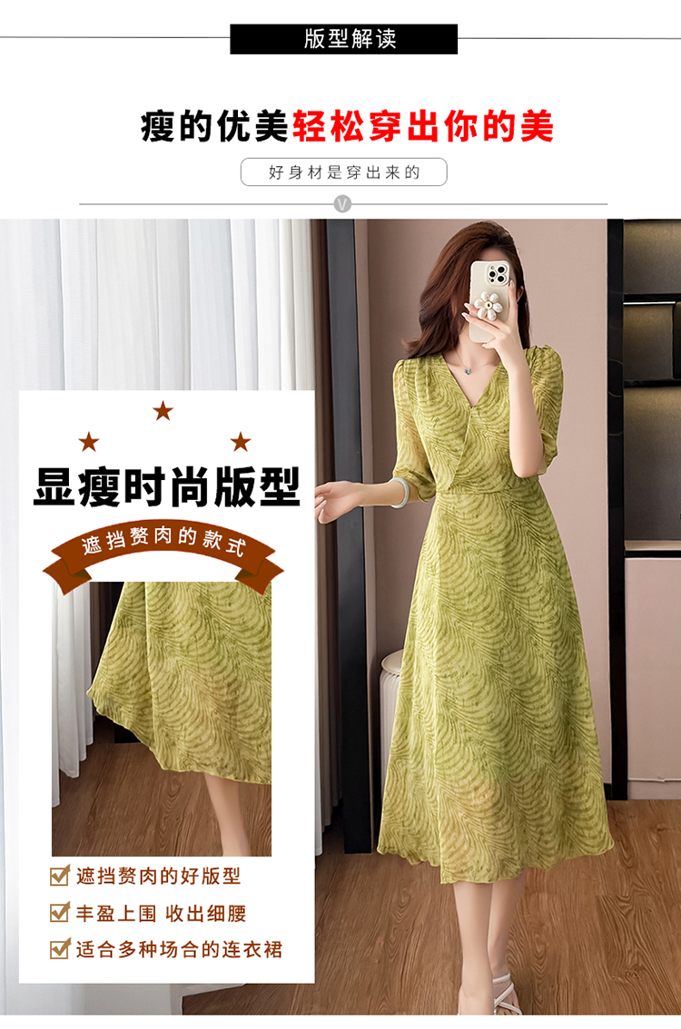 RY3771# 时尚洋气夏季轻薄透气雪纺连衣裙修身显瘦中长款阔太太女装妈妈装