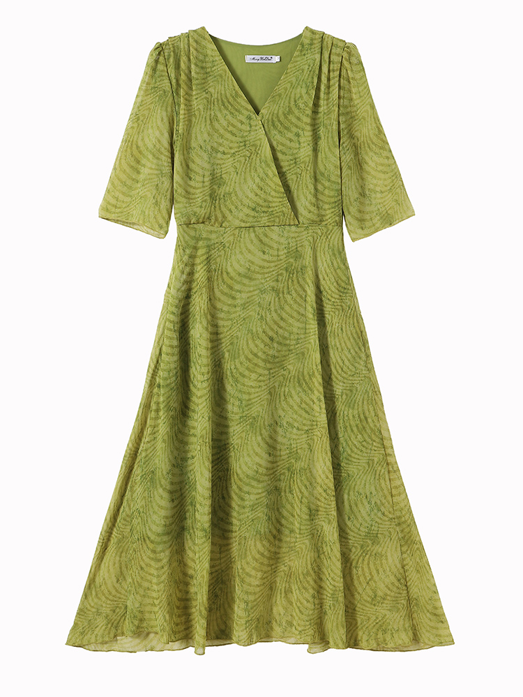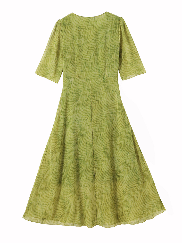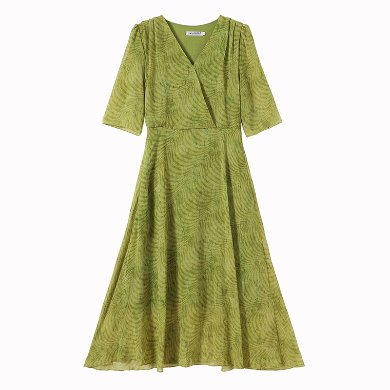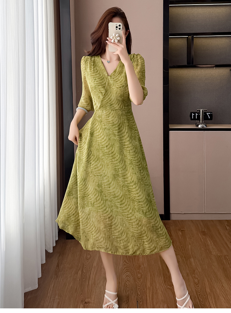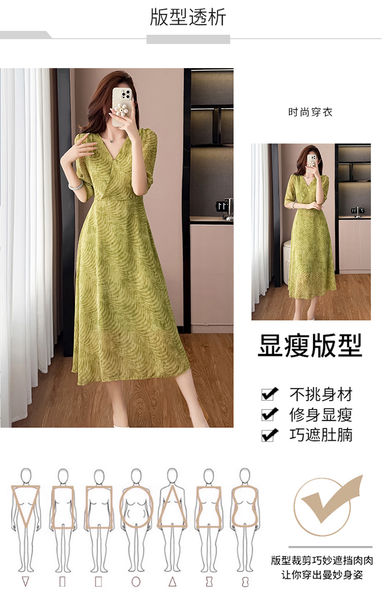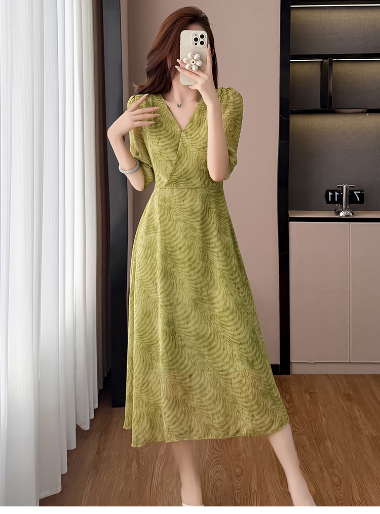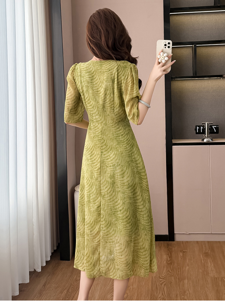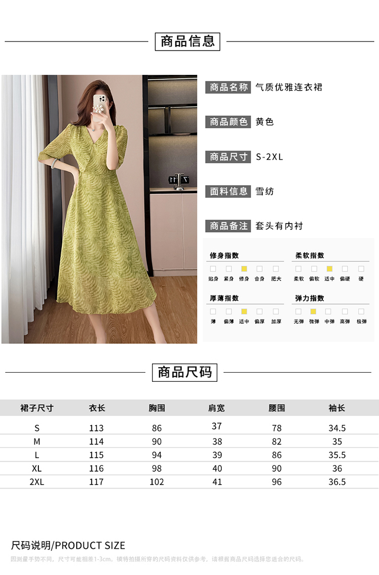 RY3771# 时尚洋气夏季轻薄透气雪纺连衣裙修身显瘦中长款阔太太女装妈妈装
