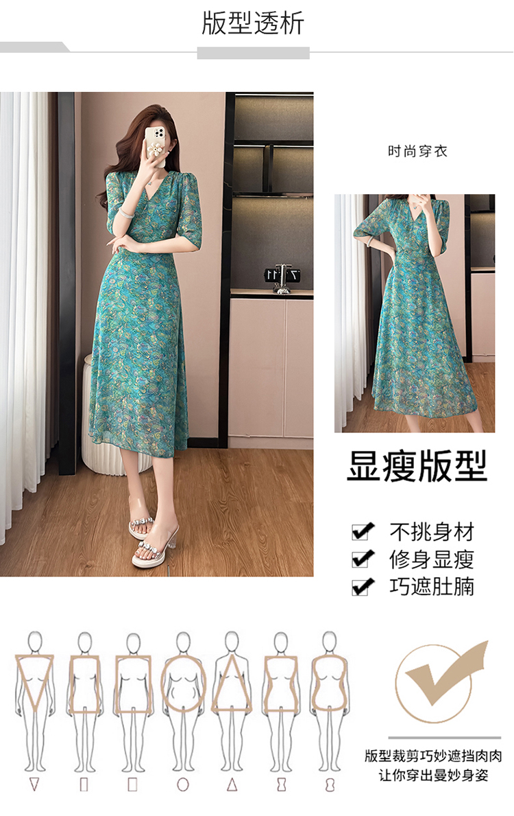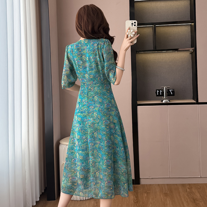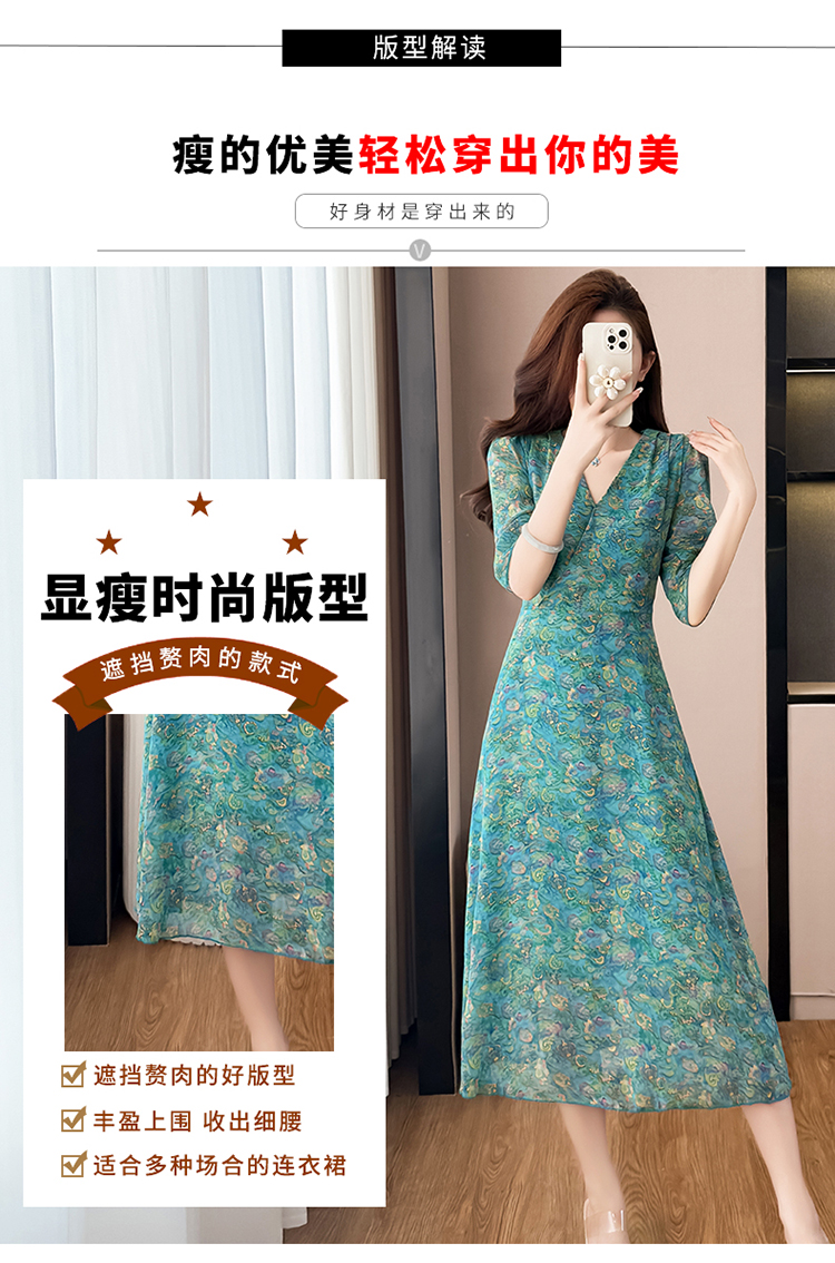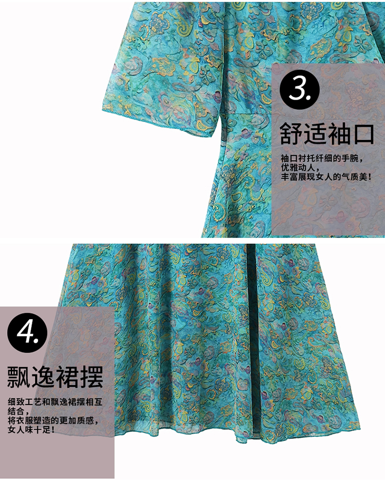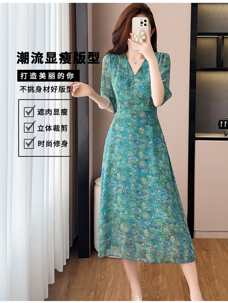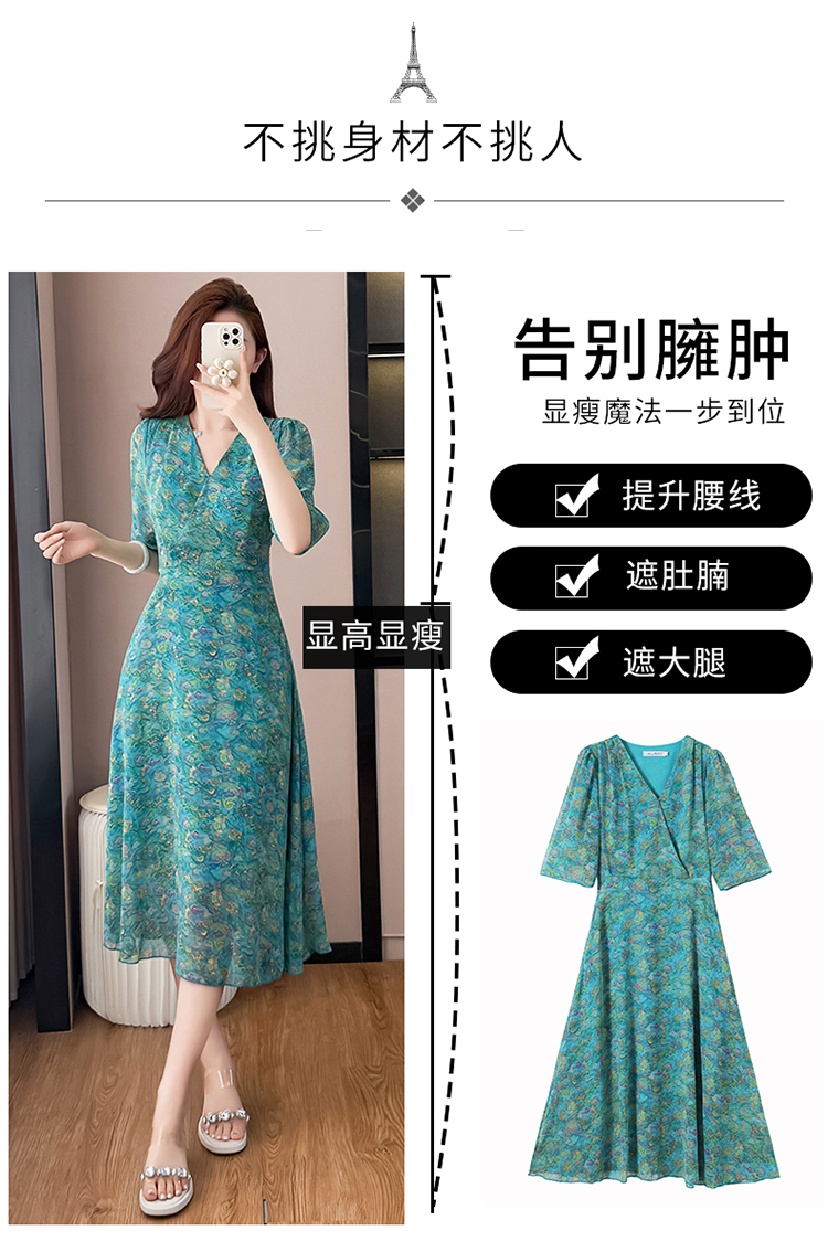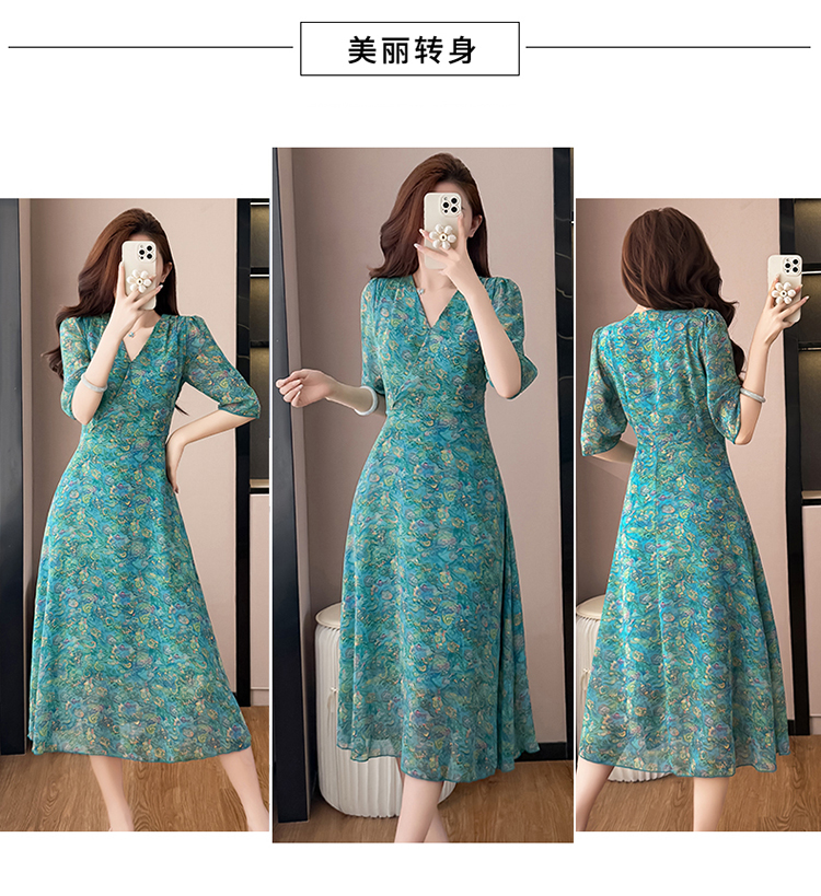 RY3772# 雪纺碎花时尚洋气修身显瘦中长款阔太太妈妈装短袖连衣裙夏季新款