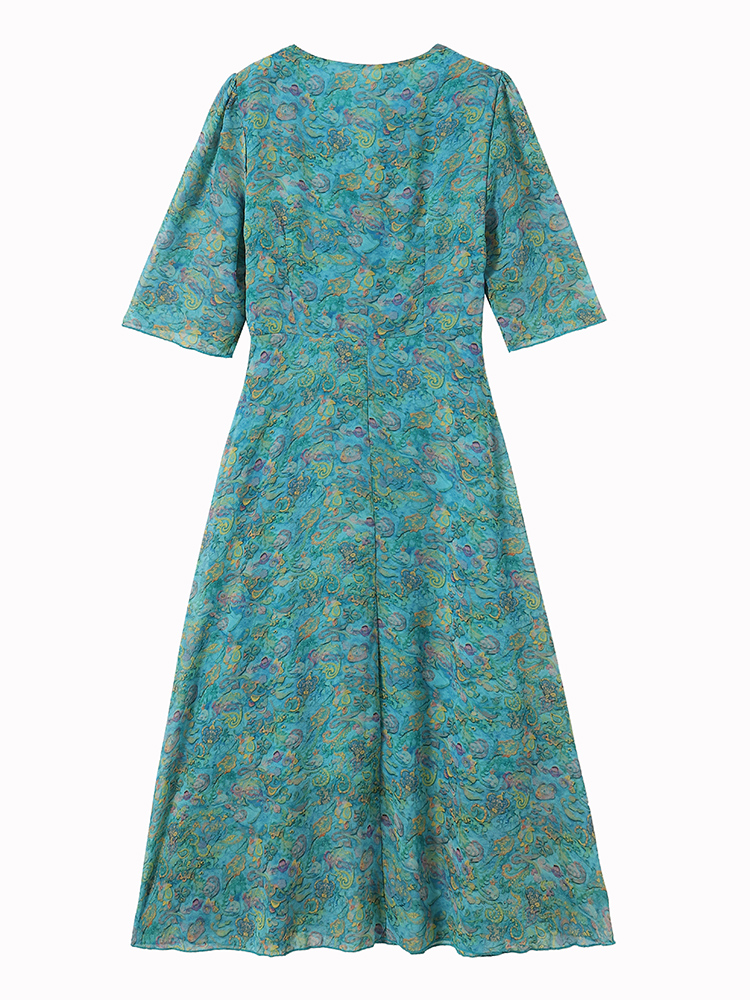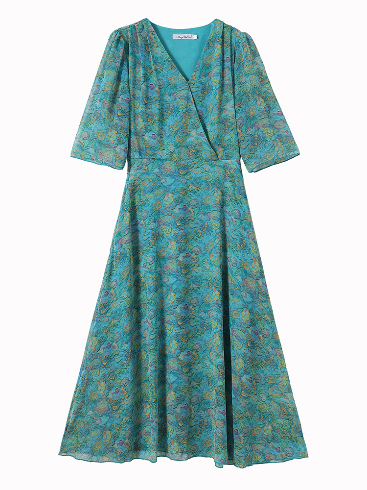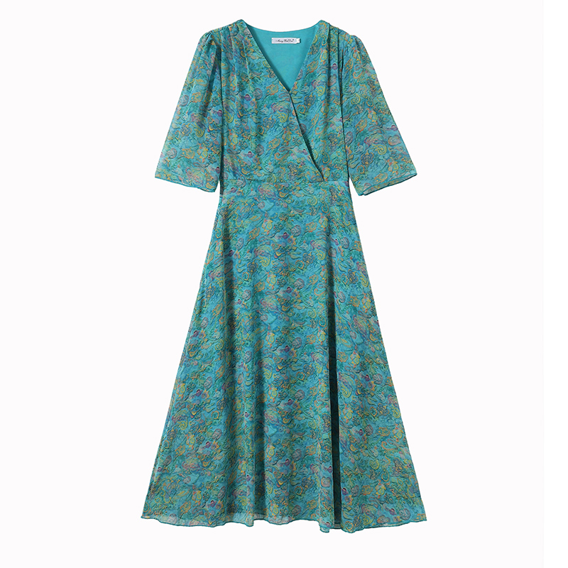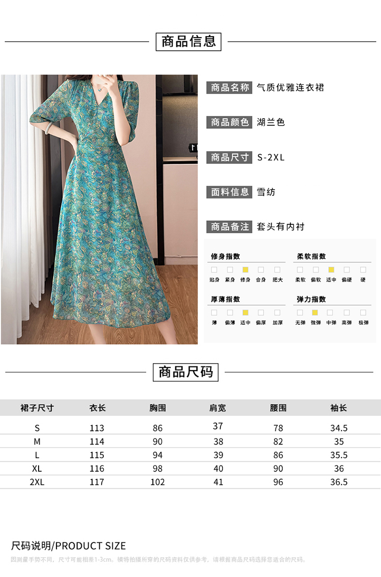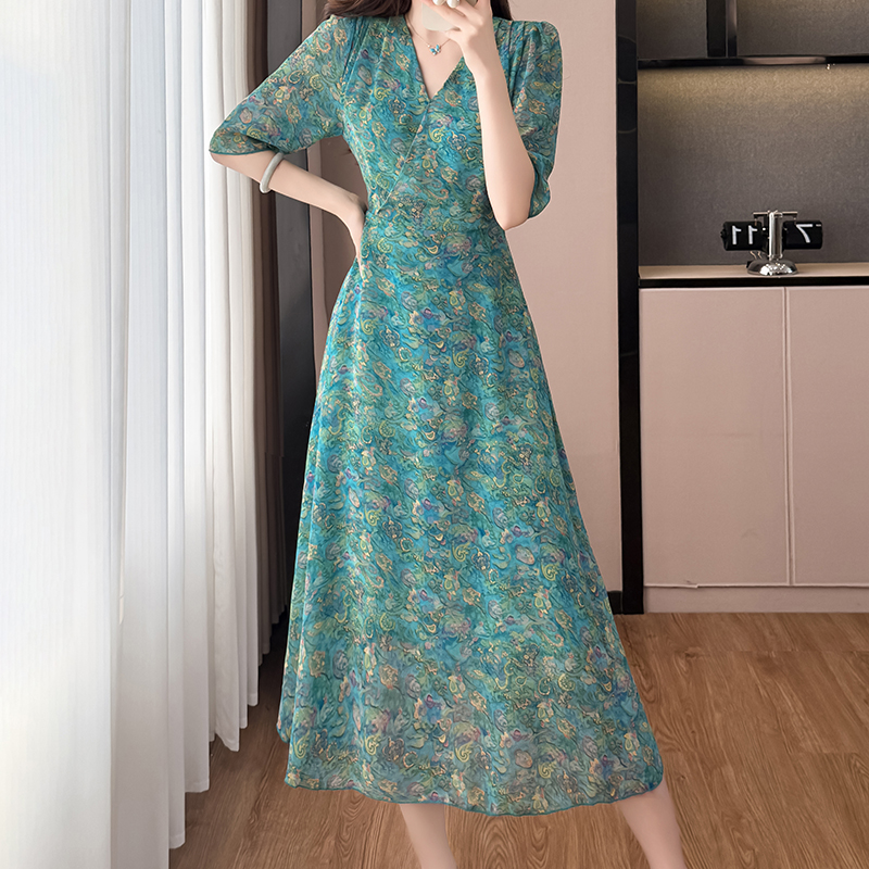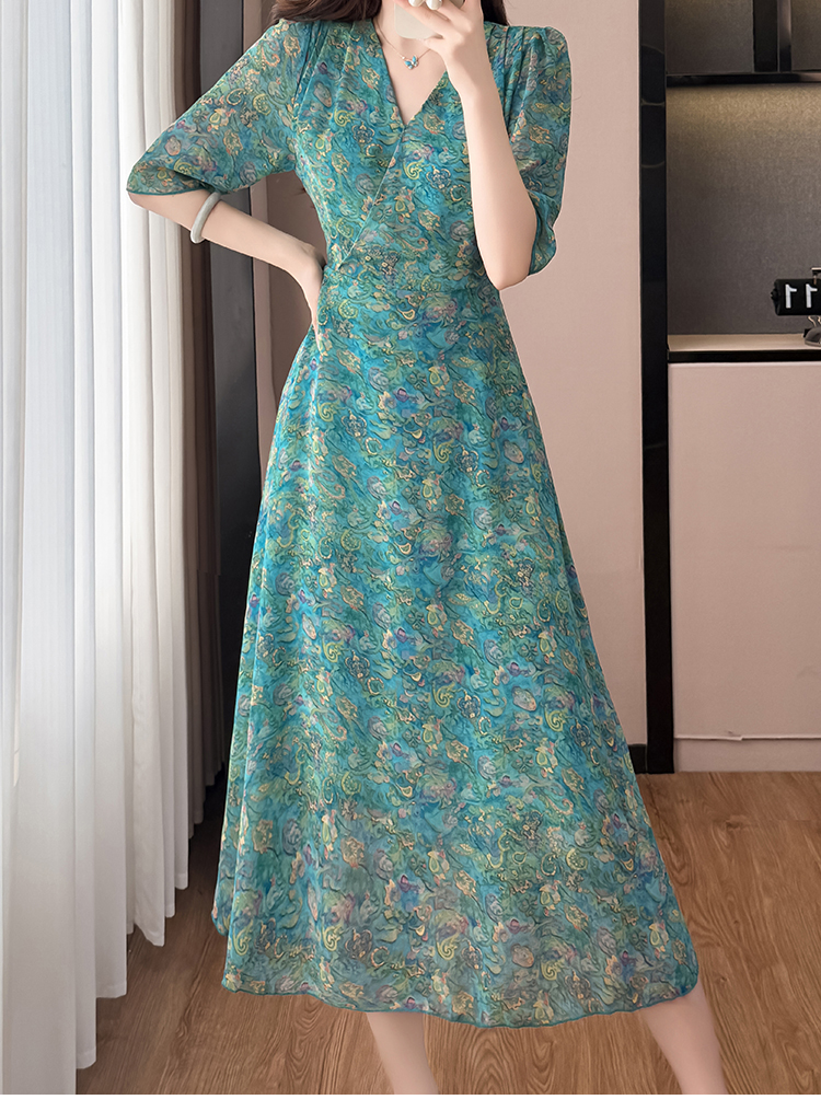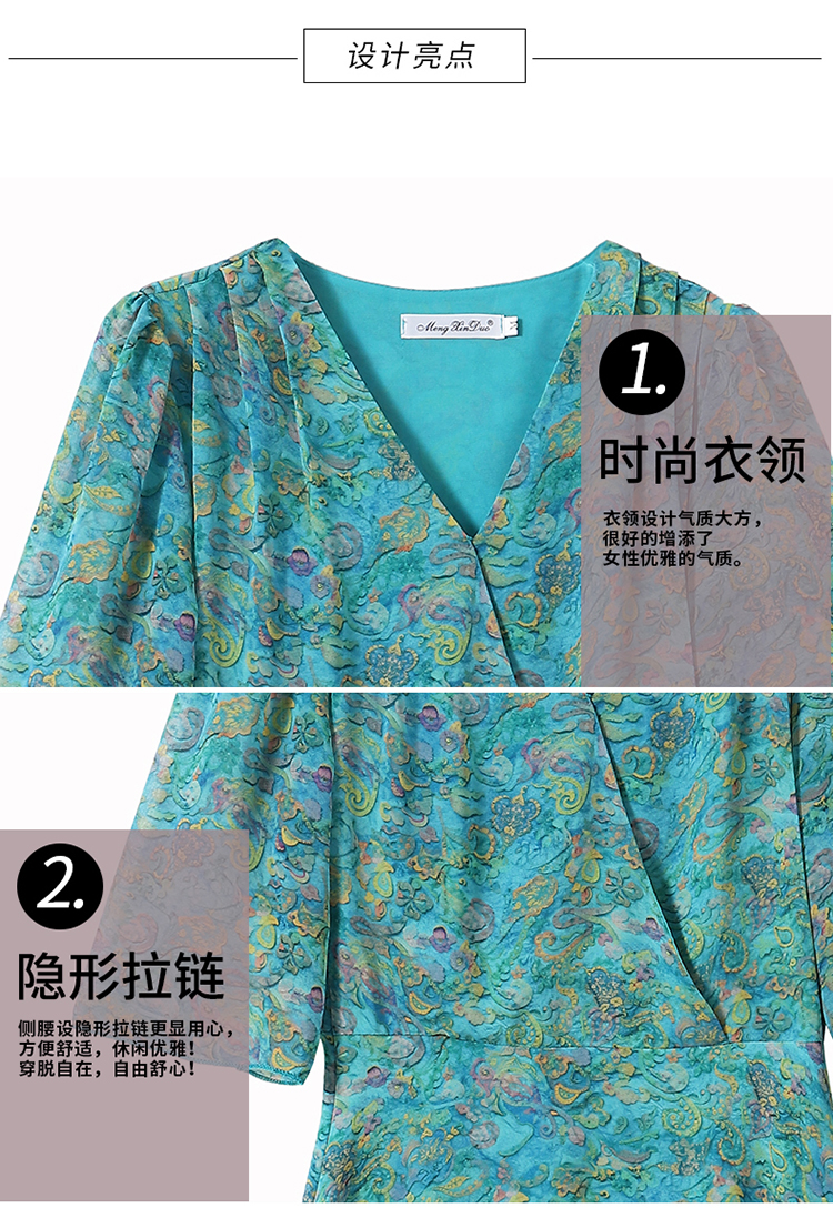 RY3772# 雪纺碎花时尚洋气修身显瘦中长款阔太太妈妈装短袖连衣裙夏季新款