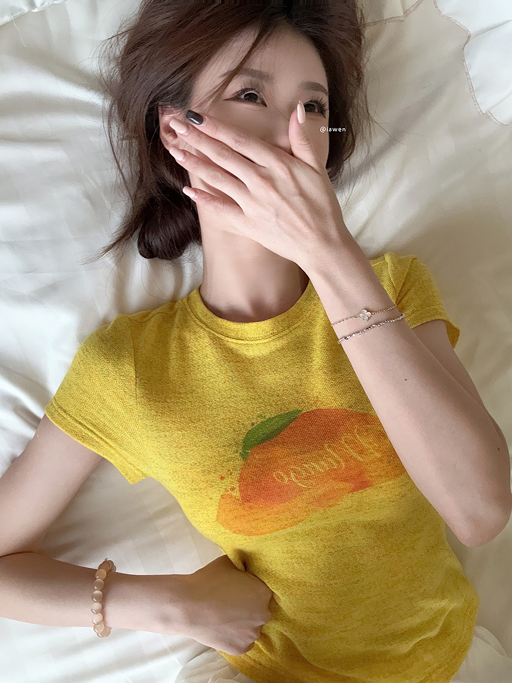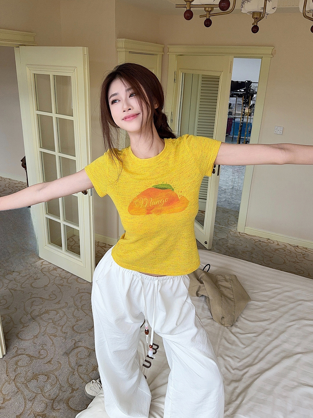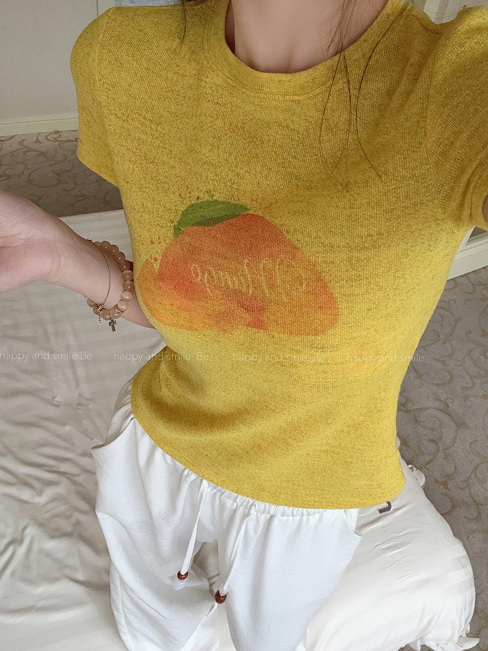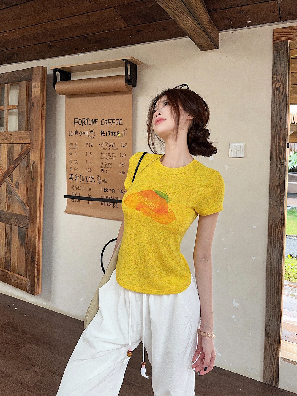 RY3784# 官图甜美风趣味印花圆领短袖T恤女夏季百搭减龄修身正肩短款上衣