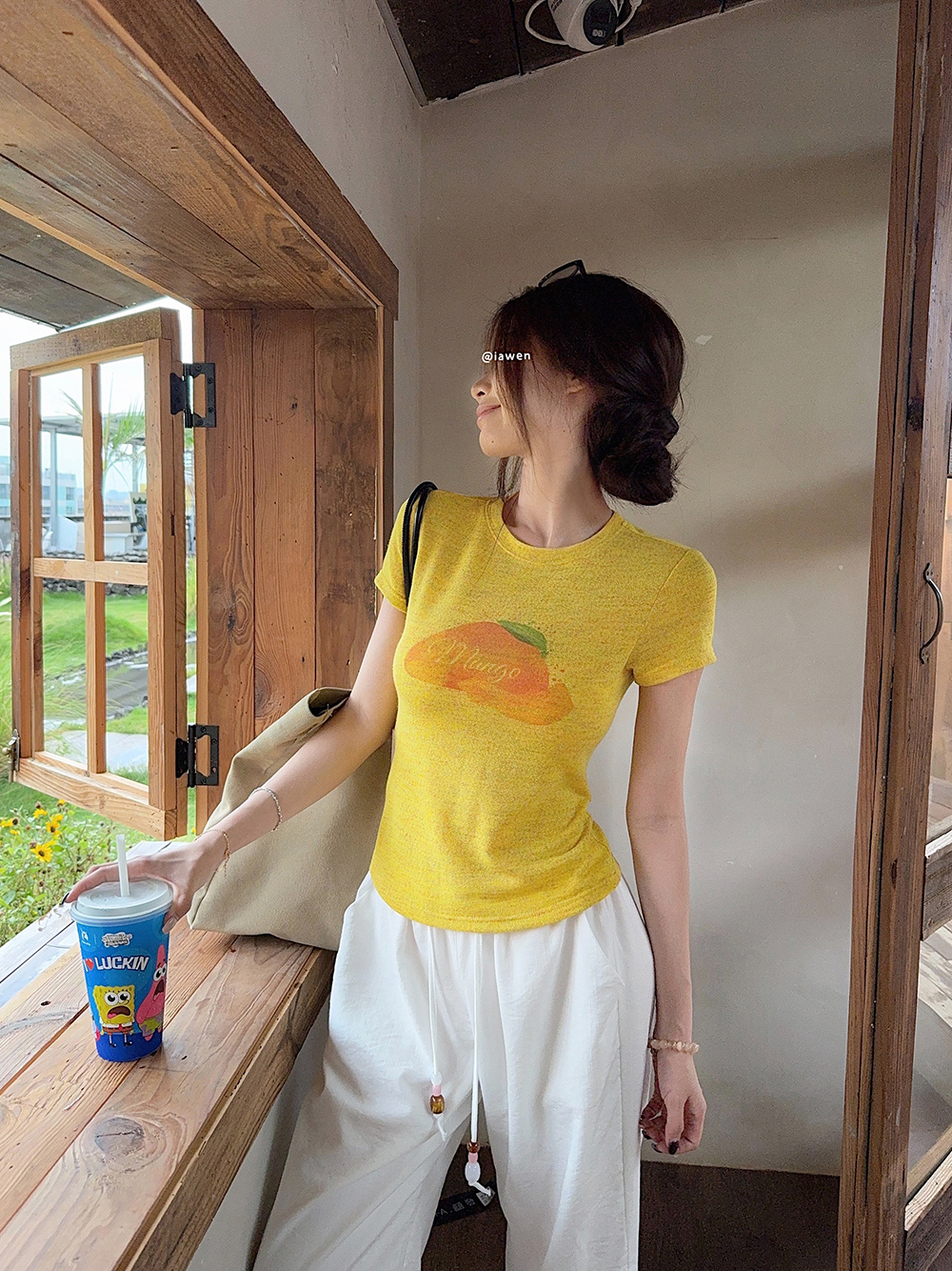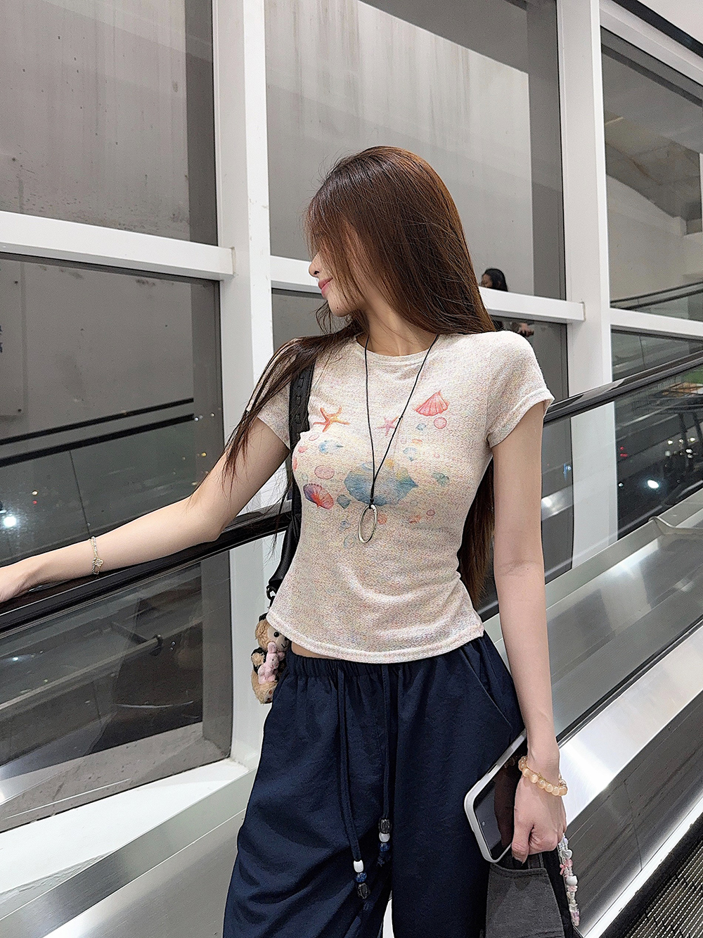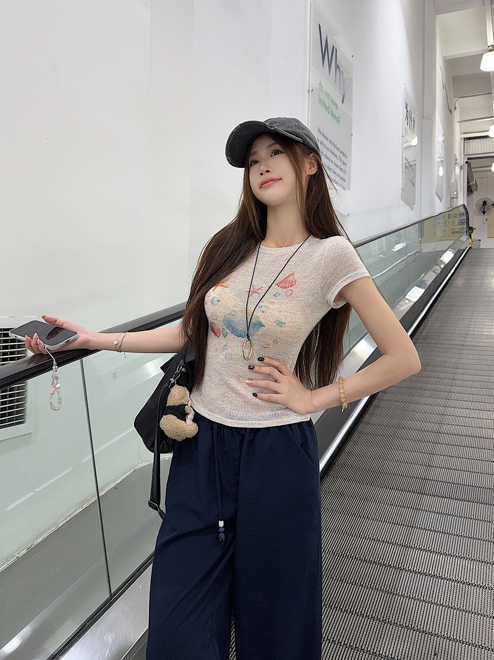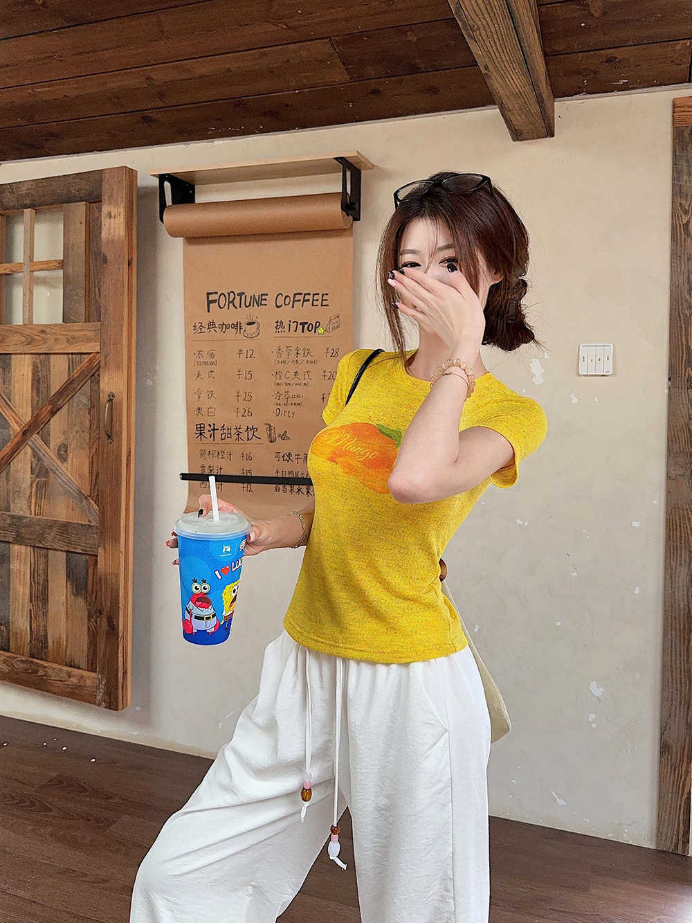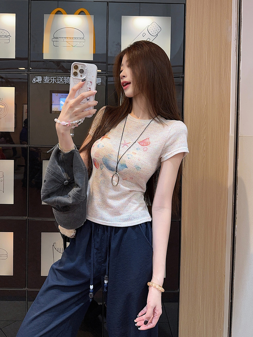 RY3784# 官图甜美风趣味印花圆领短袖T恤女夏季百搭减龄修身正肩短款上衣