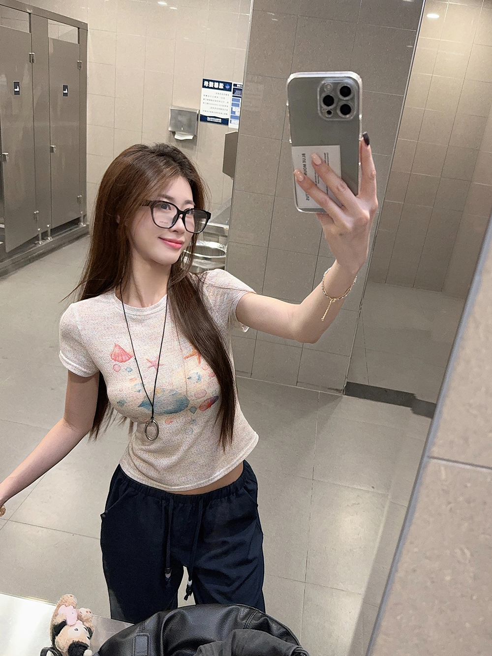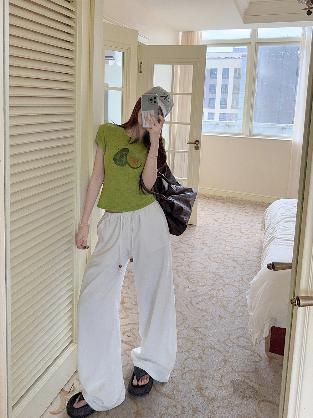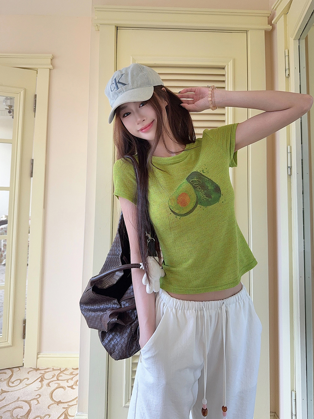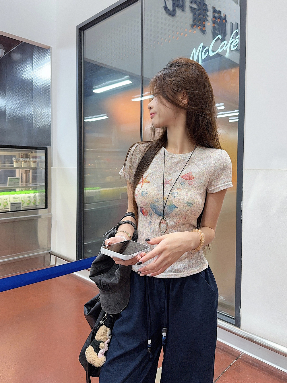 RY3784# 官图甜美风趣味印花圆领短袖T恤女夏季百搭减龄修身正肩短款上衣