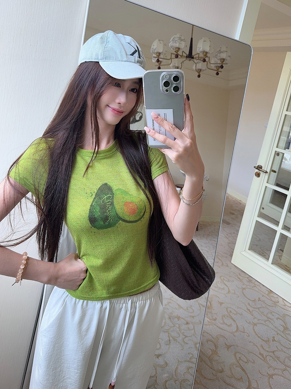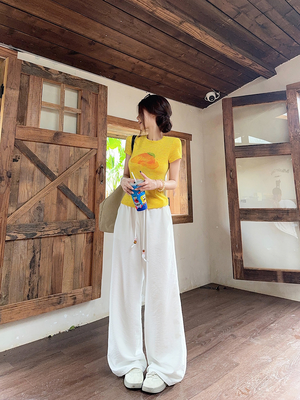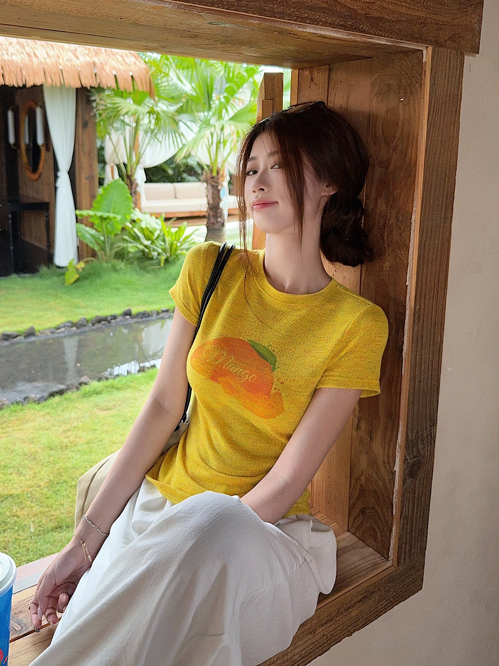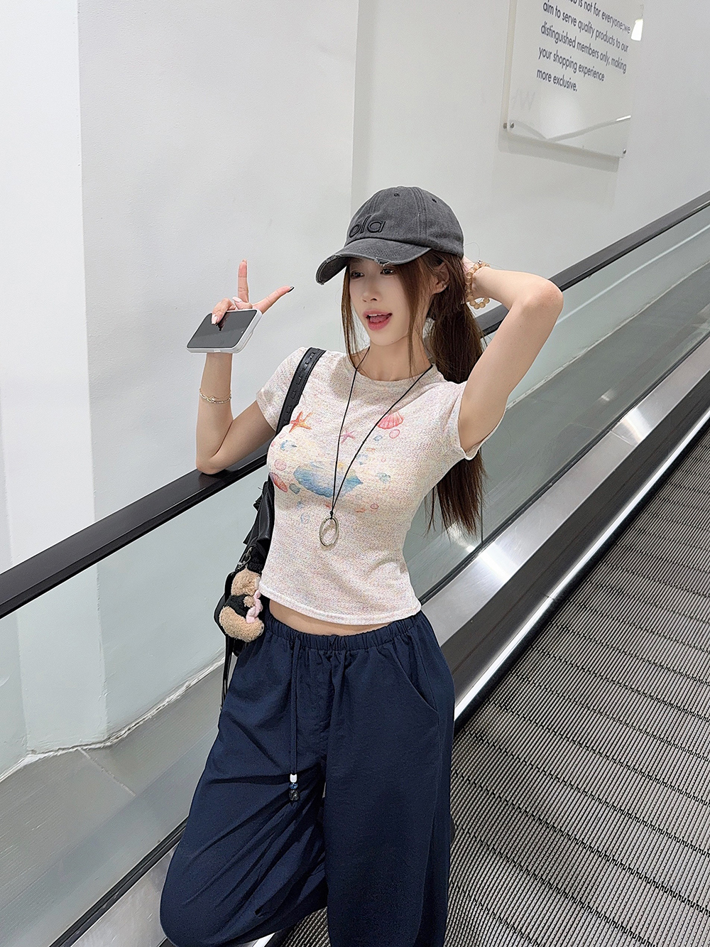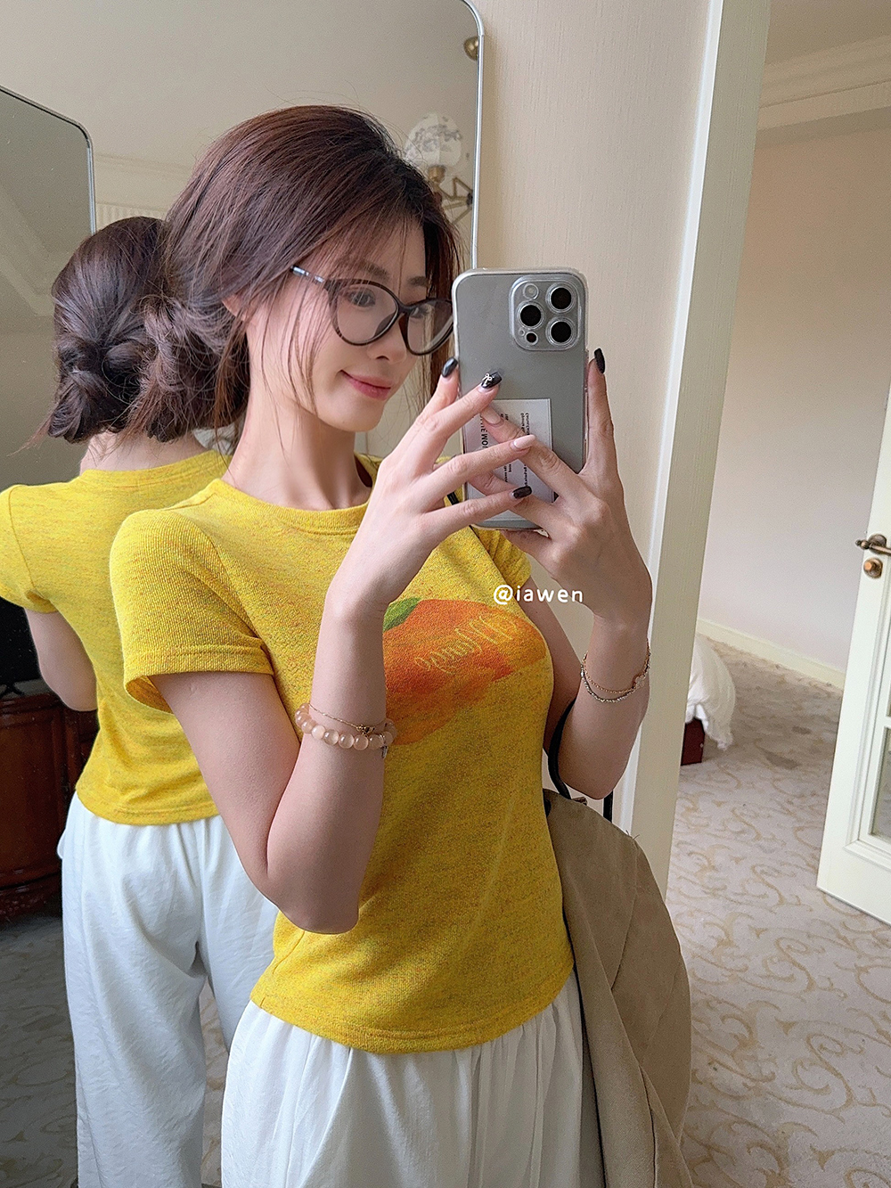 RY3784# 官图甜美风趣味印花圆领短袖T恤女夏季百搭减龄修身正肩短款上衣