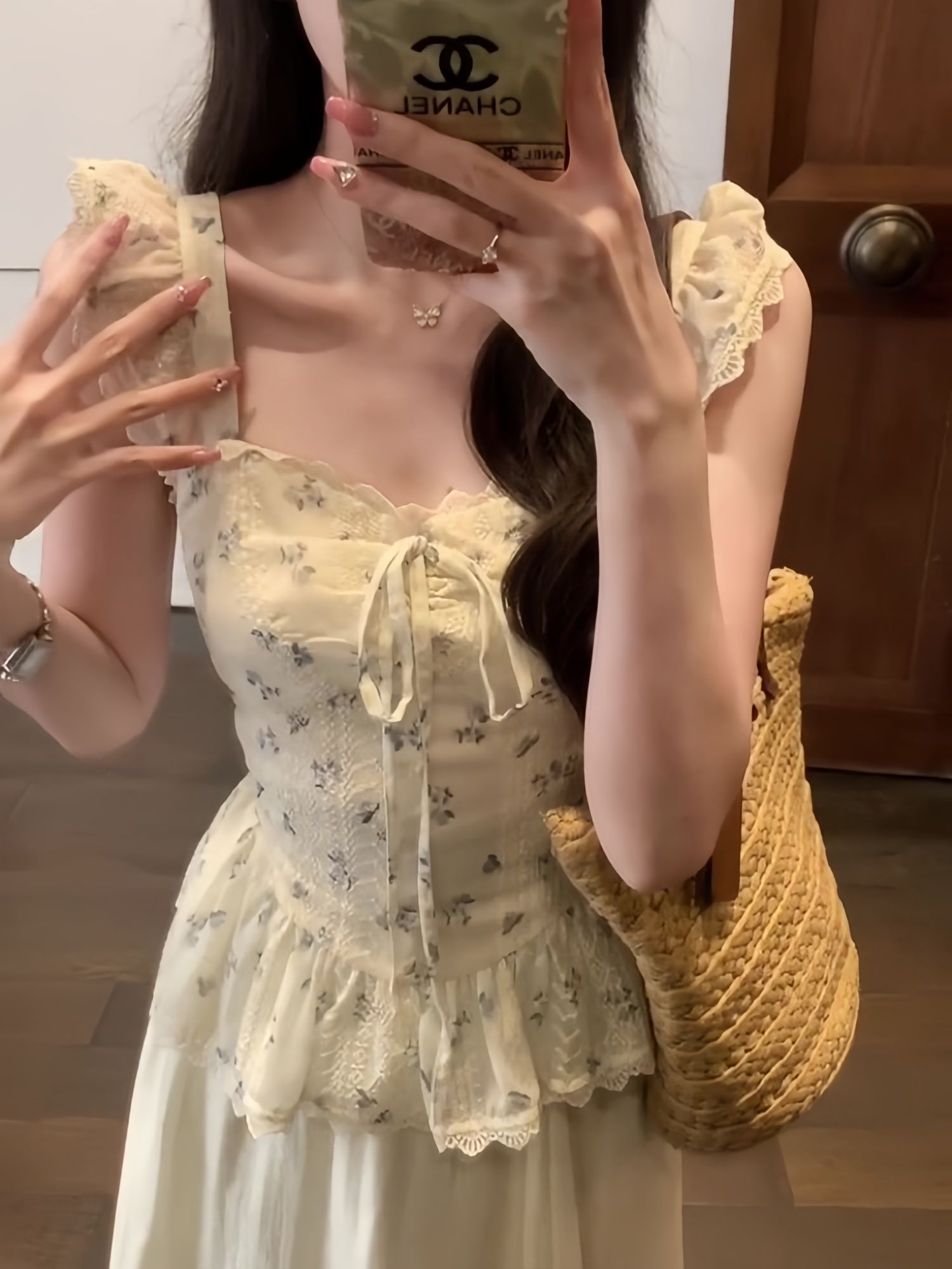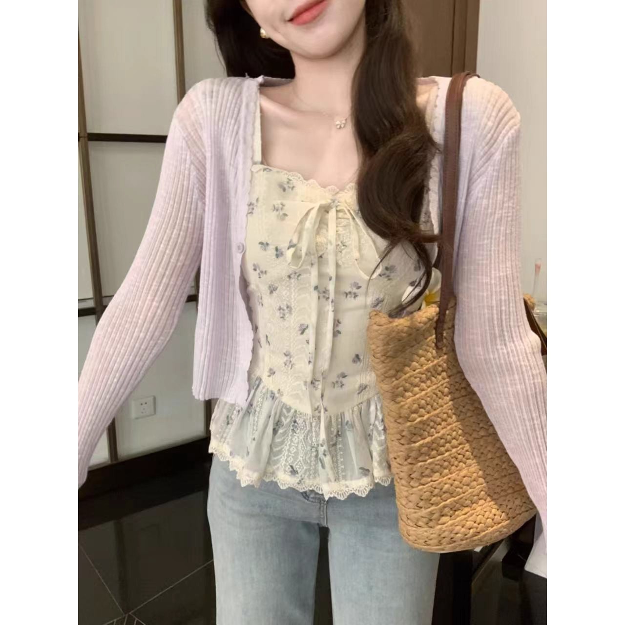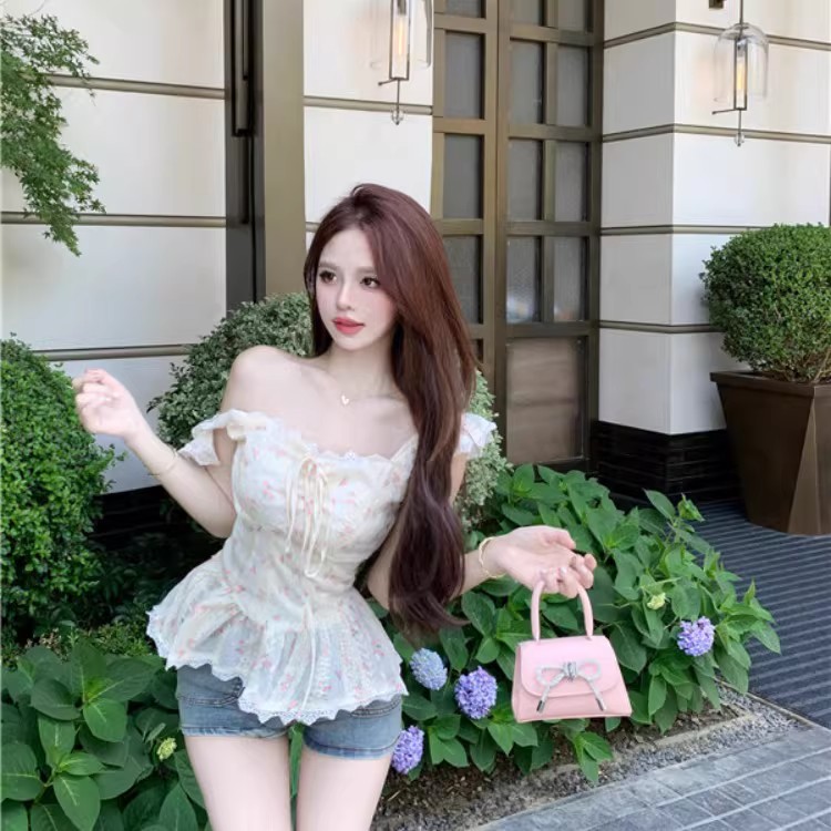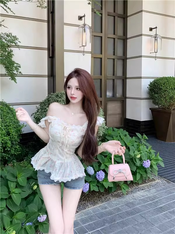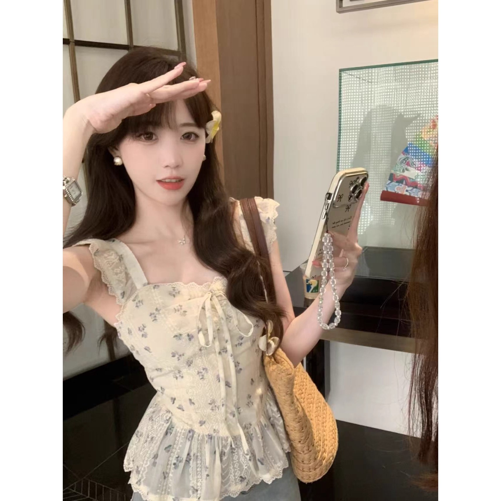 RY3804# 温柔风桔梗洋气吊带背心女外穿高级感纯欲甜美碎花收腰小飞袖上衣