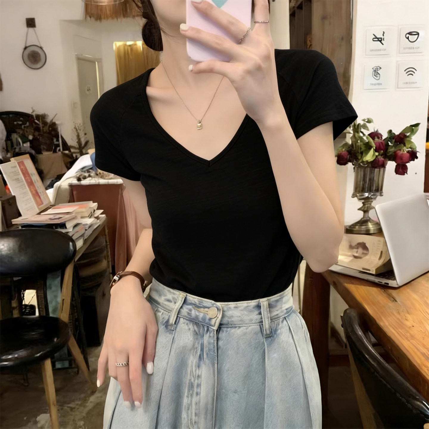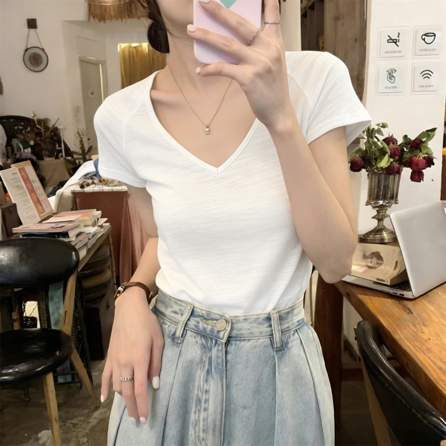 RY3810# 韩系高级感竹节棉短袖T恤女2026夏季新款修身韩版内搭打底衫上衣