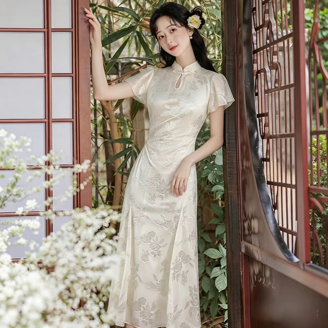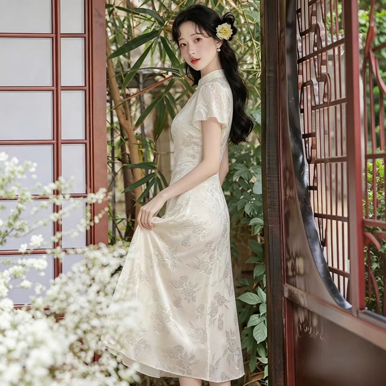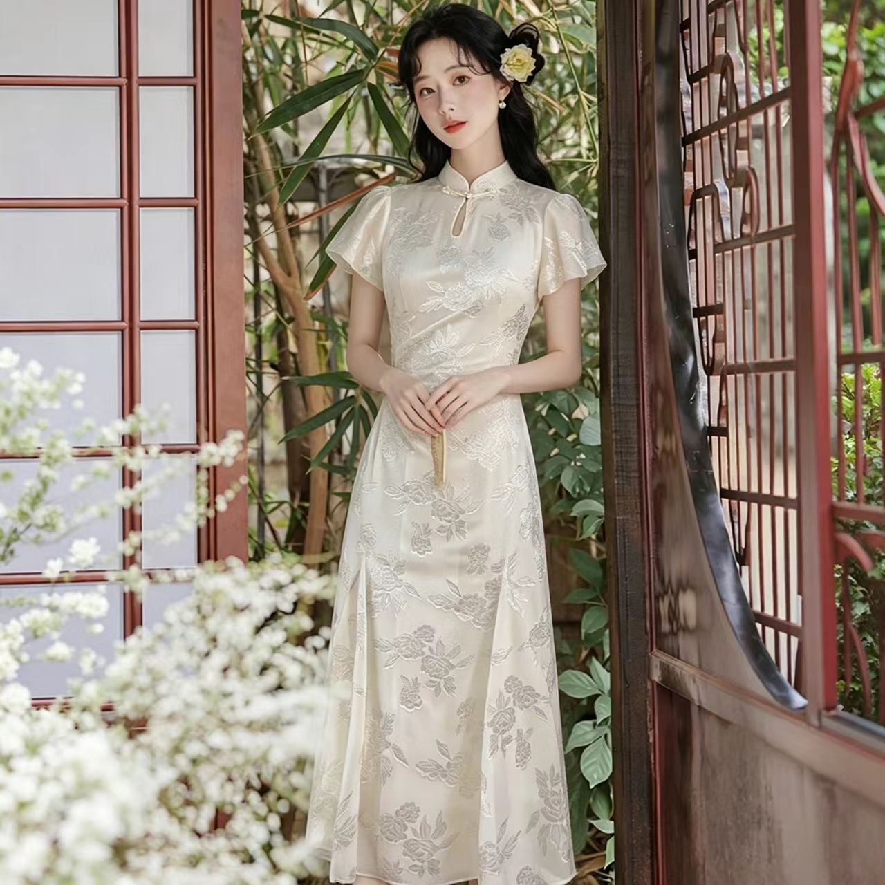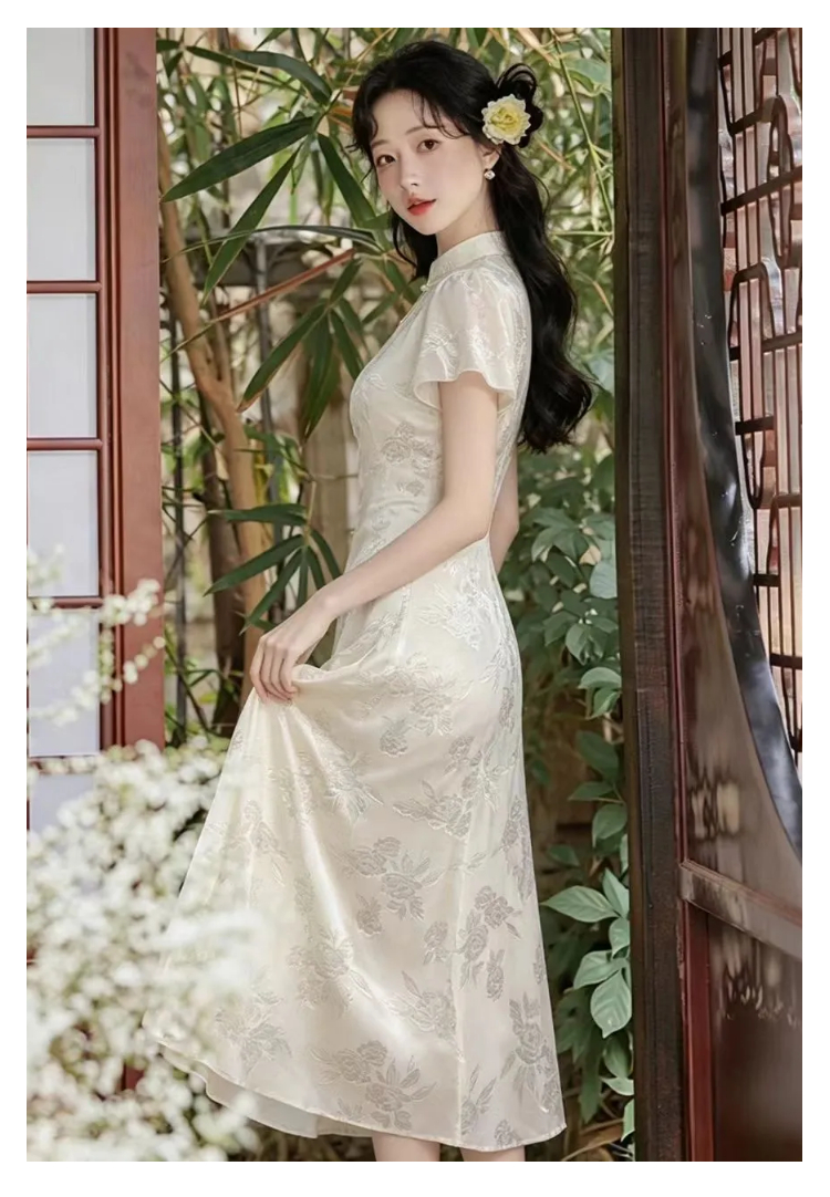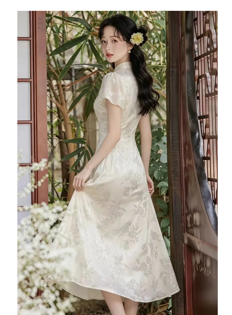 RY3826# 2026年夏季新款绝美新中式盘扣连衣裙复古减龄收腰显瘦国风长裙女