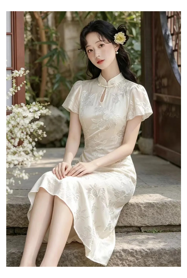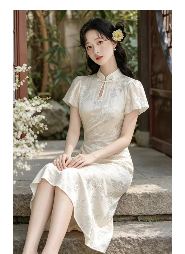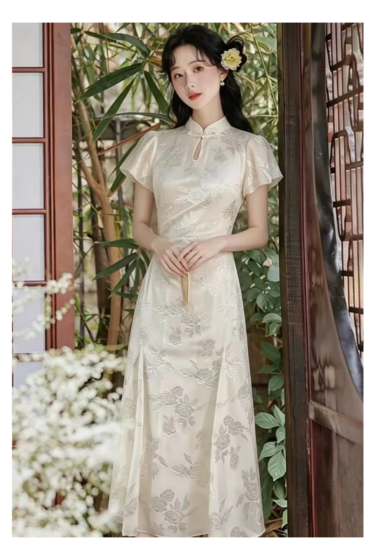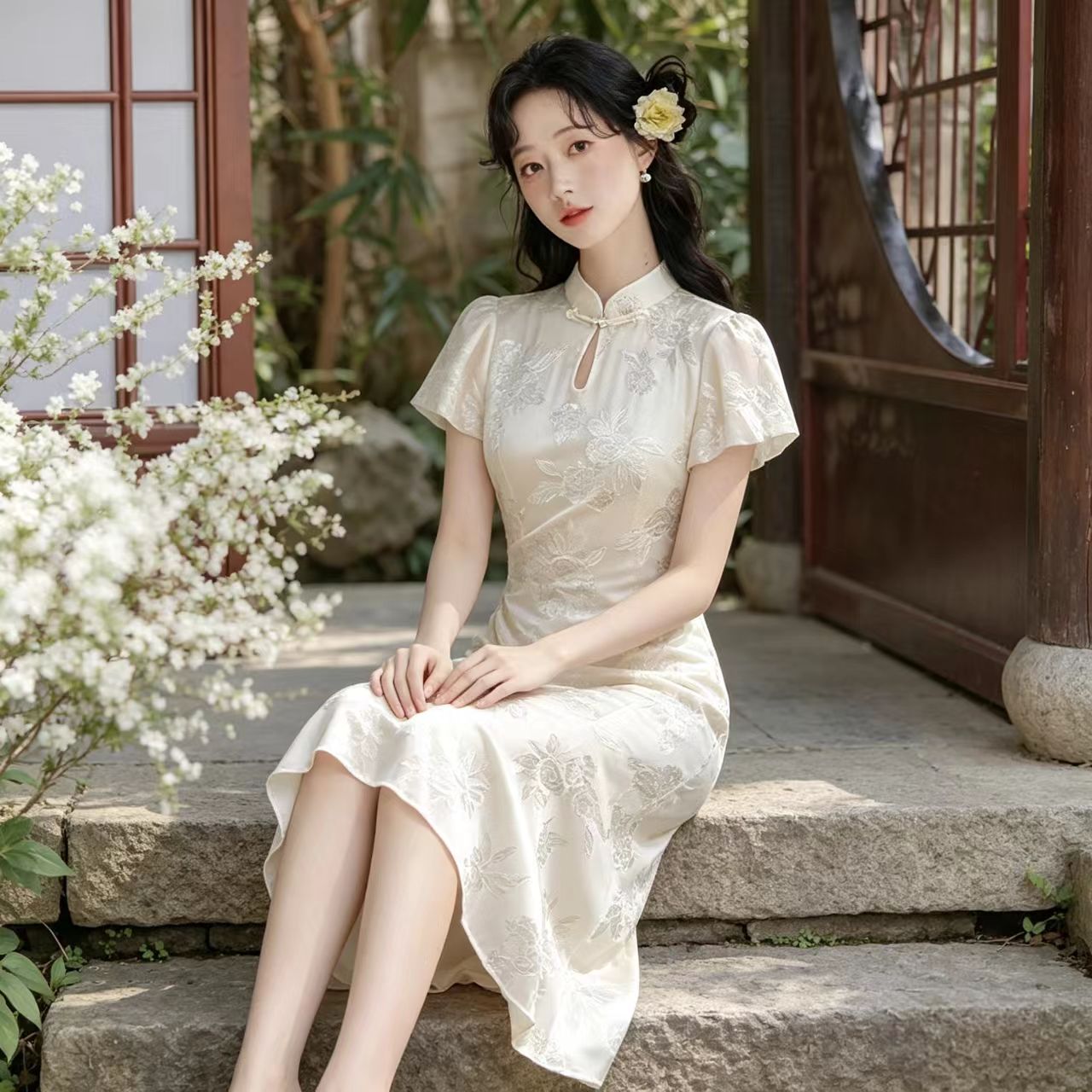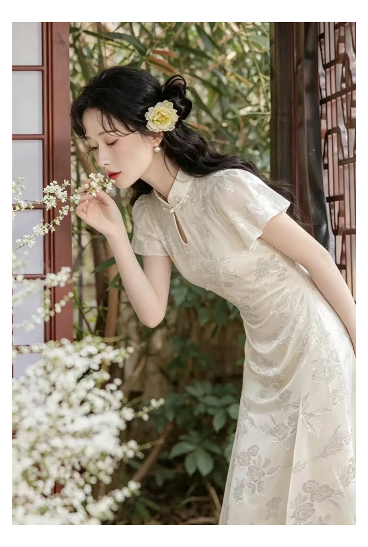 RY3826# 2026年夏季新款绝美新中式盘扣连衣裙复古减龄收腰显瘦国风长裙女