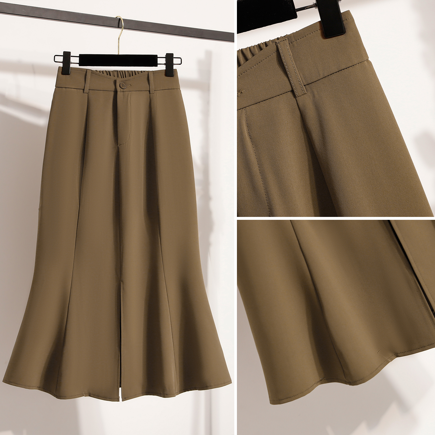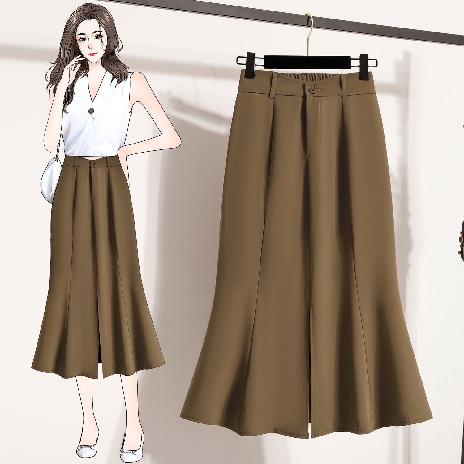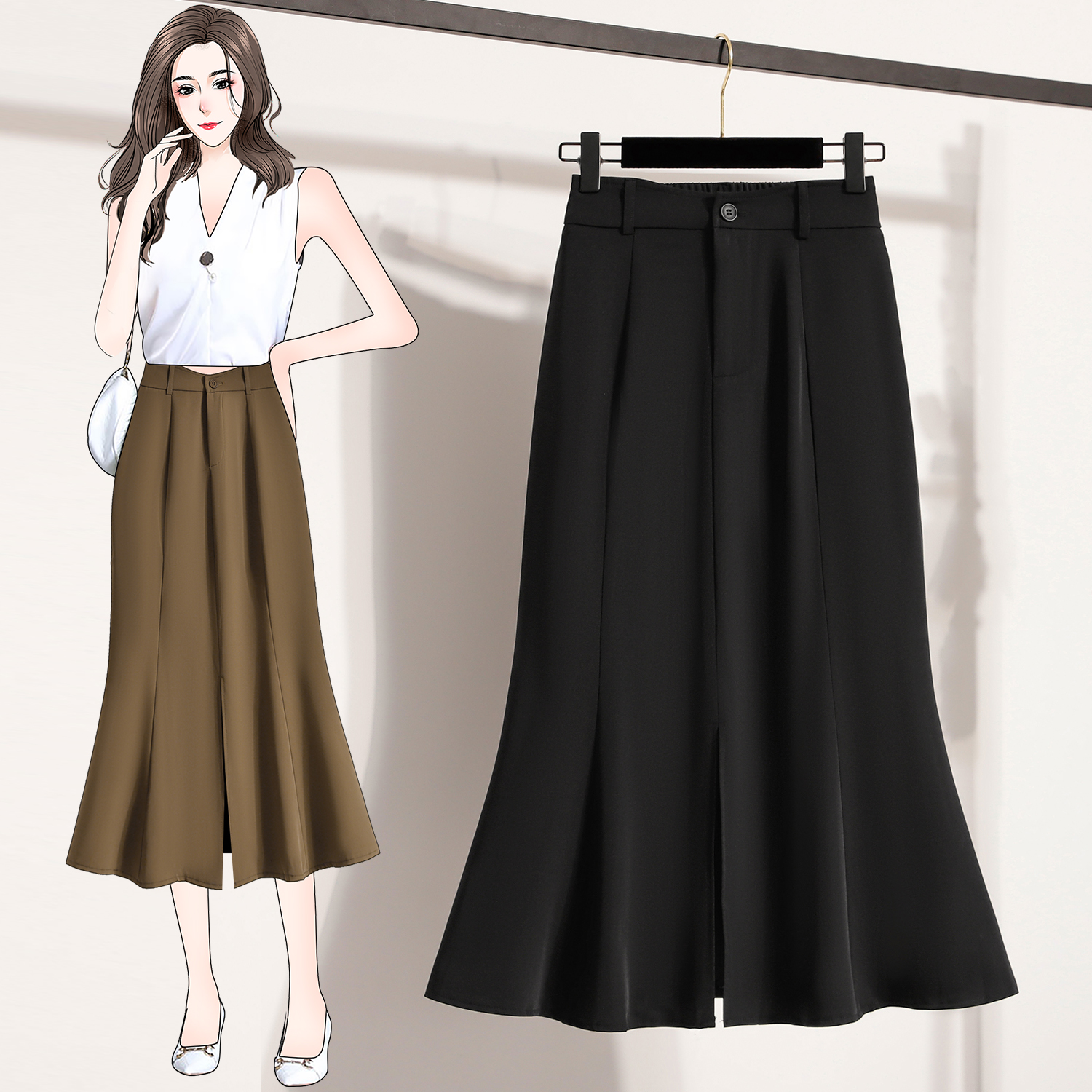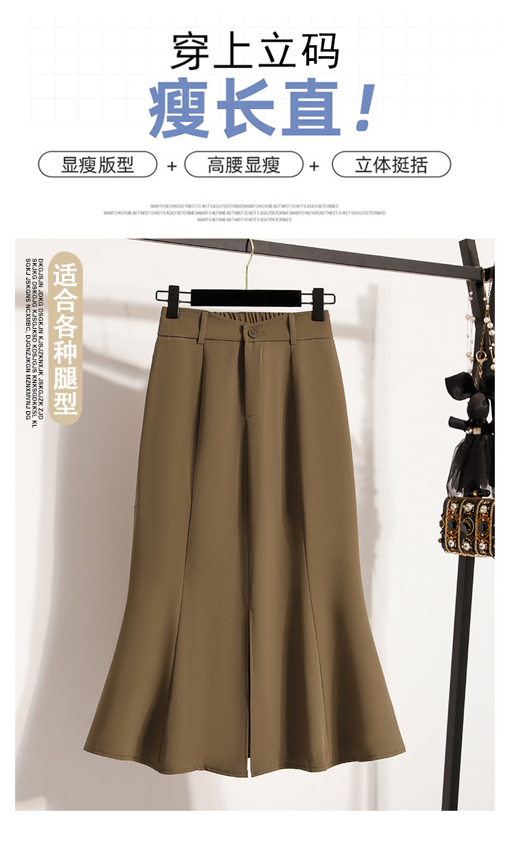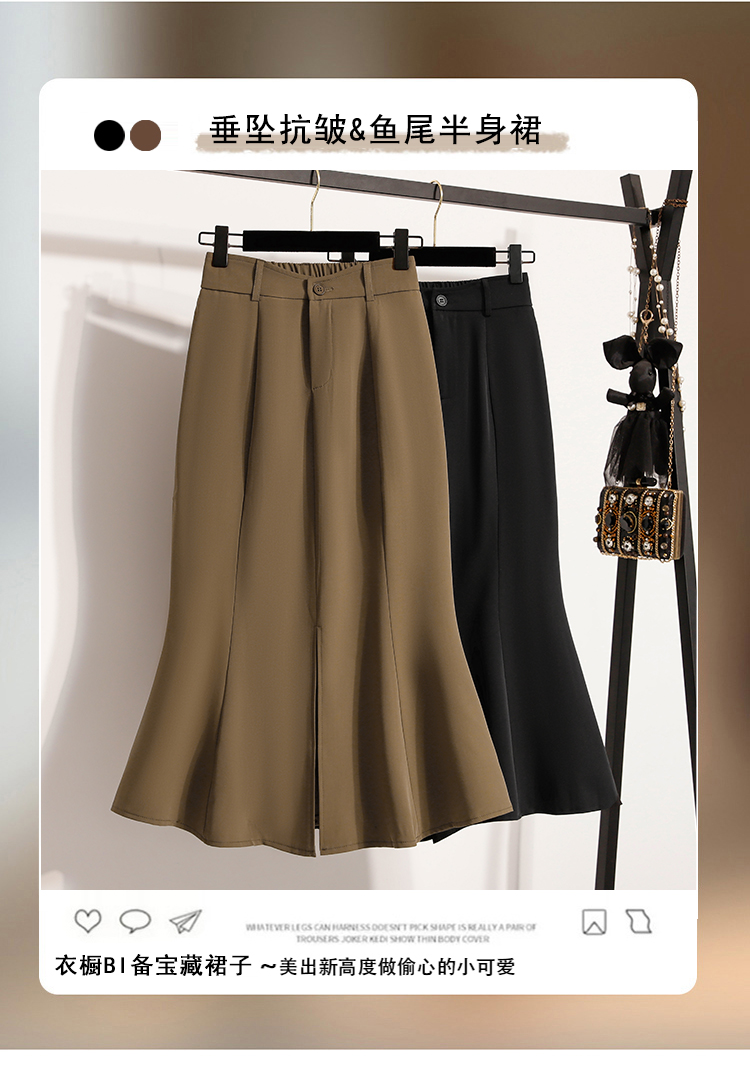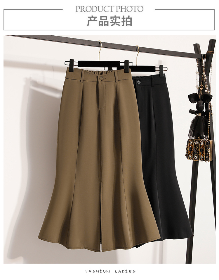 RY4009# 实拍实价开叉鱼尾裙半身裙女A字裙中长款高腰包臀裙裙子长裙