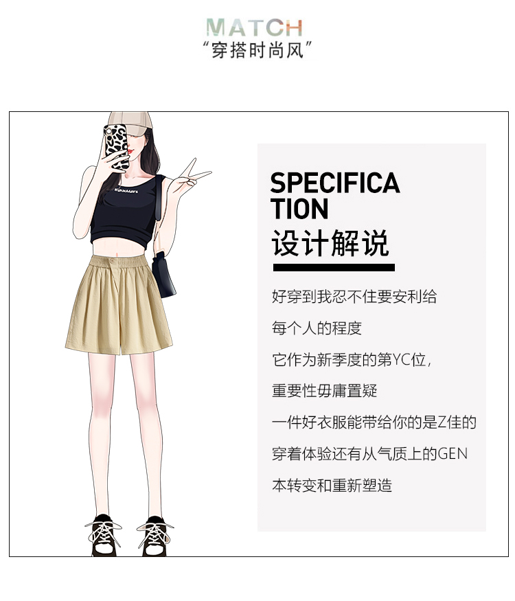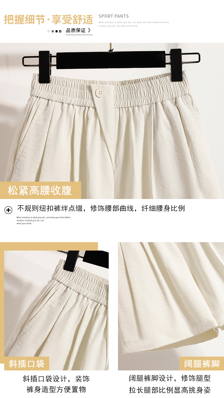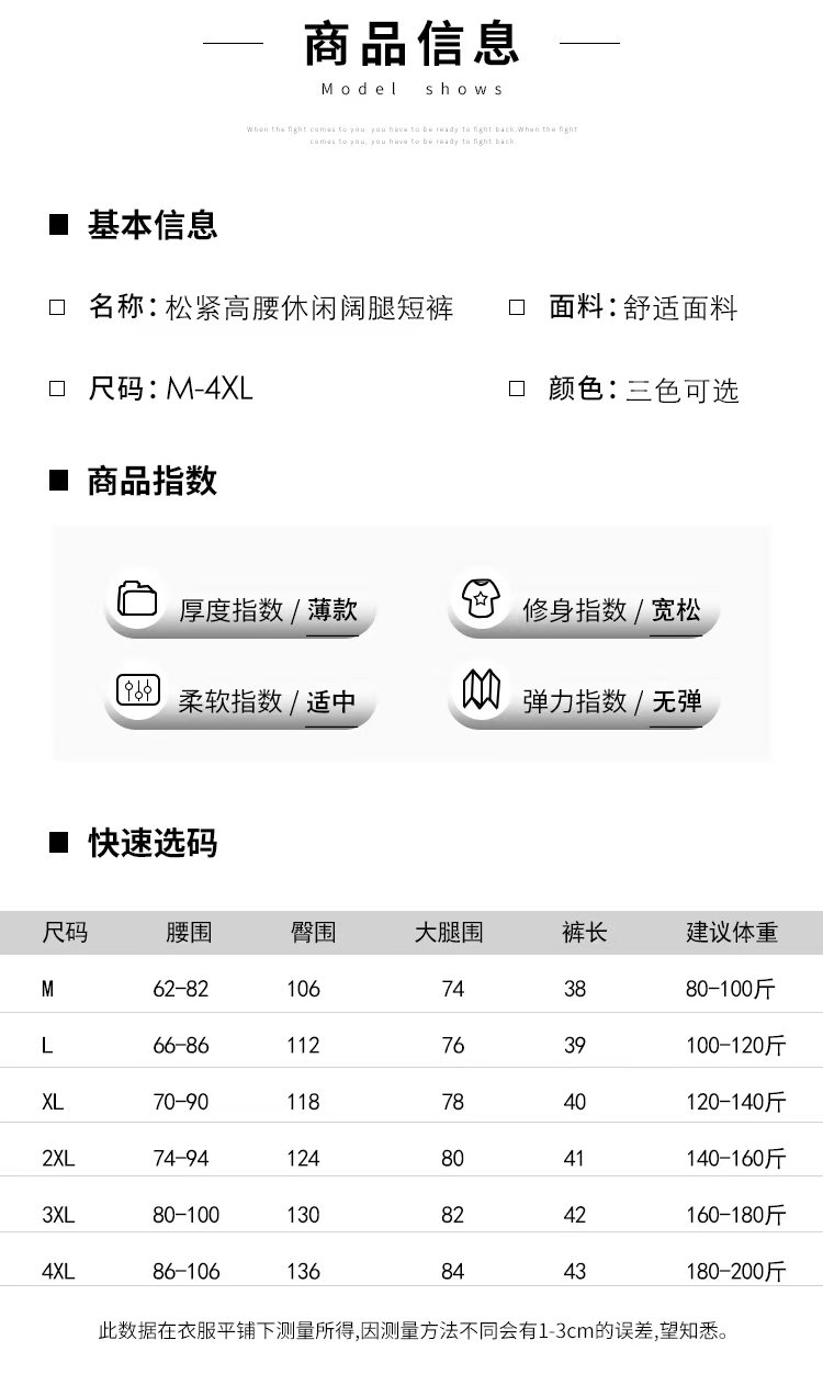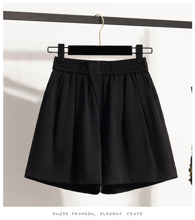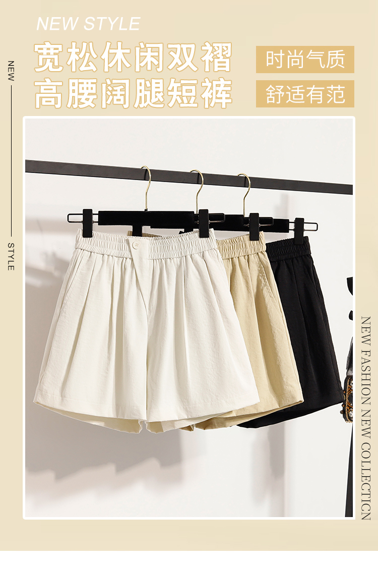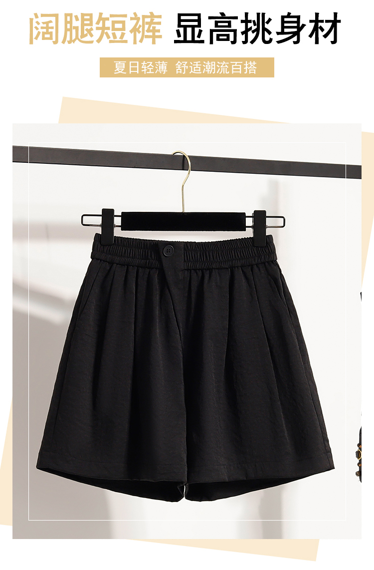 RY4028# 大码夏季松紧高腰百搭遮肉显瘦减龄休闲五分阔腿短裤女