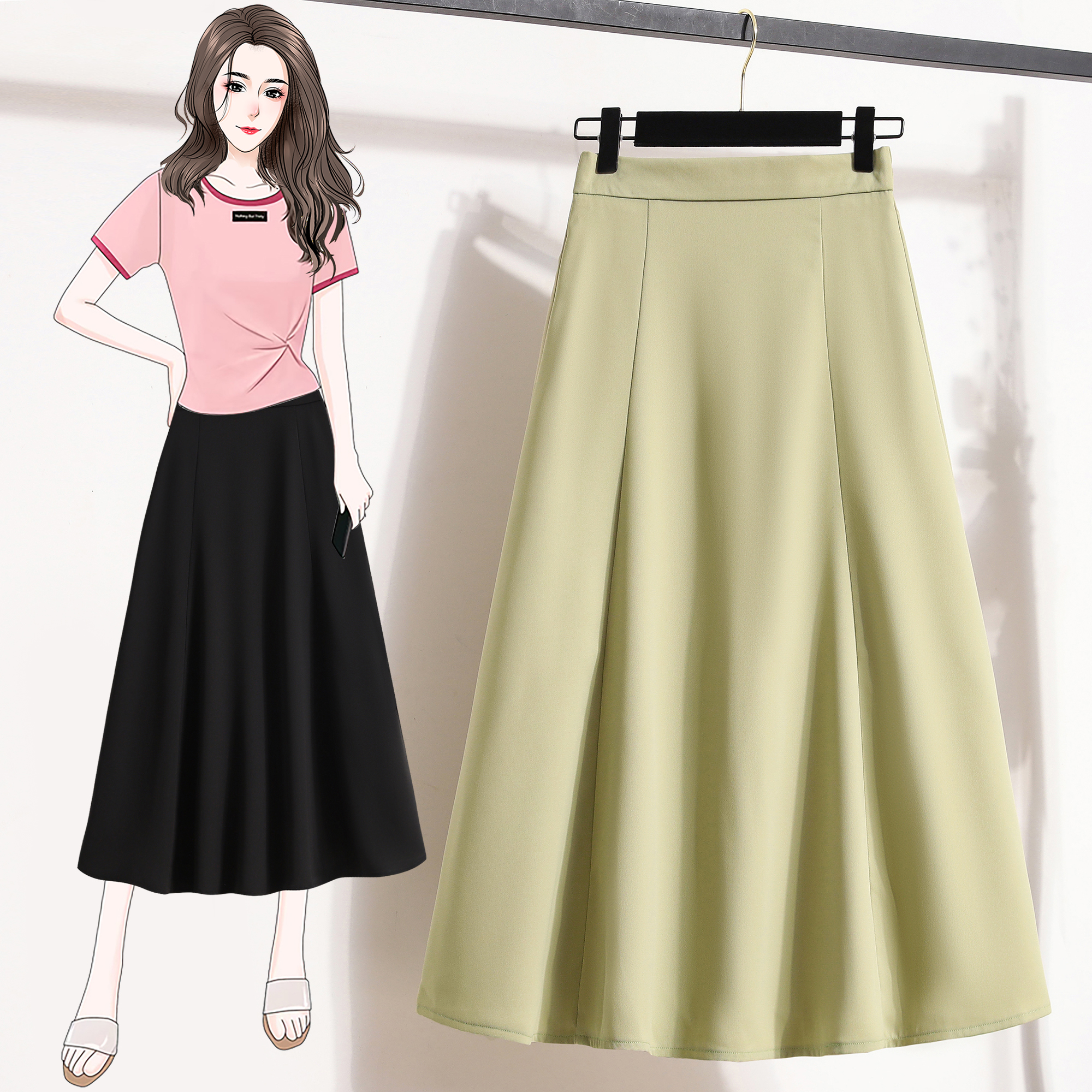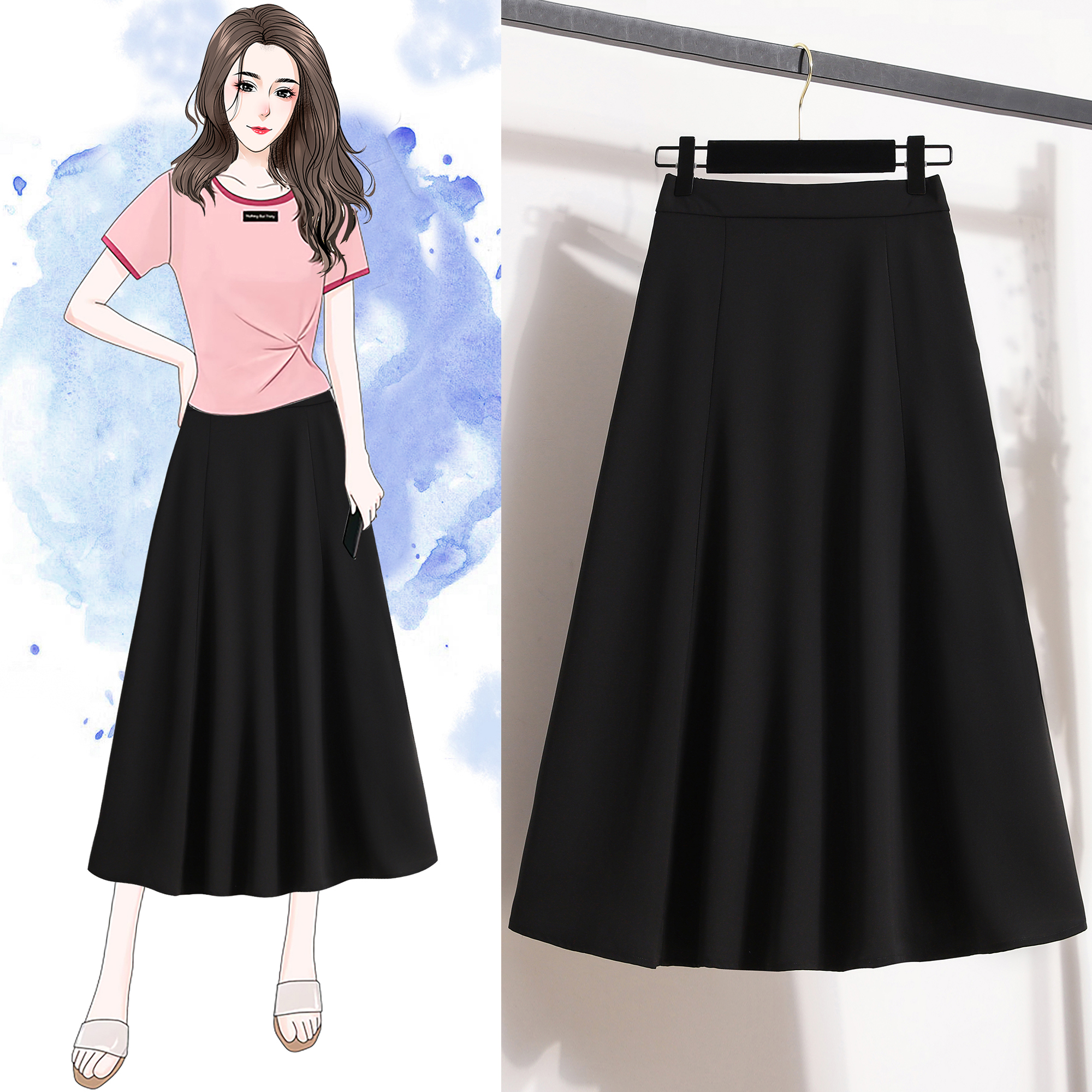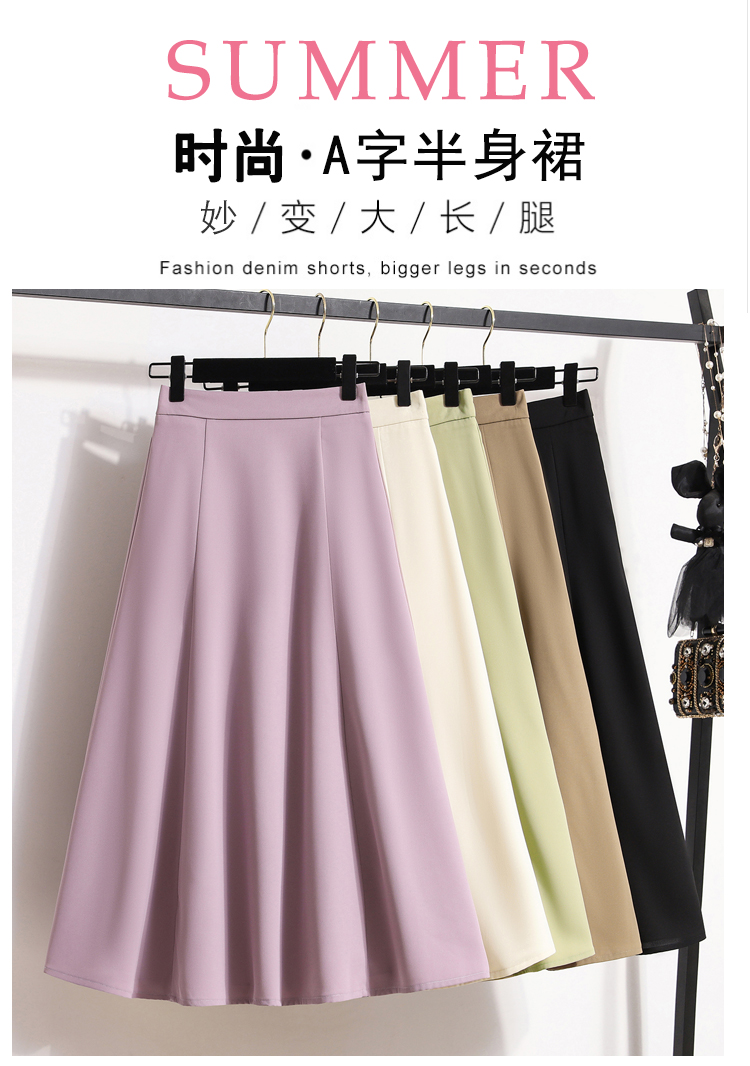 RY4033# 女夏高腰裙子中长款垂感西装半身长裙伞裙a字裙