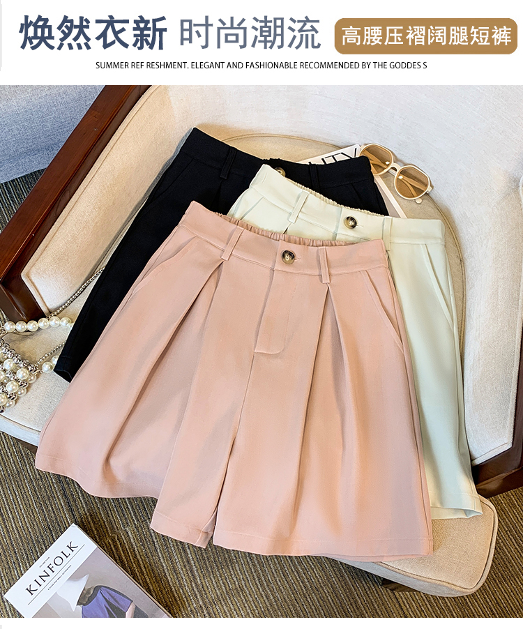 RY4037# 高腰a字西装短裤女夏季外穿宽松显瘦阔腿裤五分裤