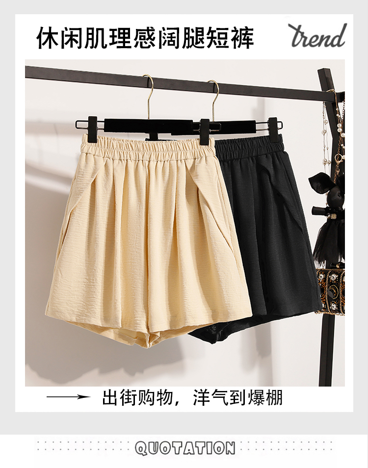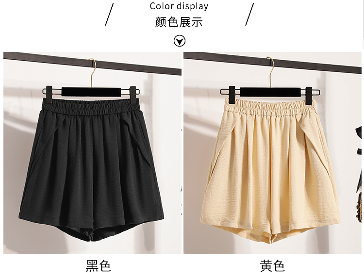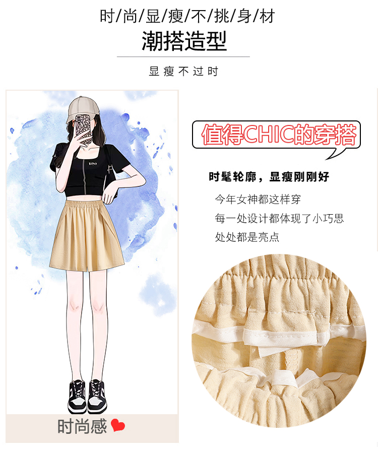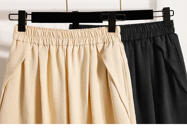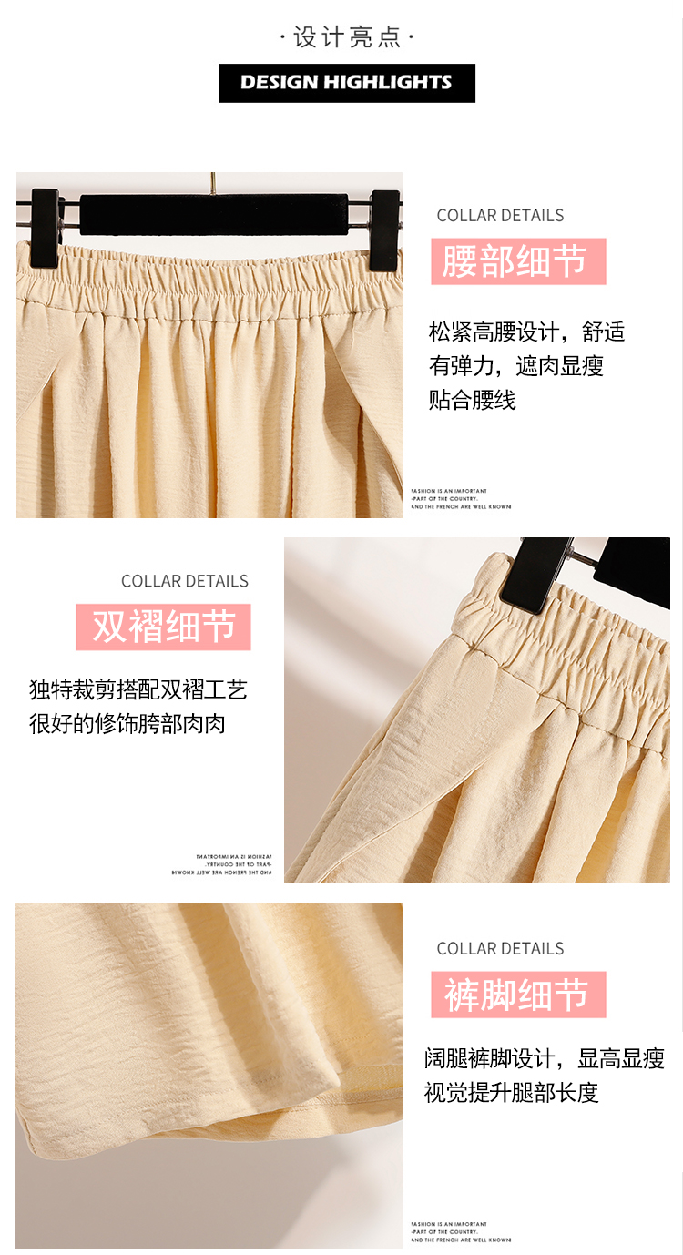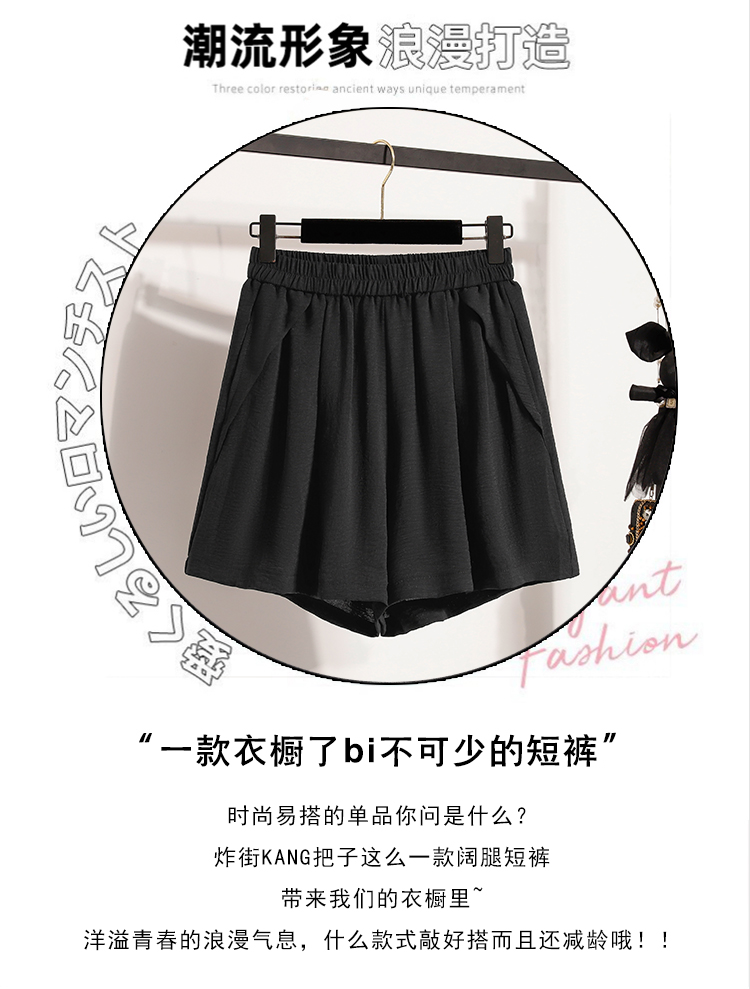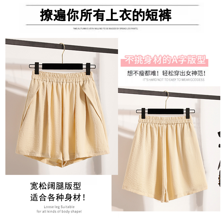RY4038# 女夏季休闲宽松肌理感高腰显瘦冰丝透气a字阔腿短裤