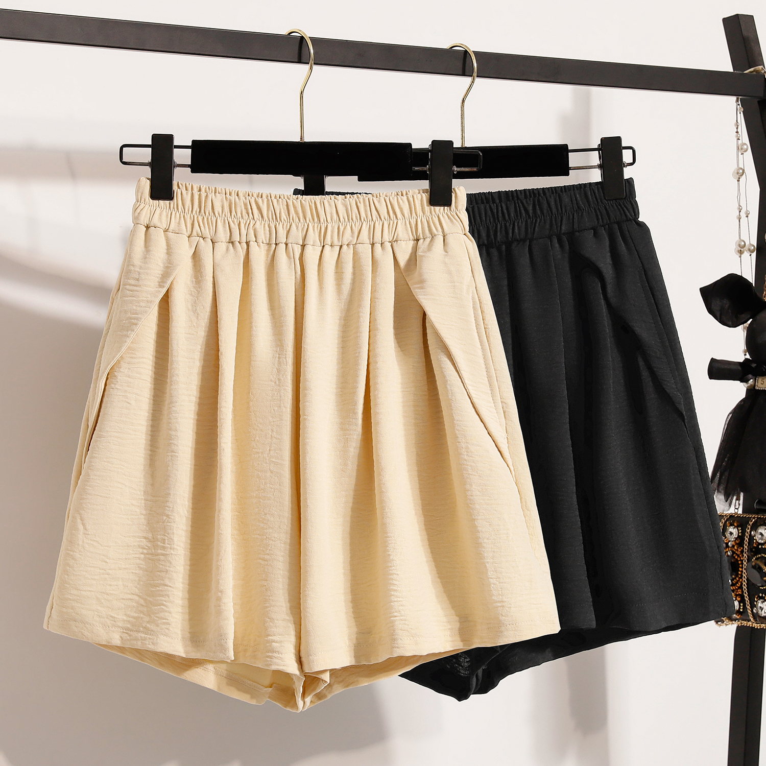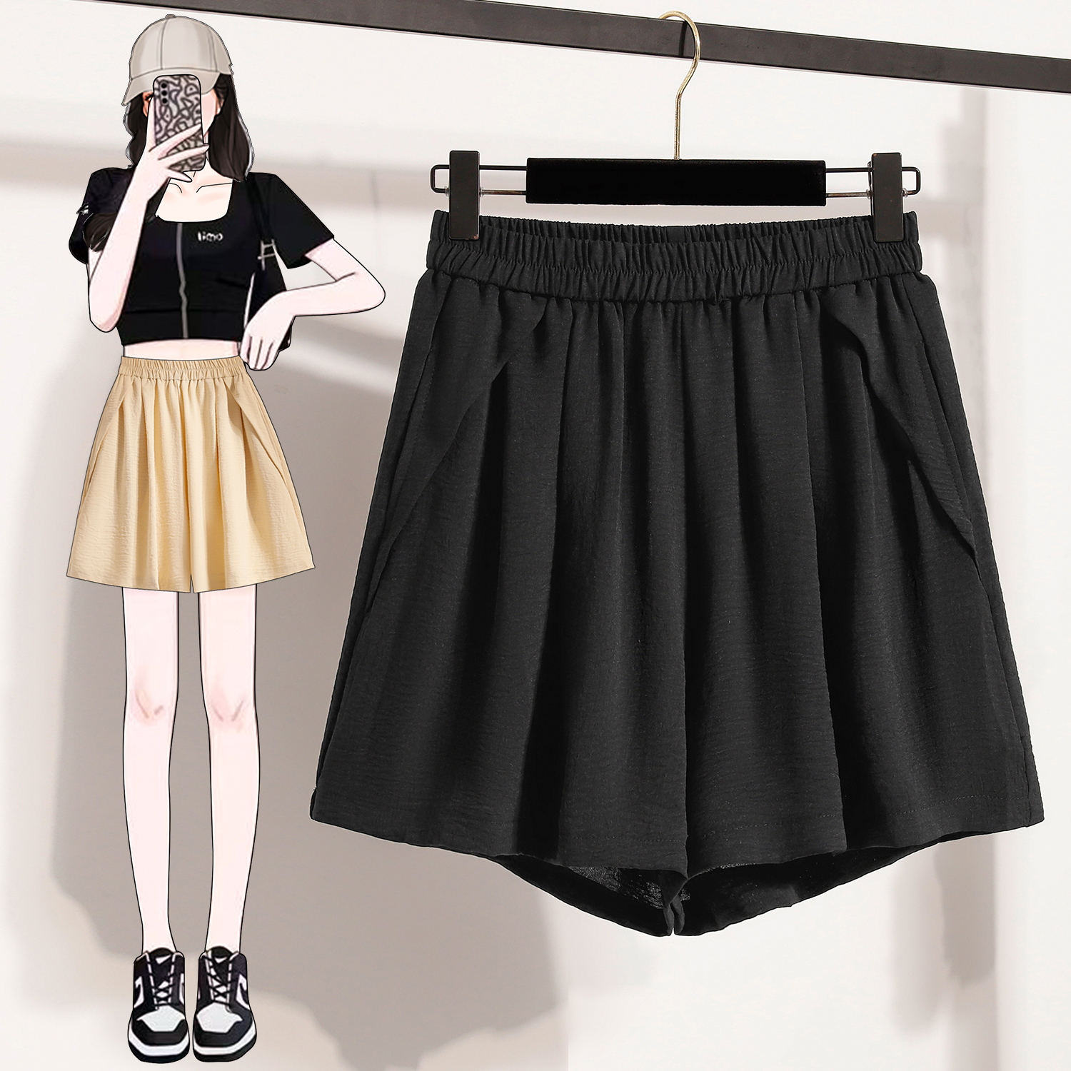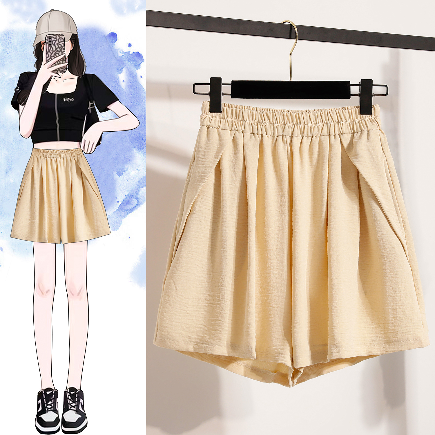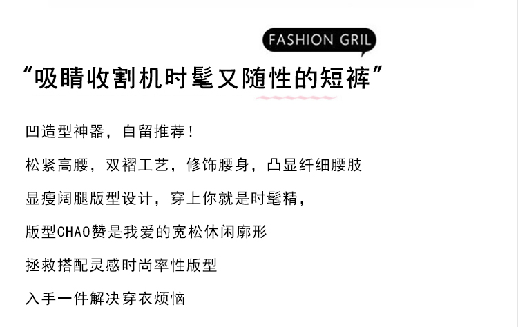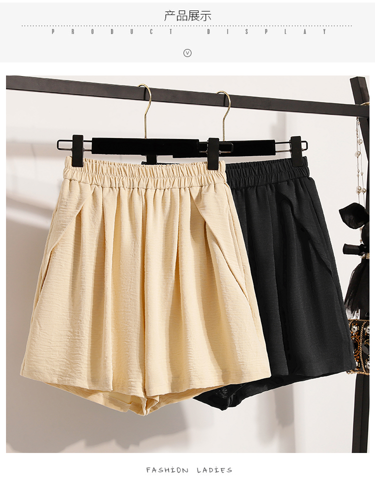 RY4038# 女夏季休闲宽松肌理感高腰显瘦冰丝透气a字阔腿短裤