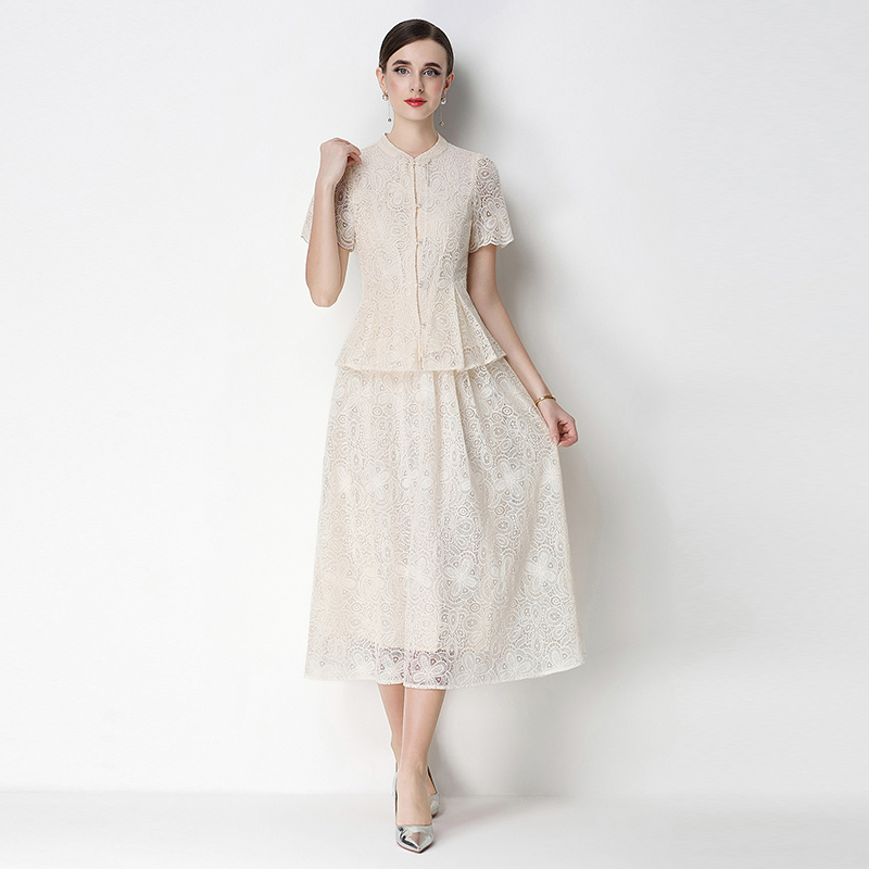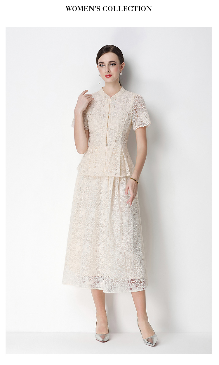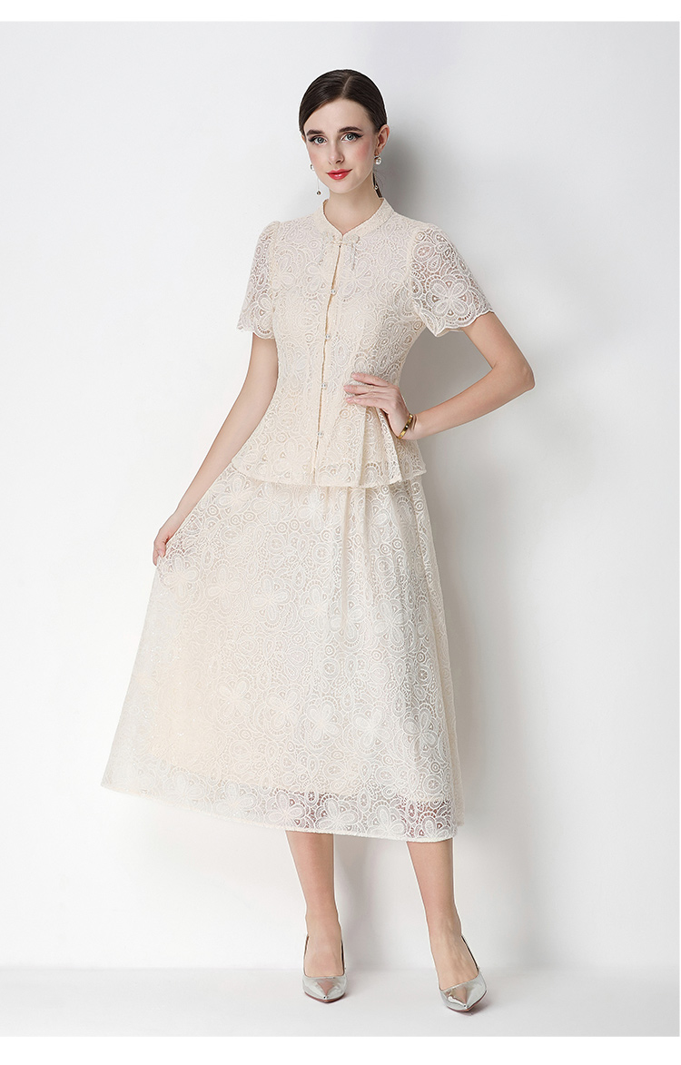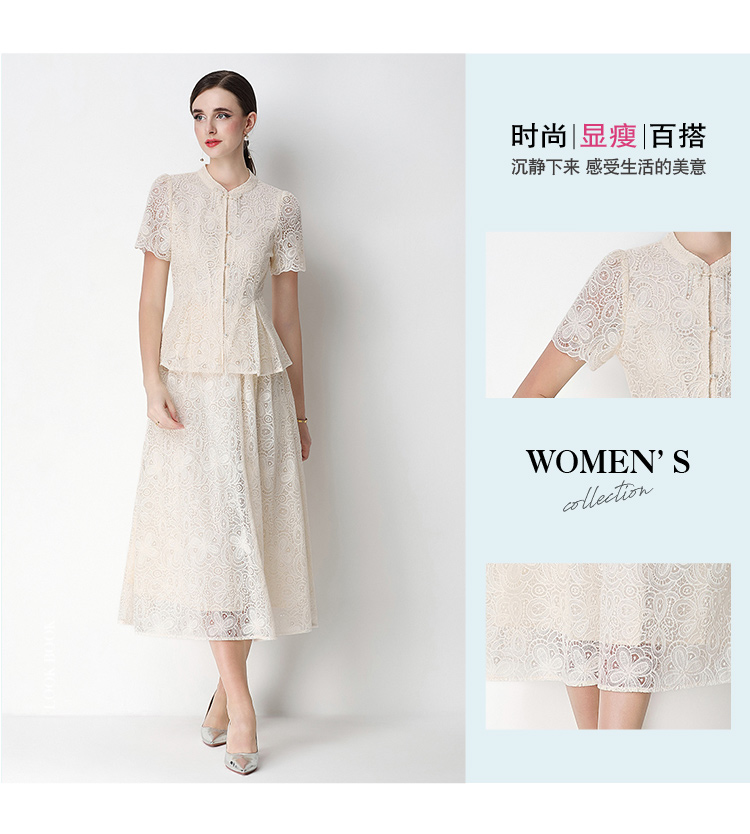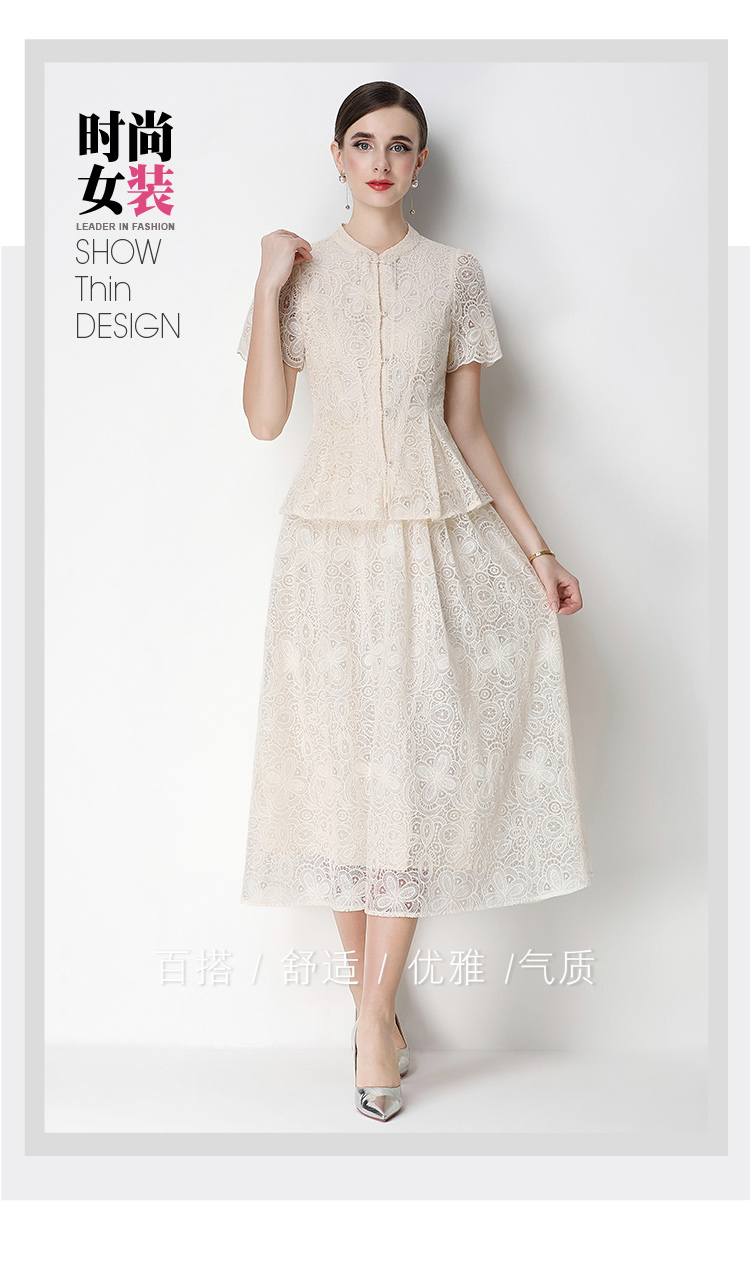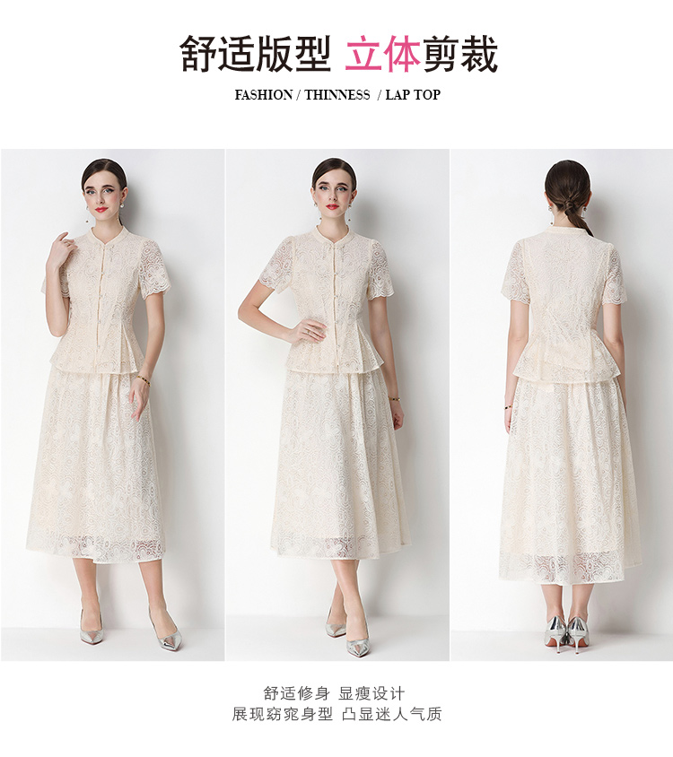 RY4041# 2026新中式刺绣蕾丝套装裙