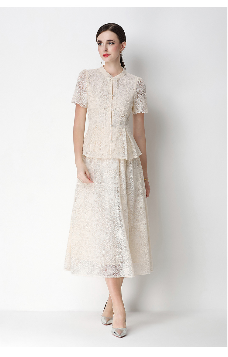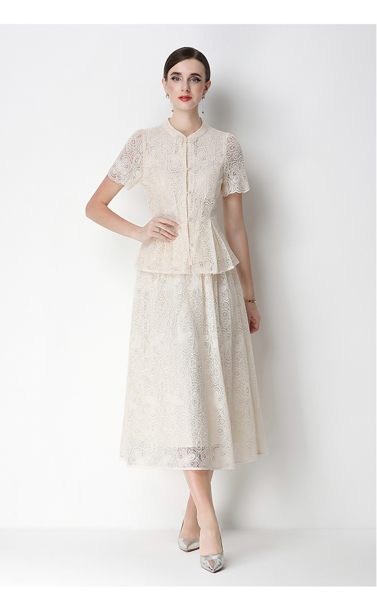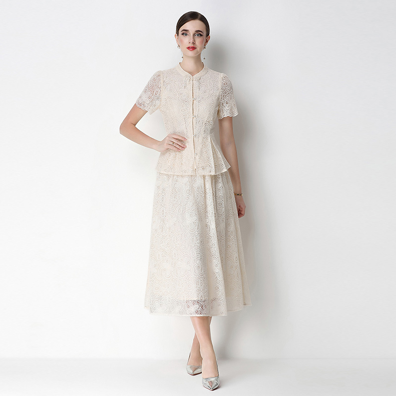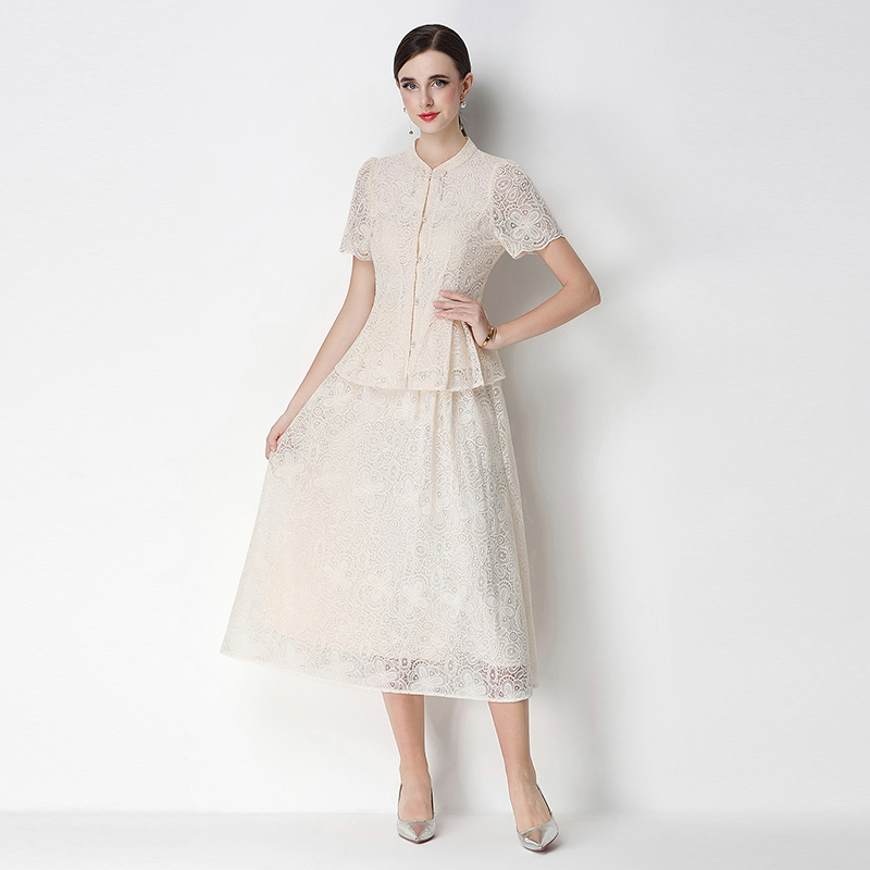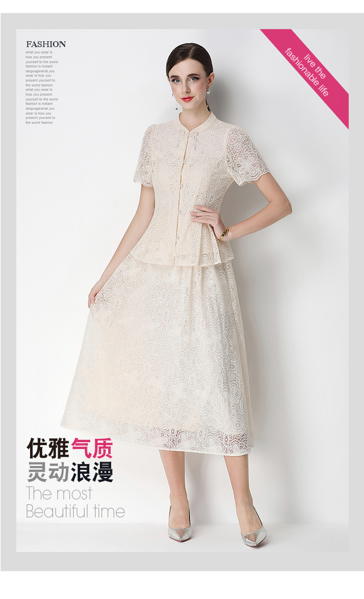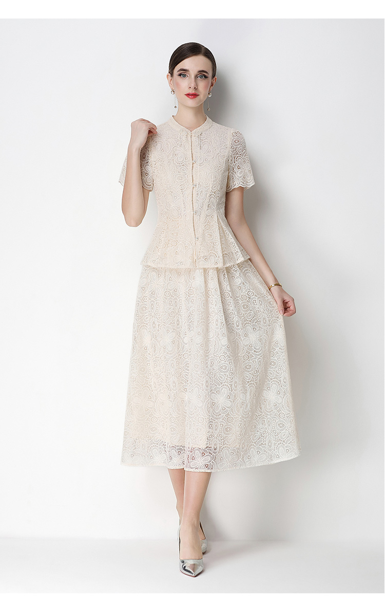RY4041# 2026新中式刺绣蕾丝套装裙