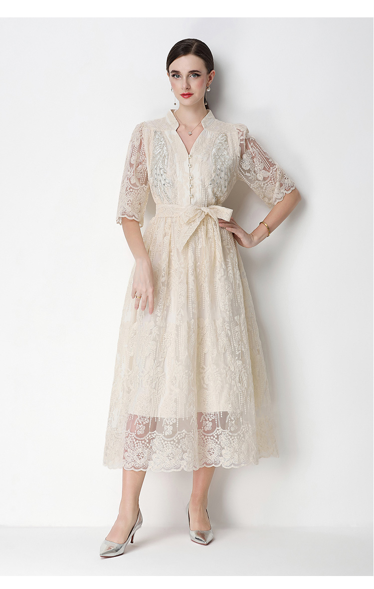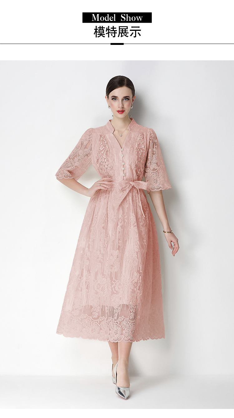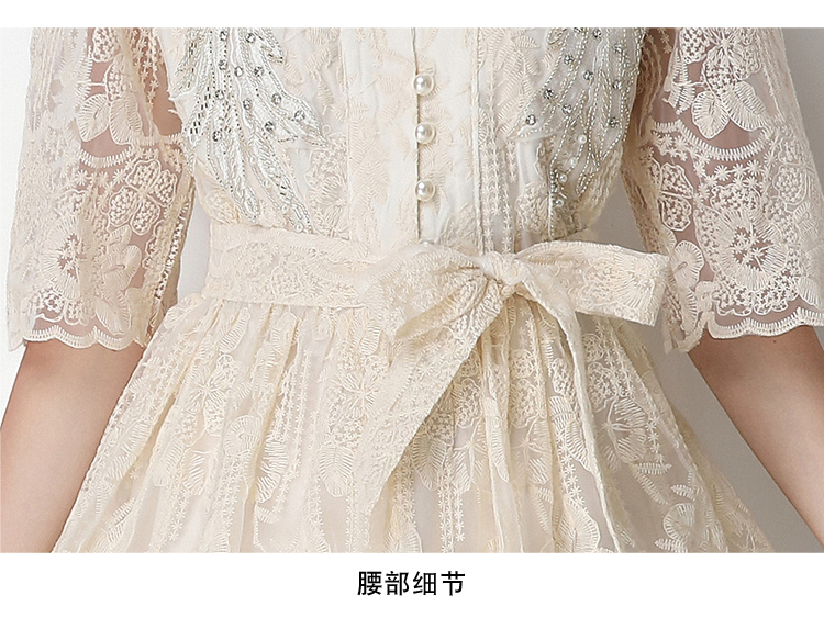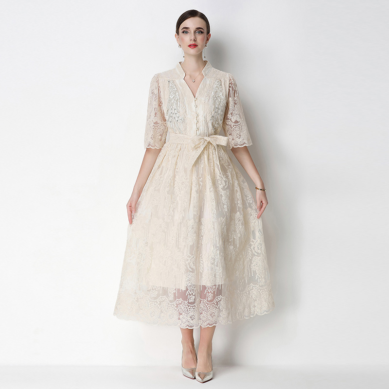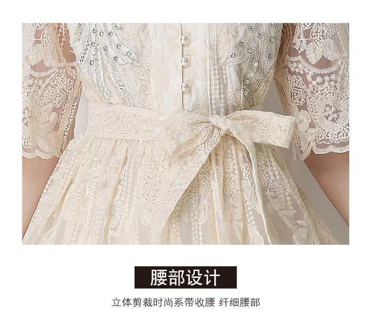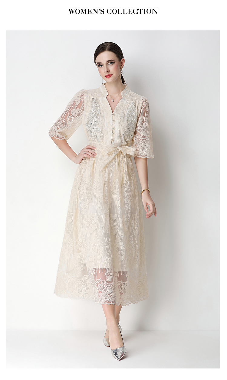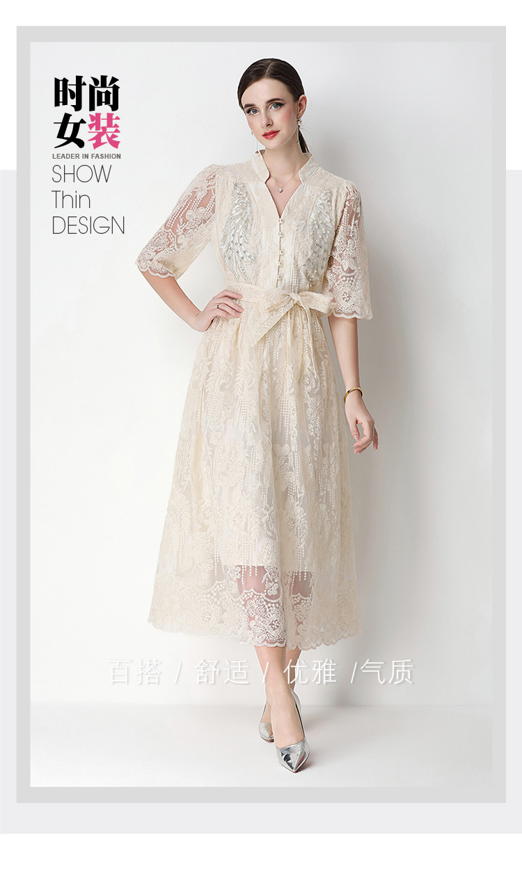 RY4042# 2026重工蕾丝手工绣花连衣裙收腰气质裙