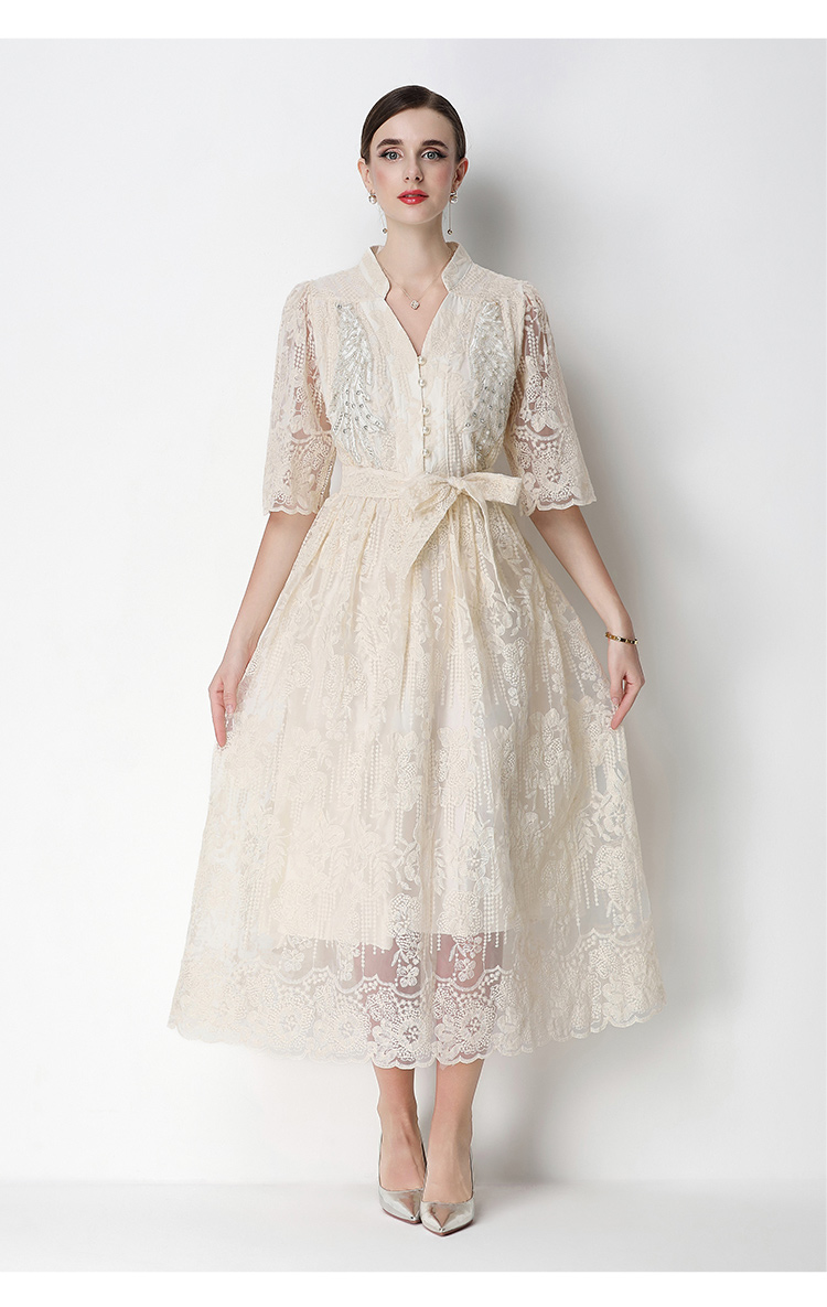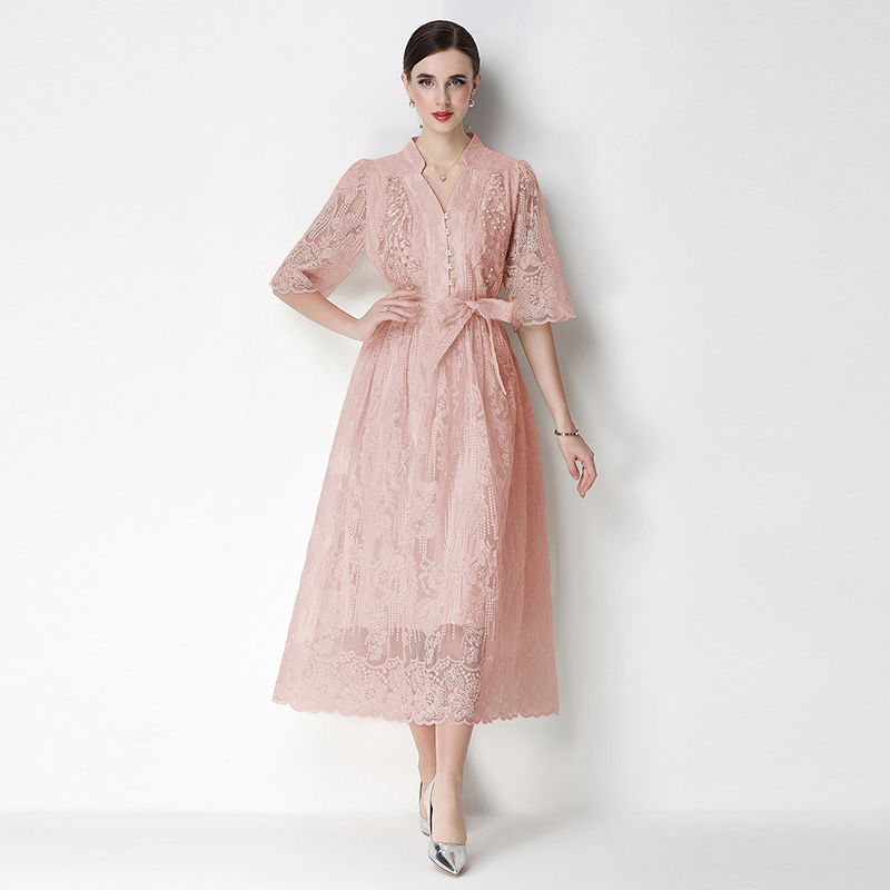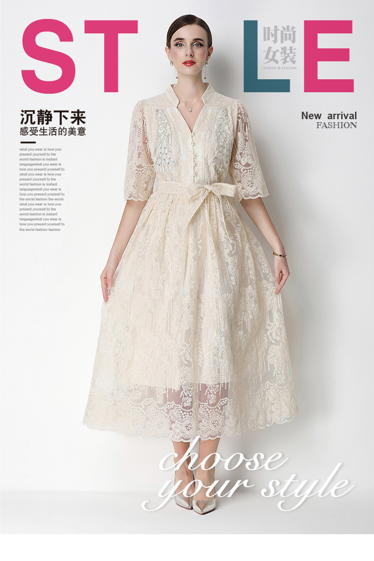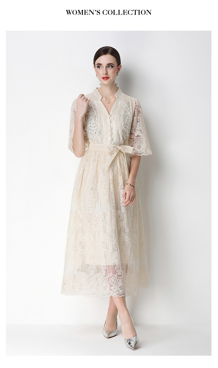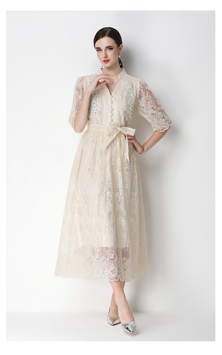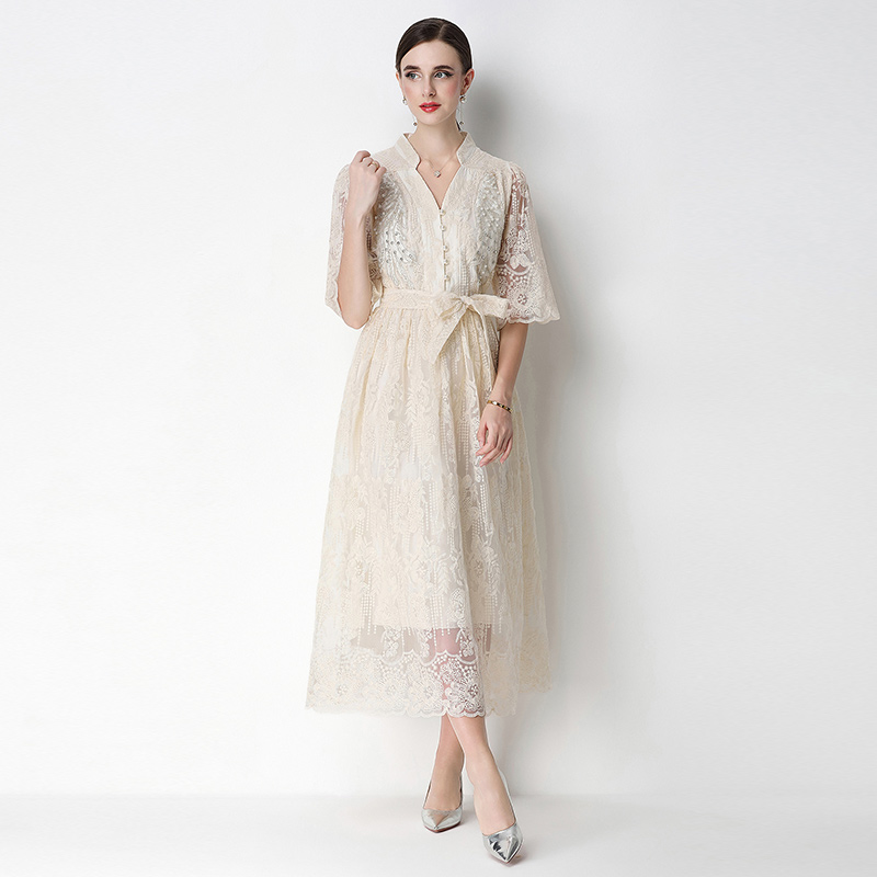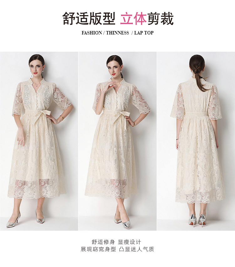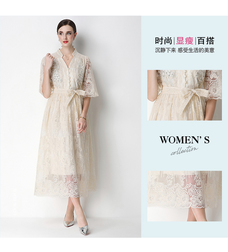RY4042# 2026重工蕾丝手工绣花连衣裙收腰气质裙
